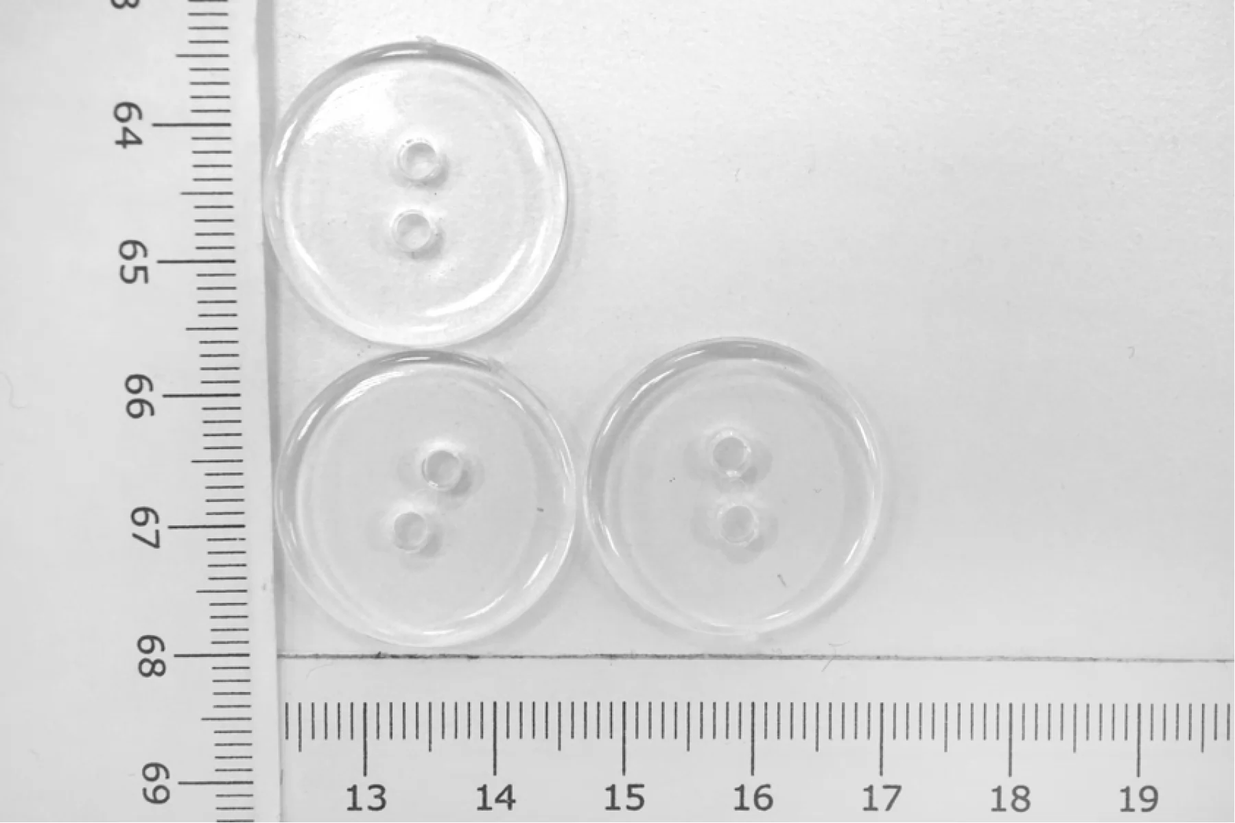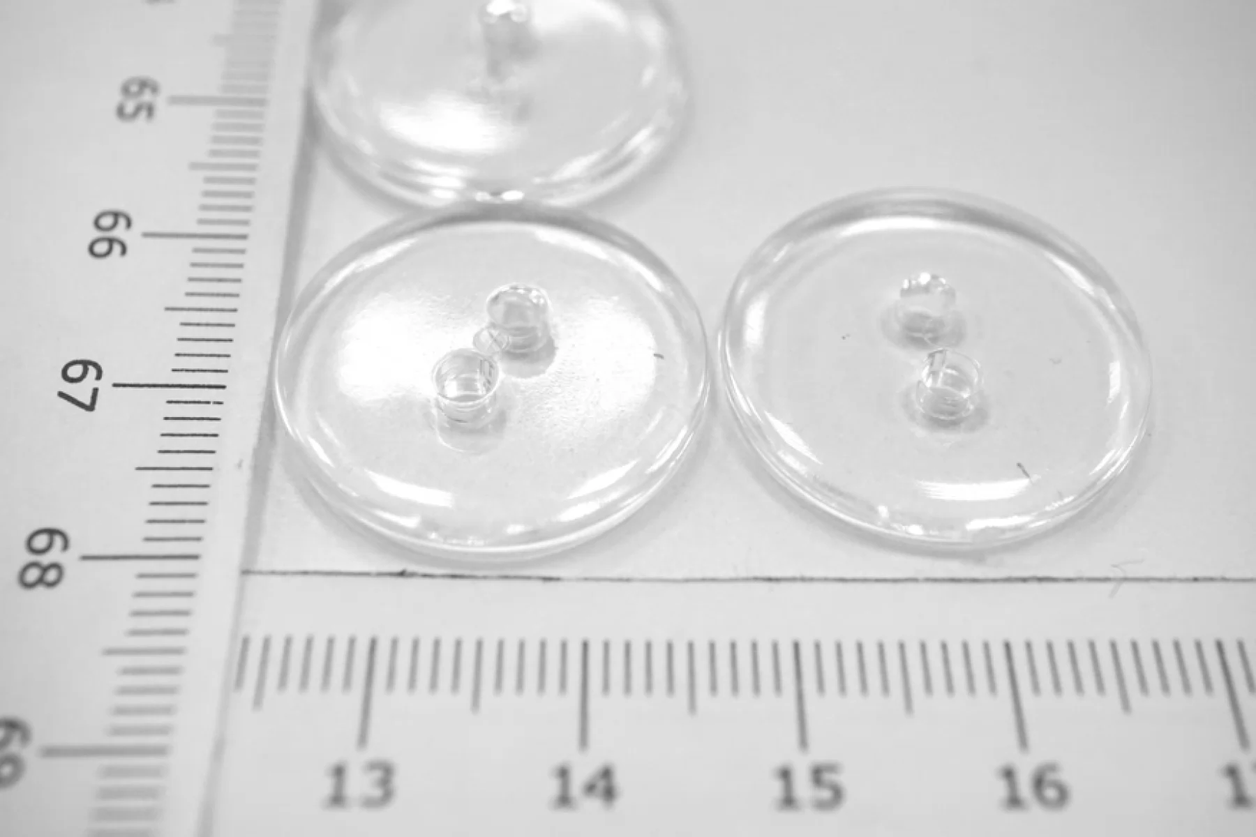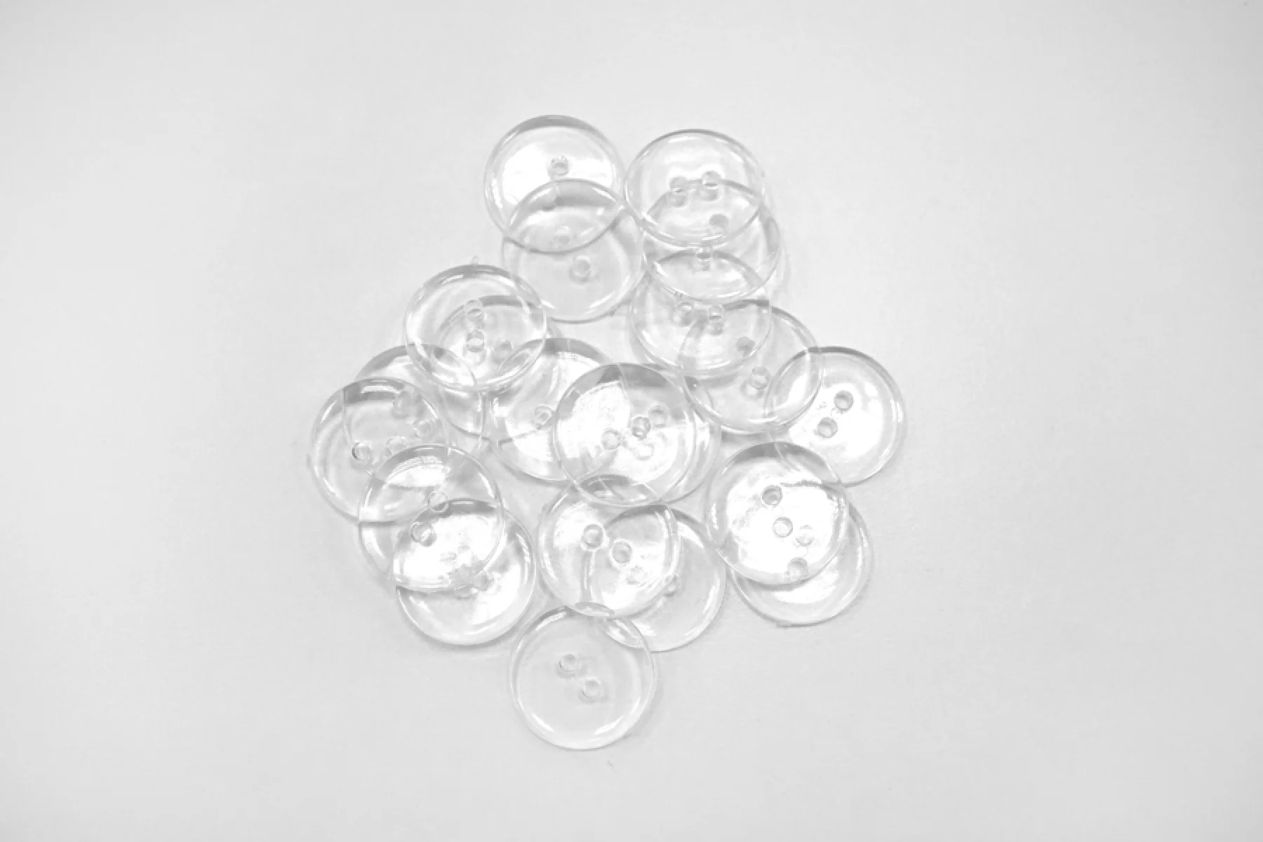 Пуговица костюмно-пальтовая из пластмассы, размер 23 мм, прозрачная.