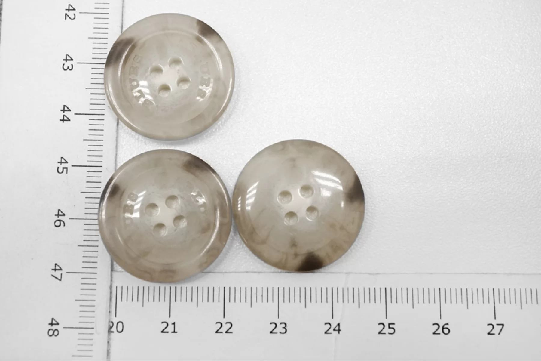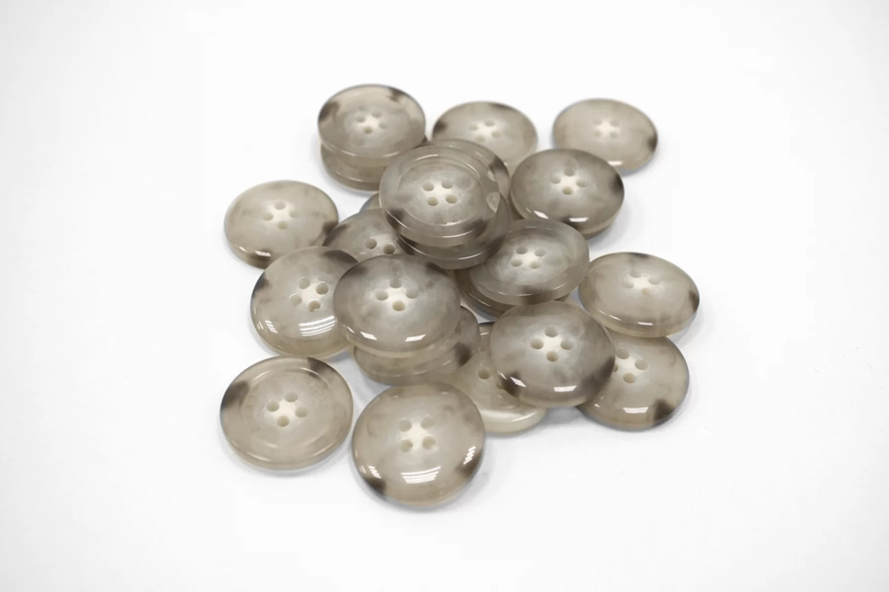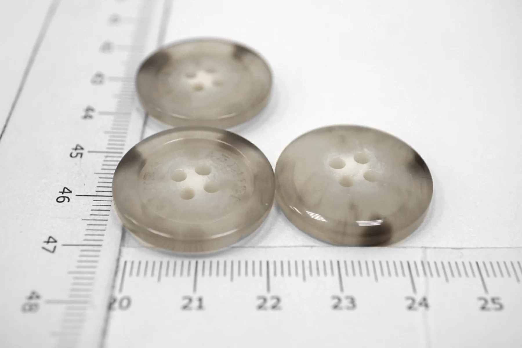 Пуговица костюмно-пальтовая из пластмассы, размер 26 мм, под рог, полупрозрачная серого цвета.