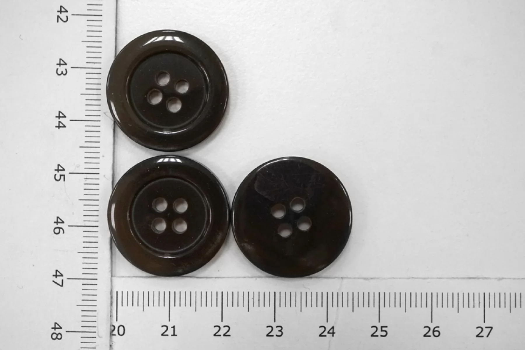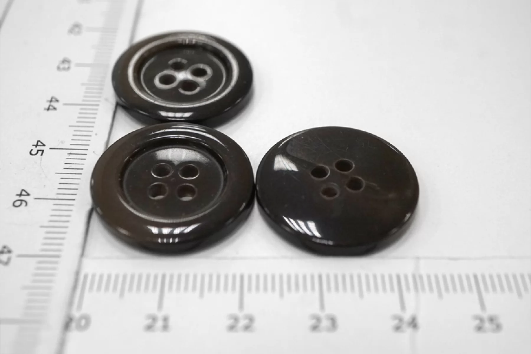 Пуговица костюмно-пальтовая из пластмассы, размер 23 мм, тёмно-серого цвета.