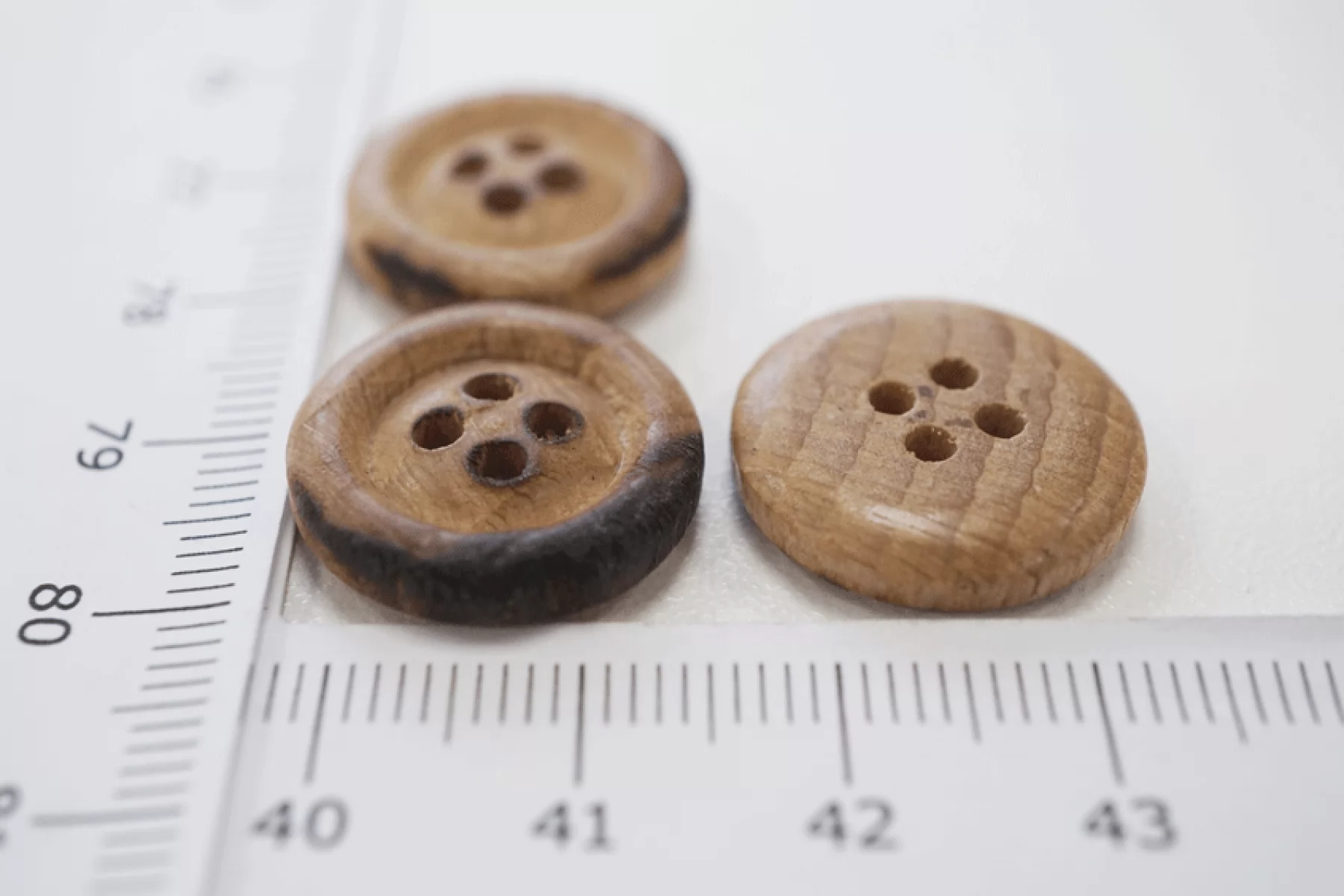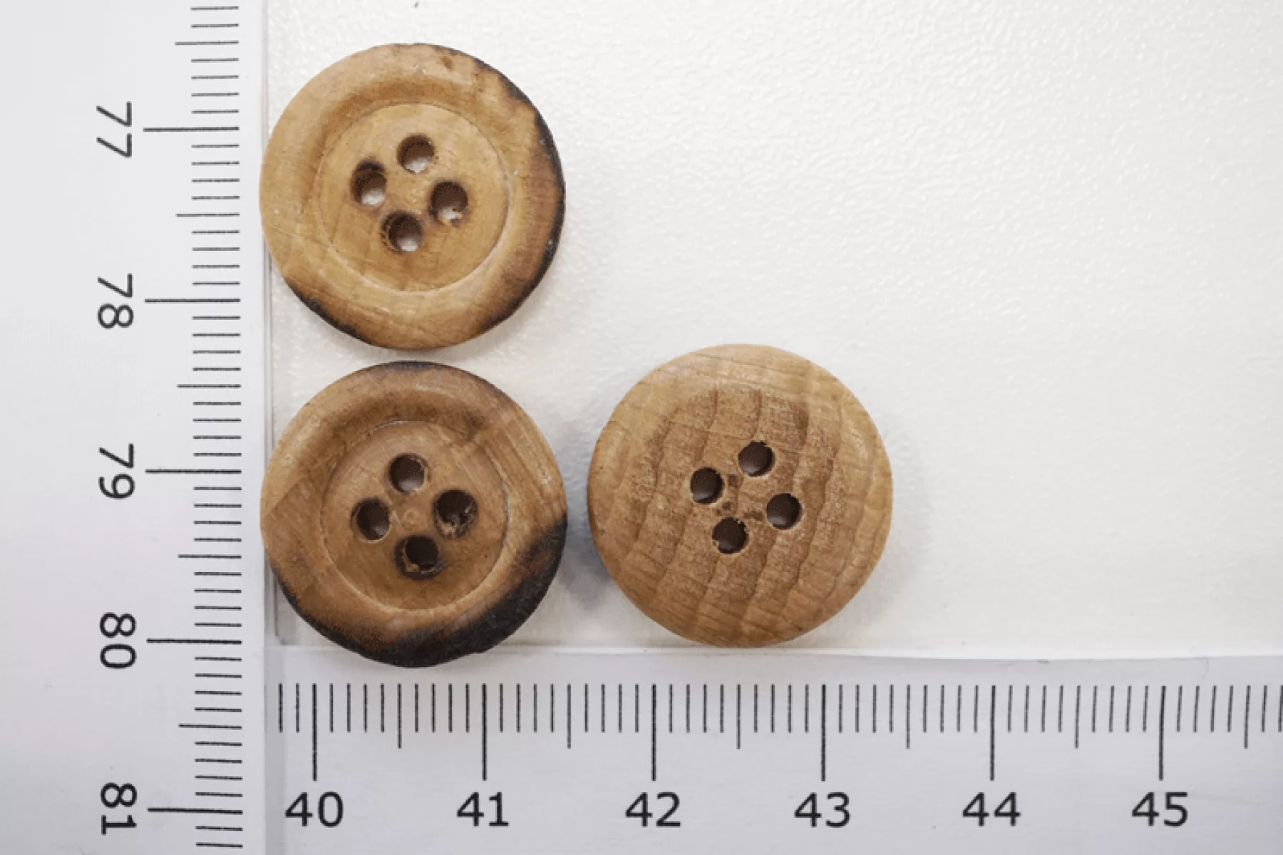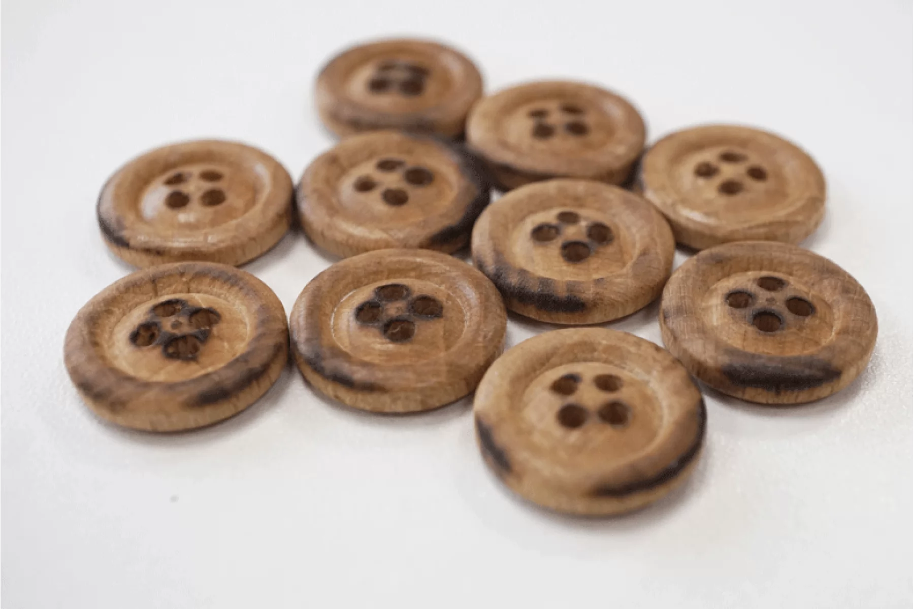 Пуговица костюмно-плательная из дерева, размер 17 мм, бежево-коричневого цвета, с опаленным эффектом.