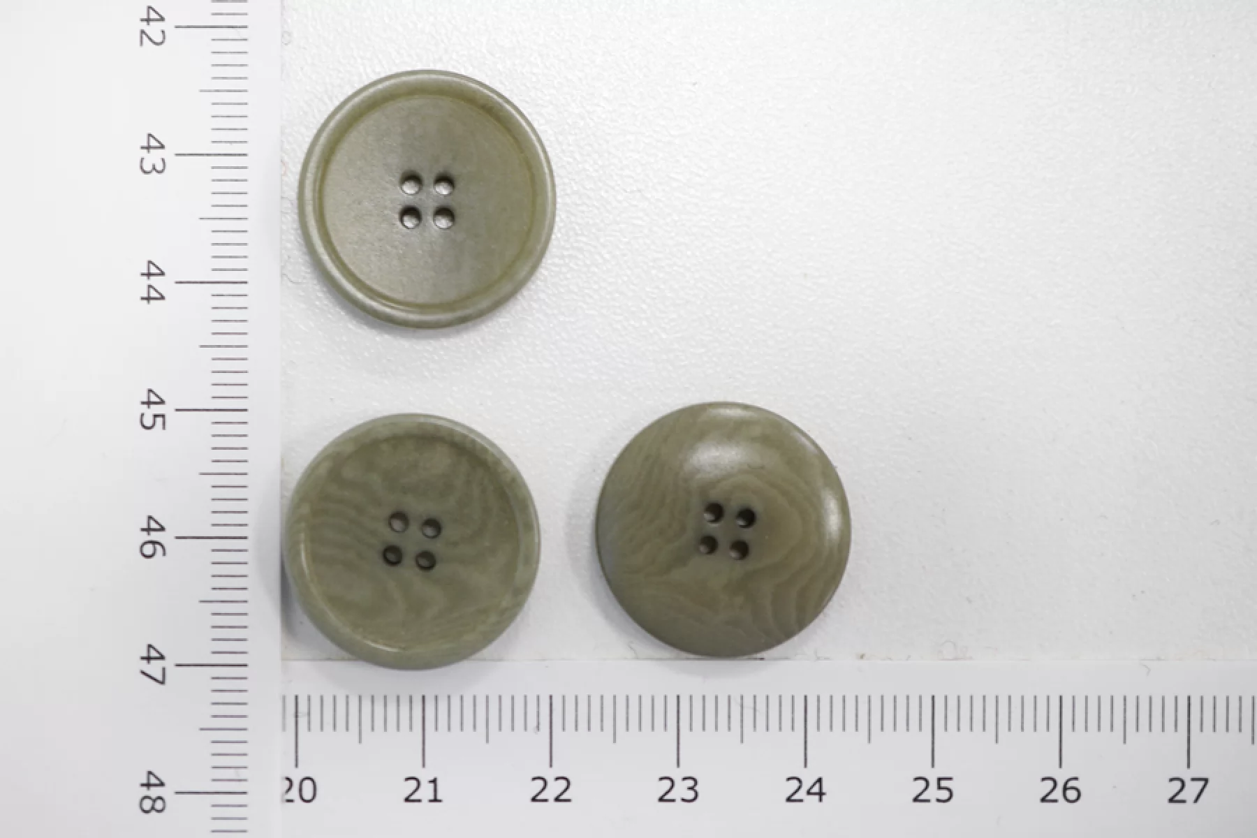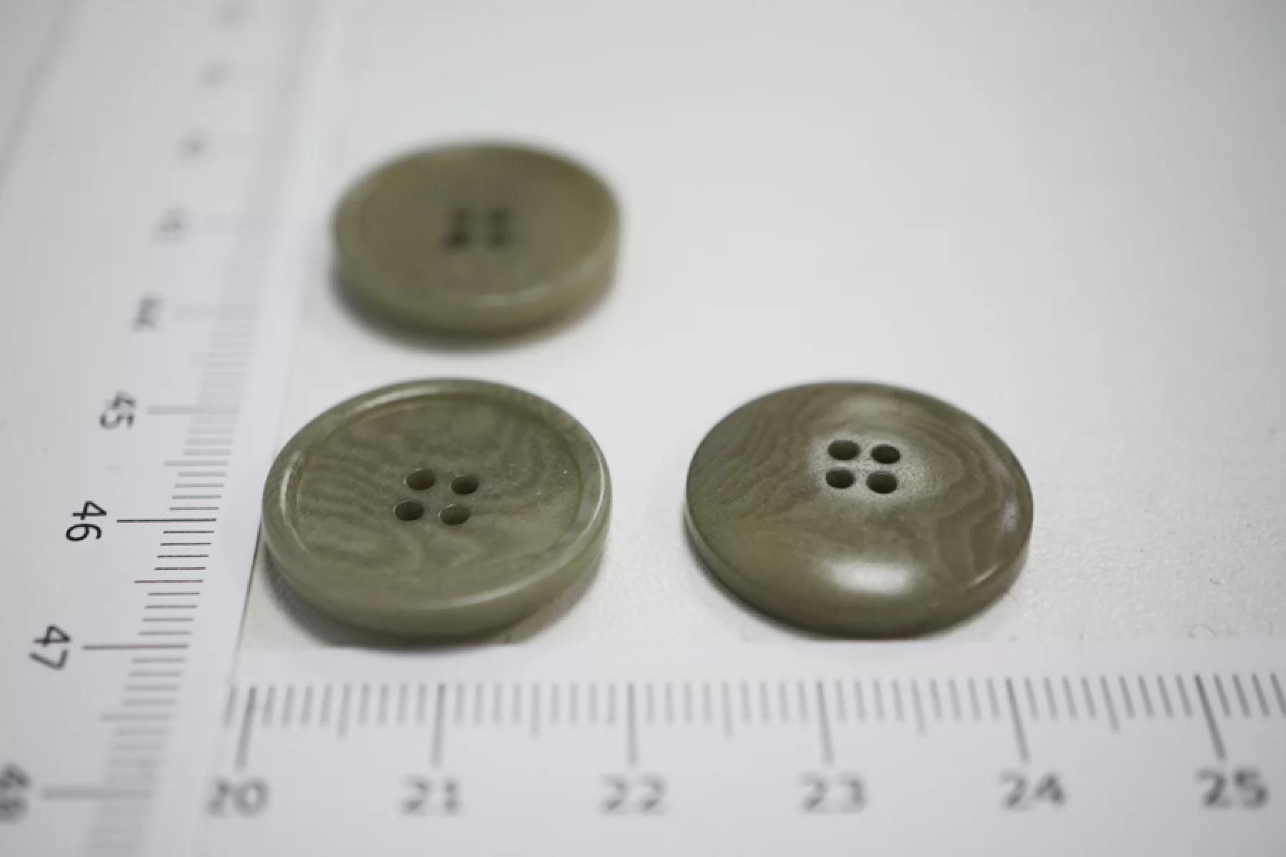 Пуговица костюмно-плательная из пластмассы, размер 20 мм, блекло-оливкового цвета с волнообразным узором.