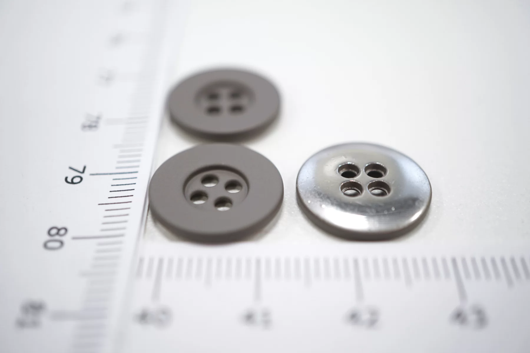 Пуговица костюмно-плательная металлическая, размер 15 мм, темно-серого цвета с матовым покрытием.