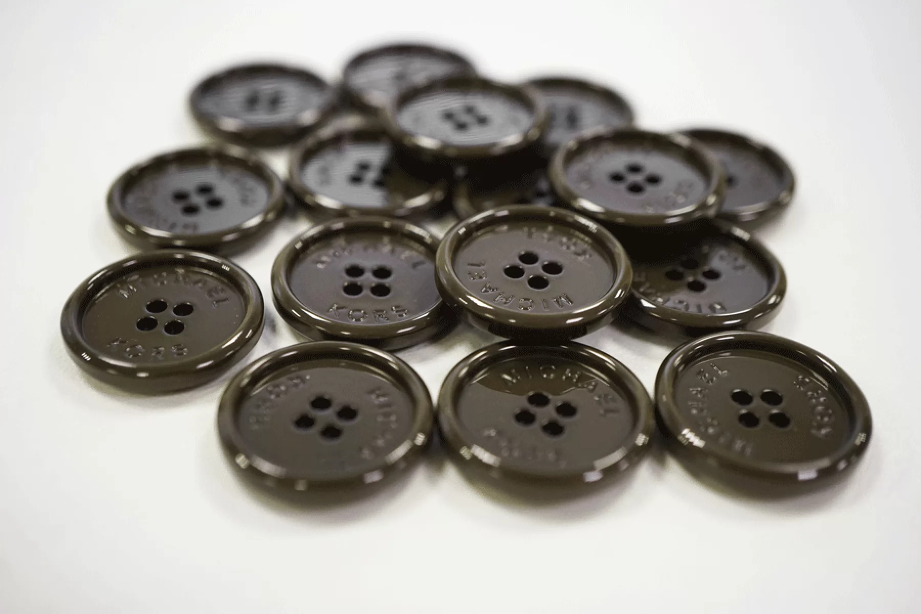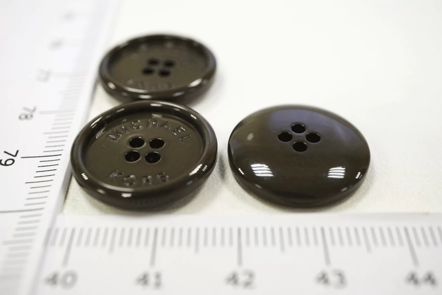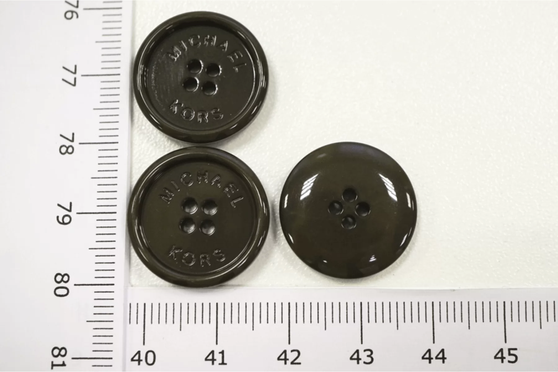 Пуговица костюмно-плательная Michael Kors пластиковая темно-болотного цвета.