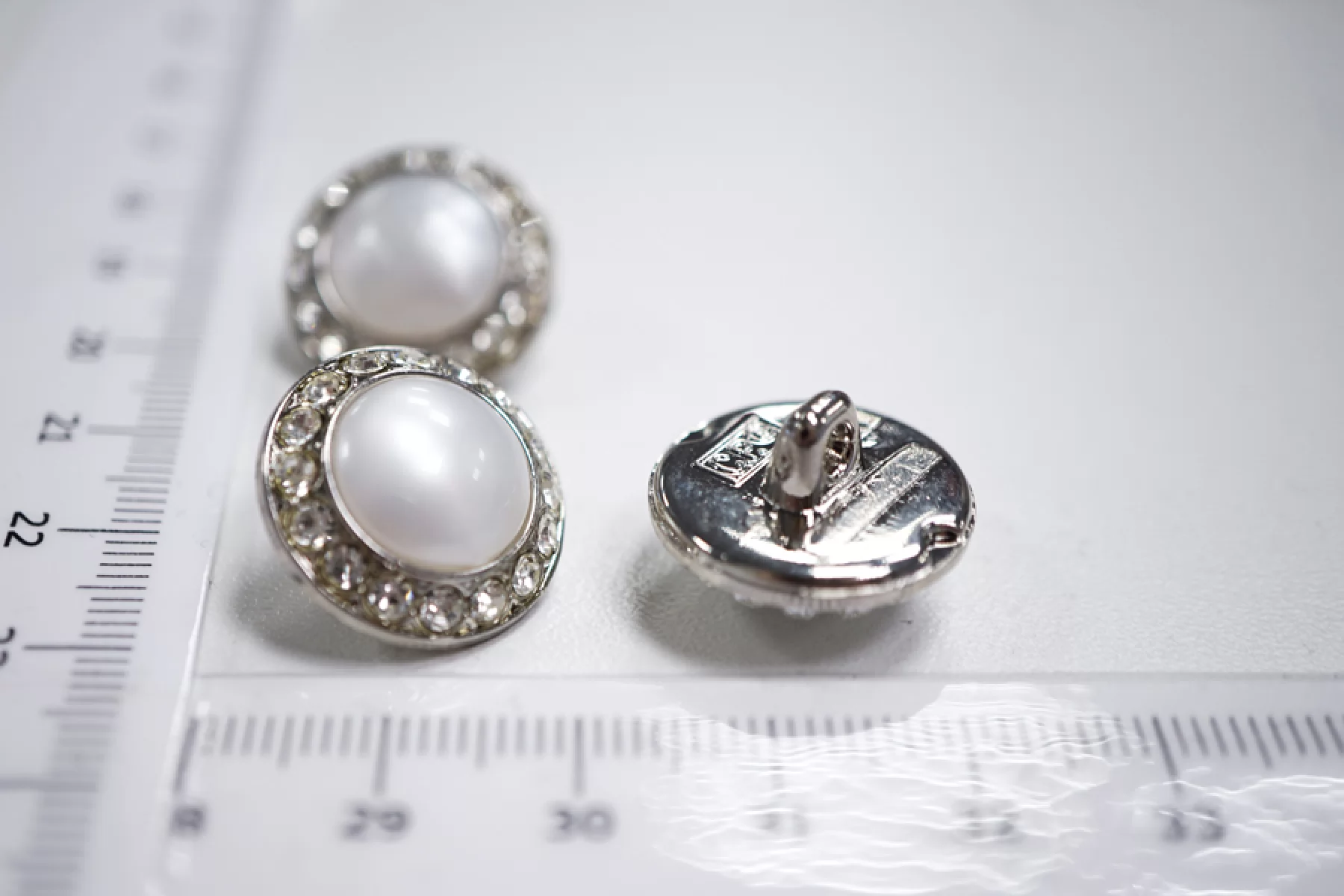 Пуговица костюмно-плательная на ножке серебряная с жемчужиной и стразами 18 мм PRT-(A2)- 11122006