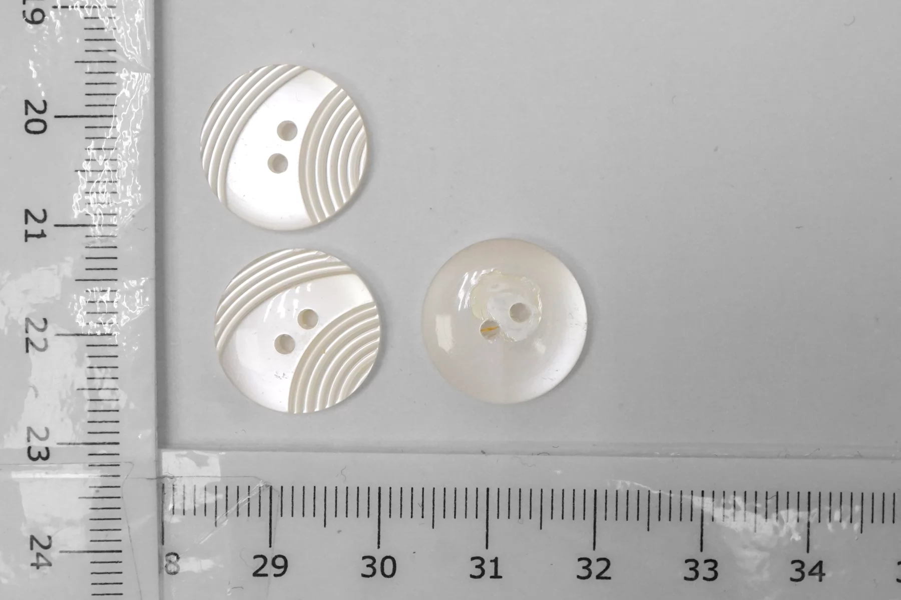 Пуговица костюмно-плательная пластиковая, молочного цвета с перламутром 15 мм.