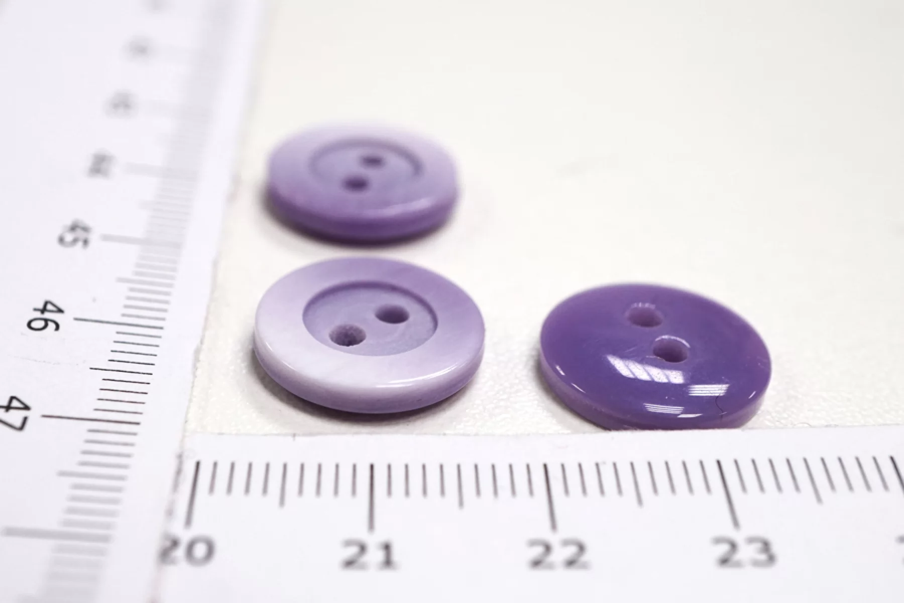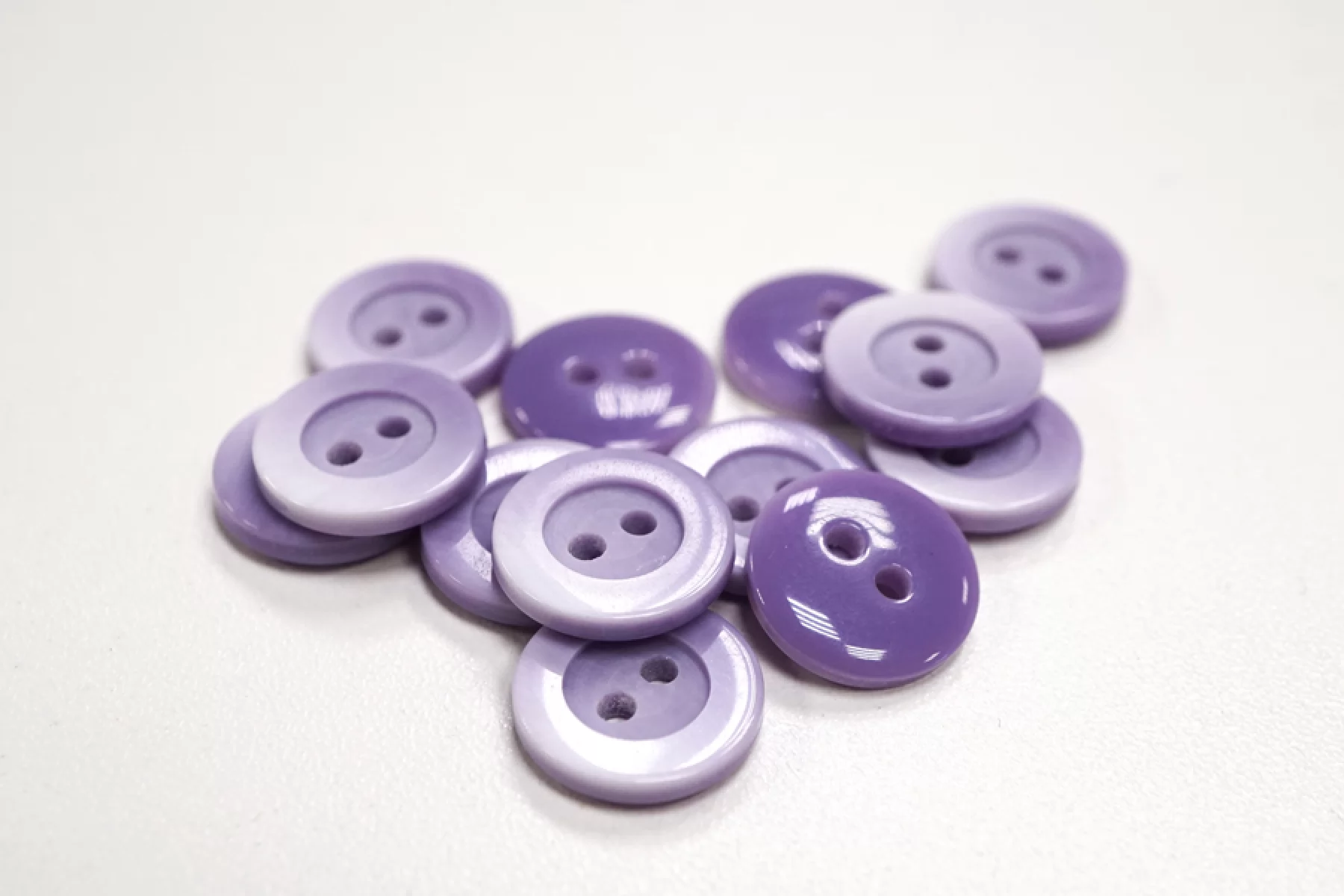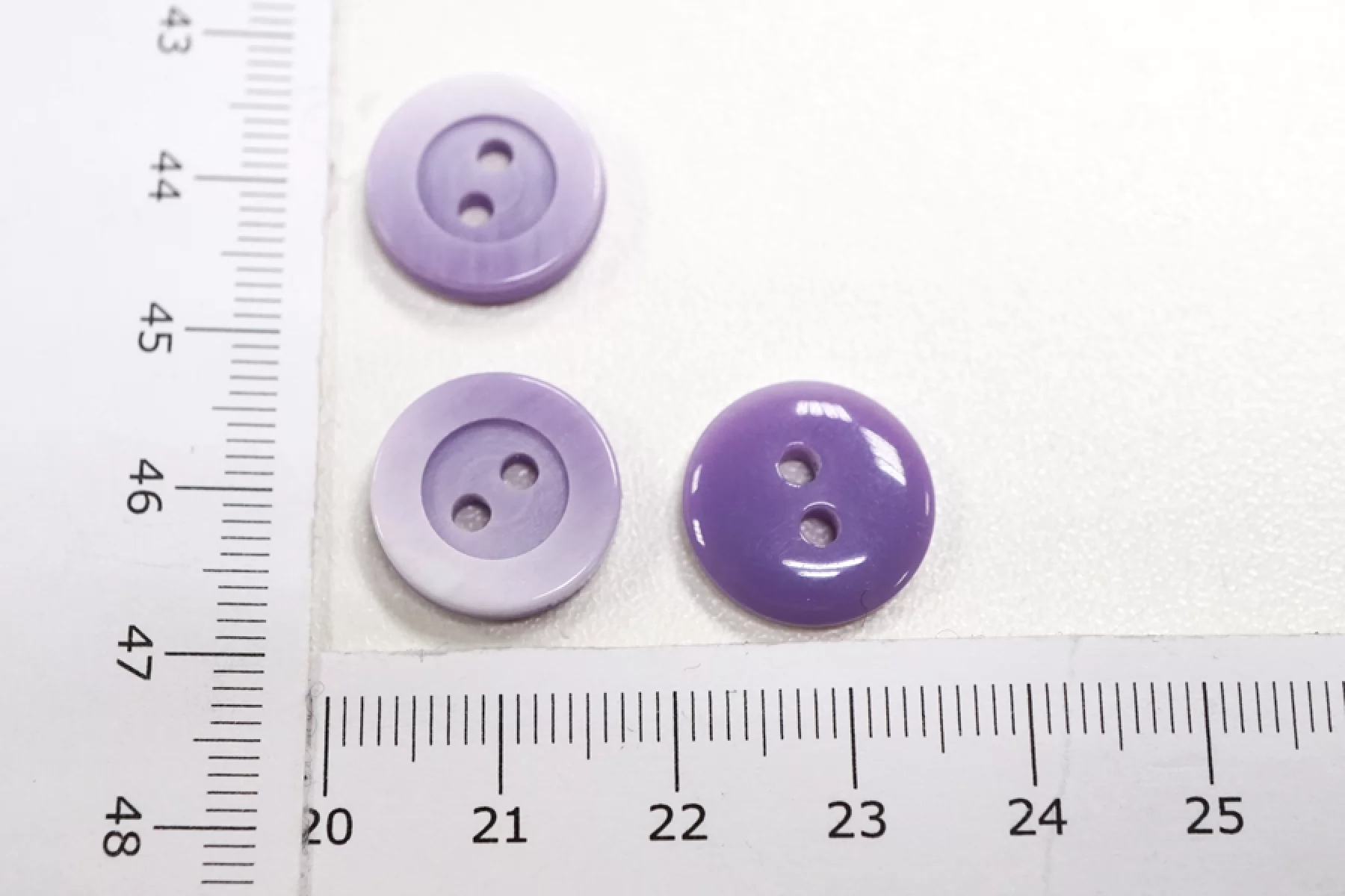 Пуговица костюмно-плательная из пластмассы, размер 15 мм, глянцевая, бело-сиреневого цвета.
