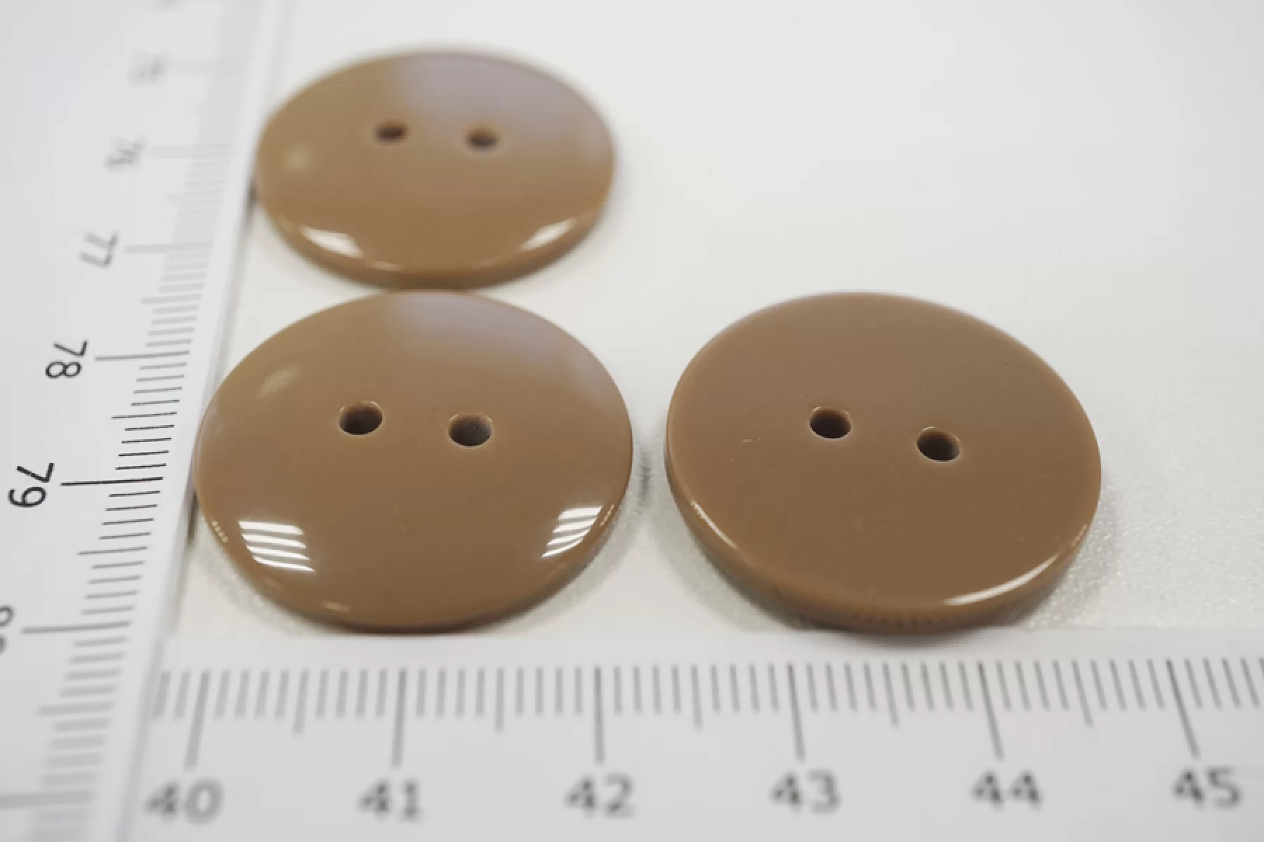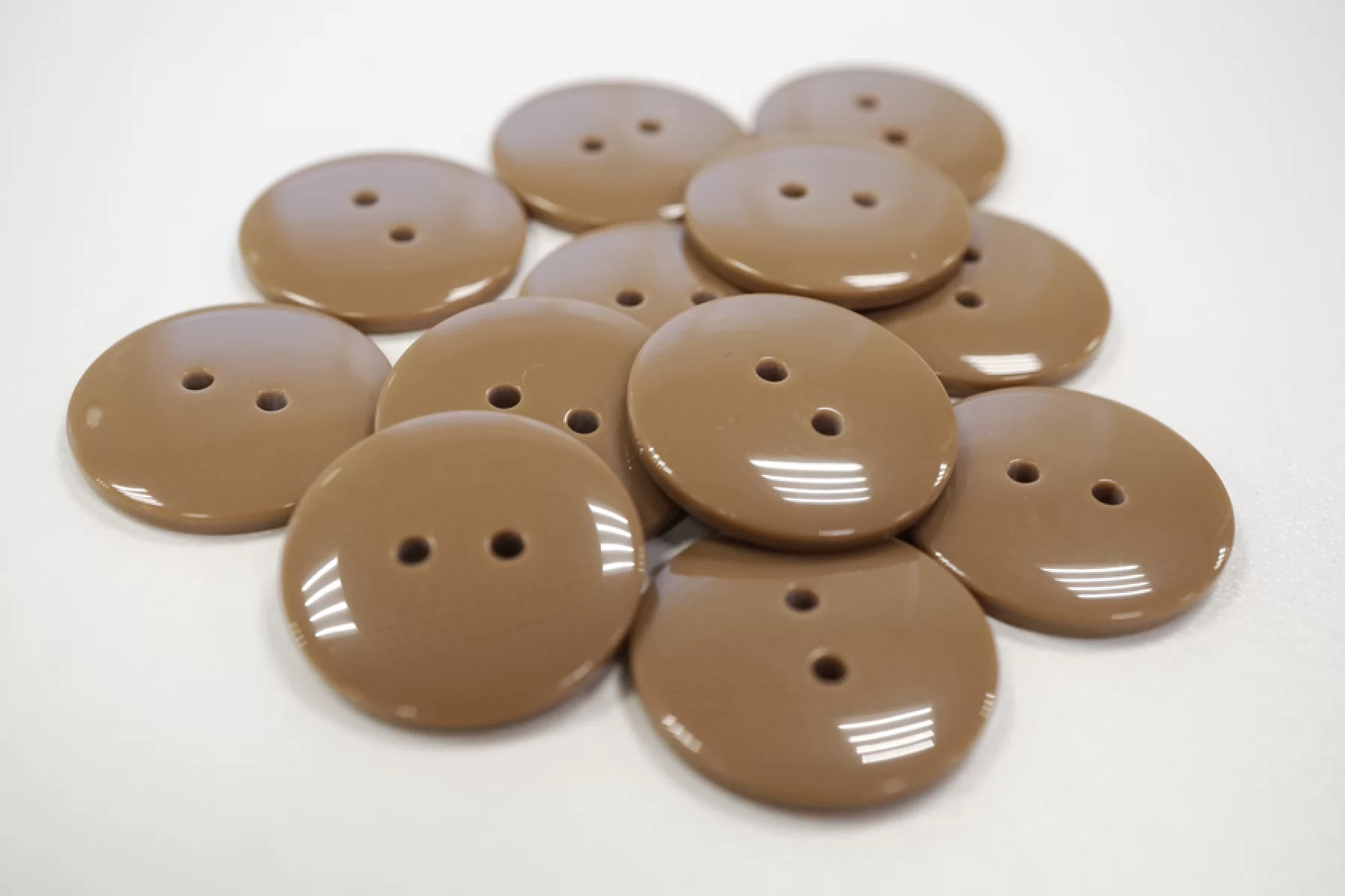 Пуговица костюмно-пальтовая из пластмассы, размер 24 мм, кофейно-бежевого цвета.