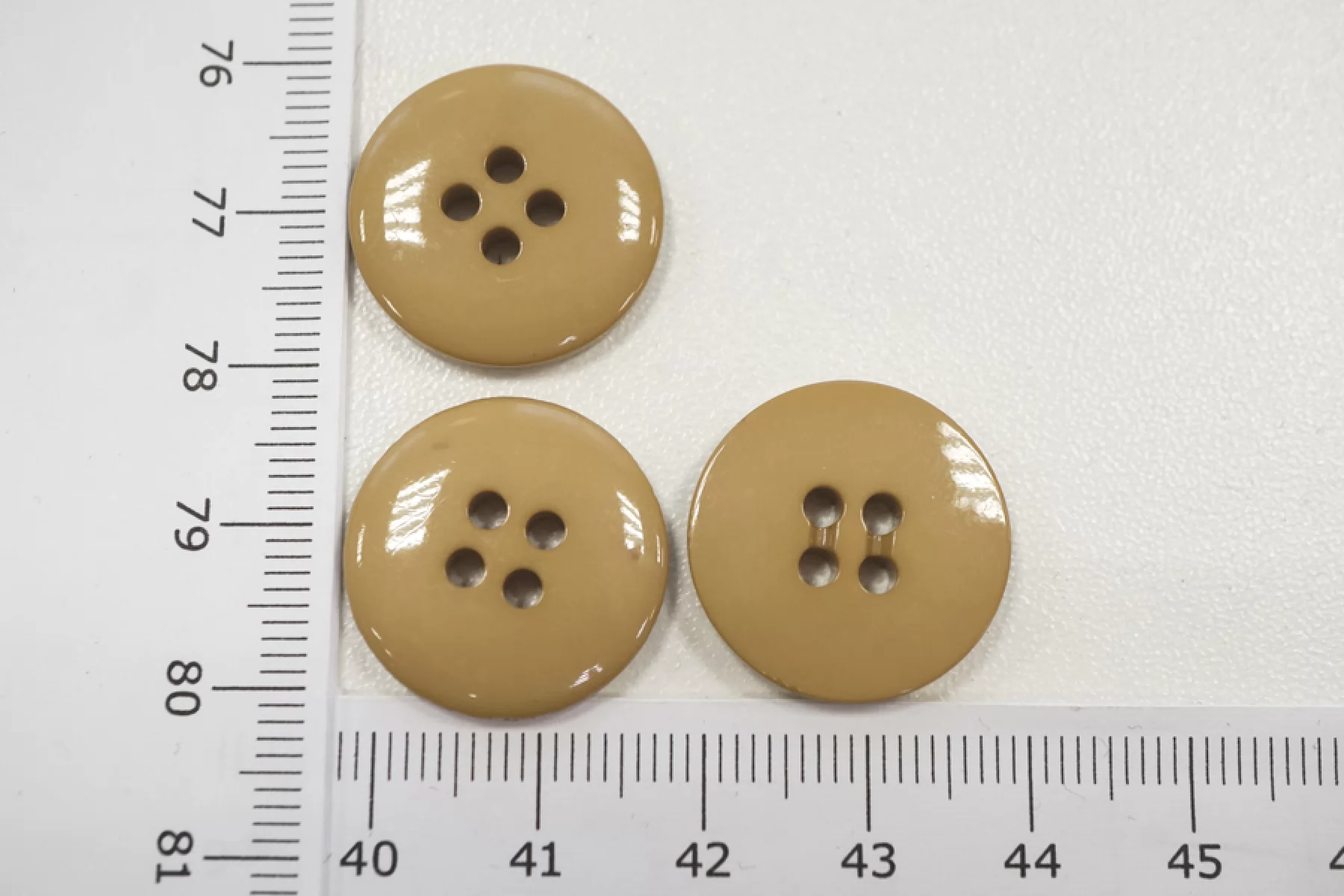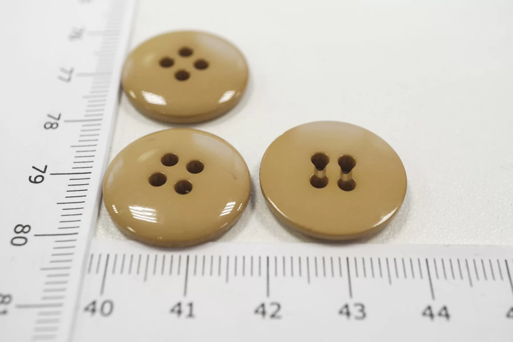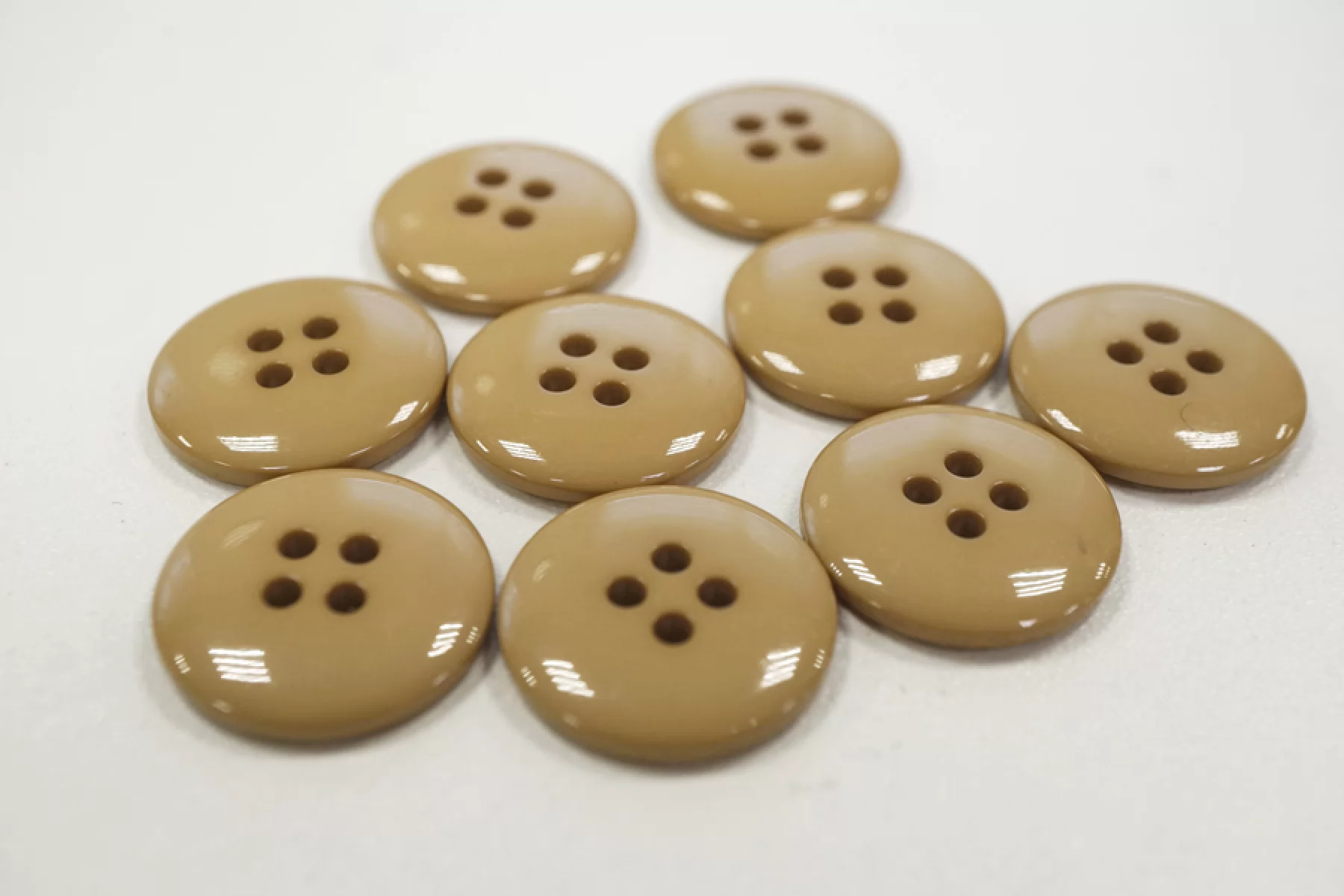 Пуговица костюмная из пластмассы, размер 20 мм, темного бежевого цвета.