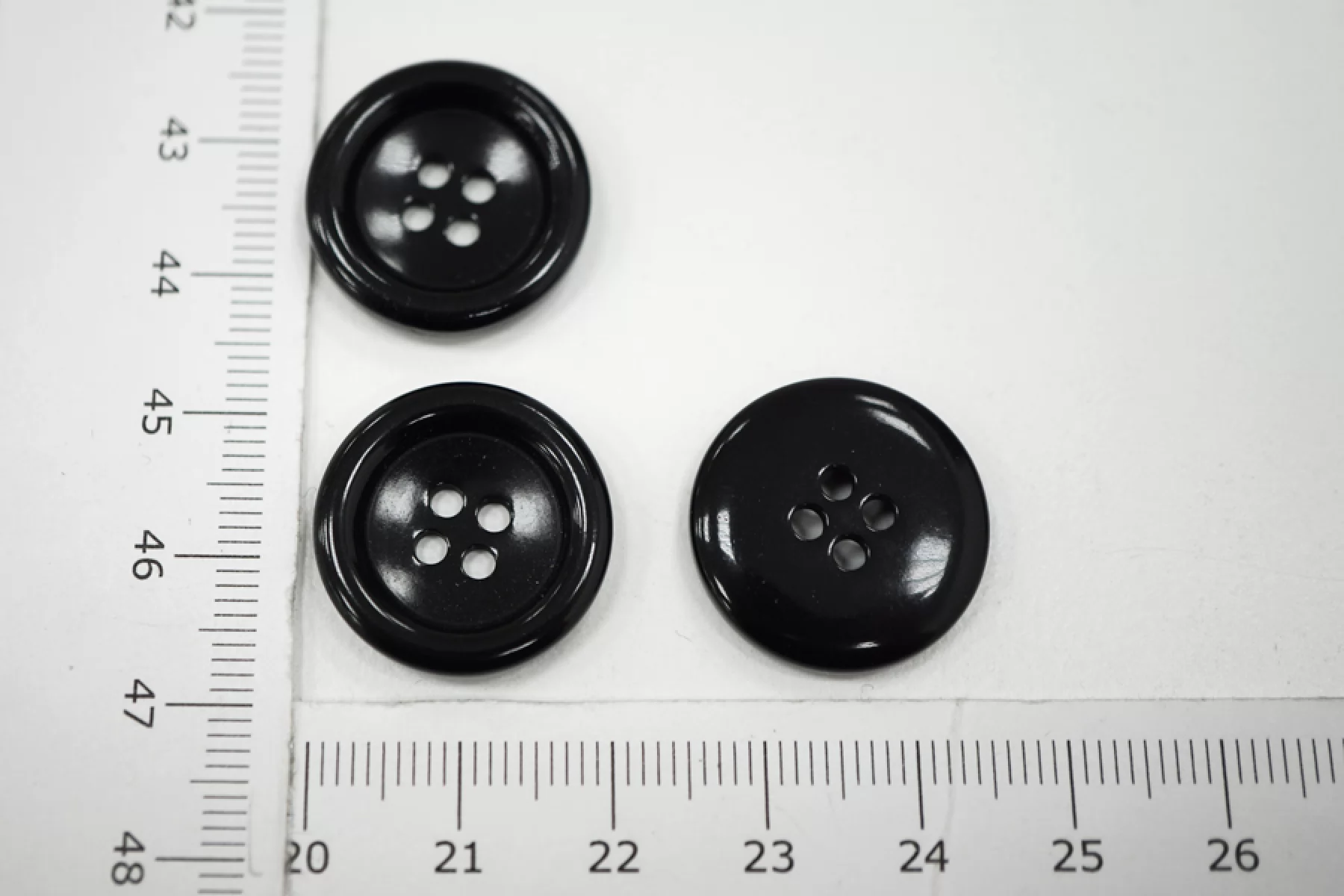 Пуговица костюмно-плательная из пластмассы, размер 20 мм, черного цвета.