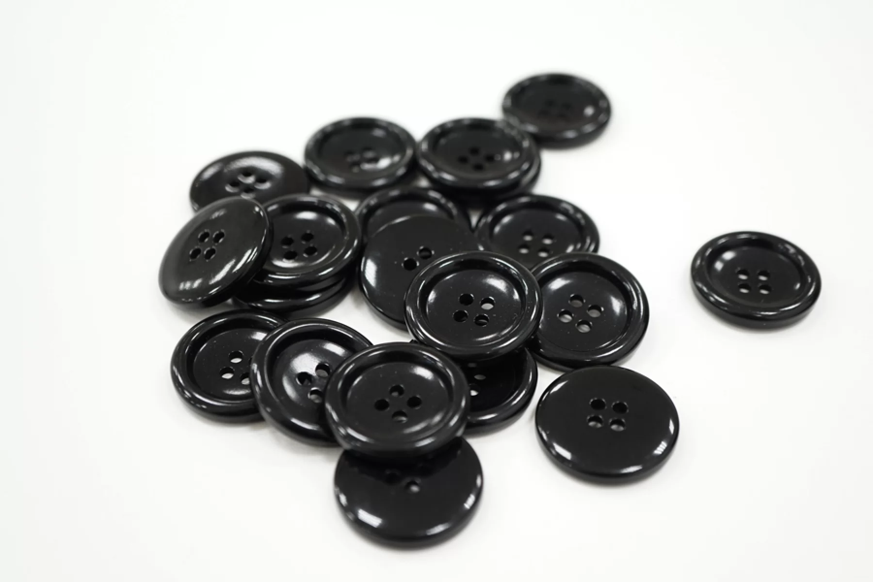 Пуговица костюмно-плательная из пластмассы, размер 23 мм, черного цвета.
