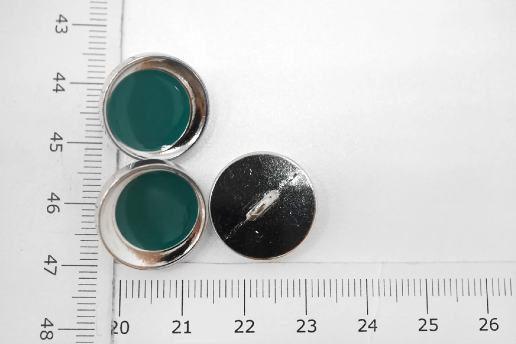 Пуговица костюмно-плательная пластик изумрудно-серебряная 18 мм (K2) 3012231