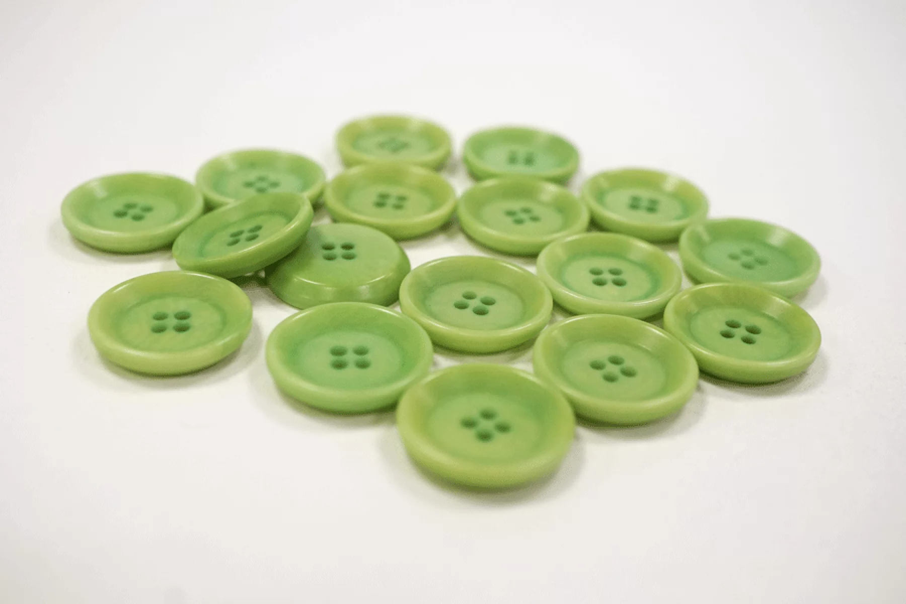 Пуговица костюмно-плательная из пластмассы, размер 17 мм, лаймового цвета.
