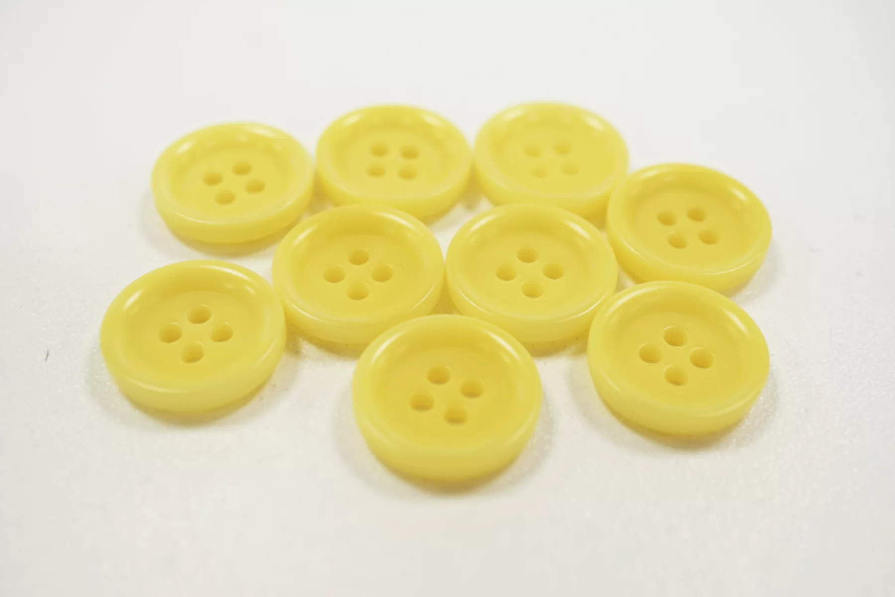 Пуговица костюмно-плательная из пластмассы, размер 15 мм, лимонного цвета.