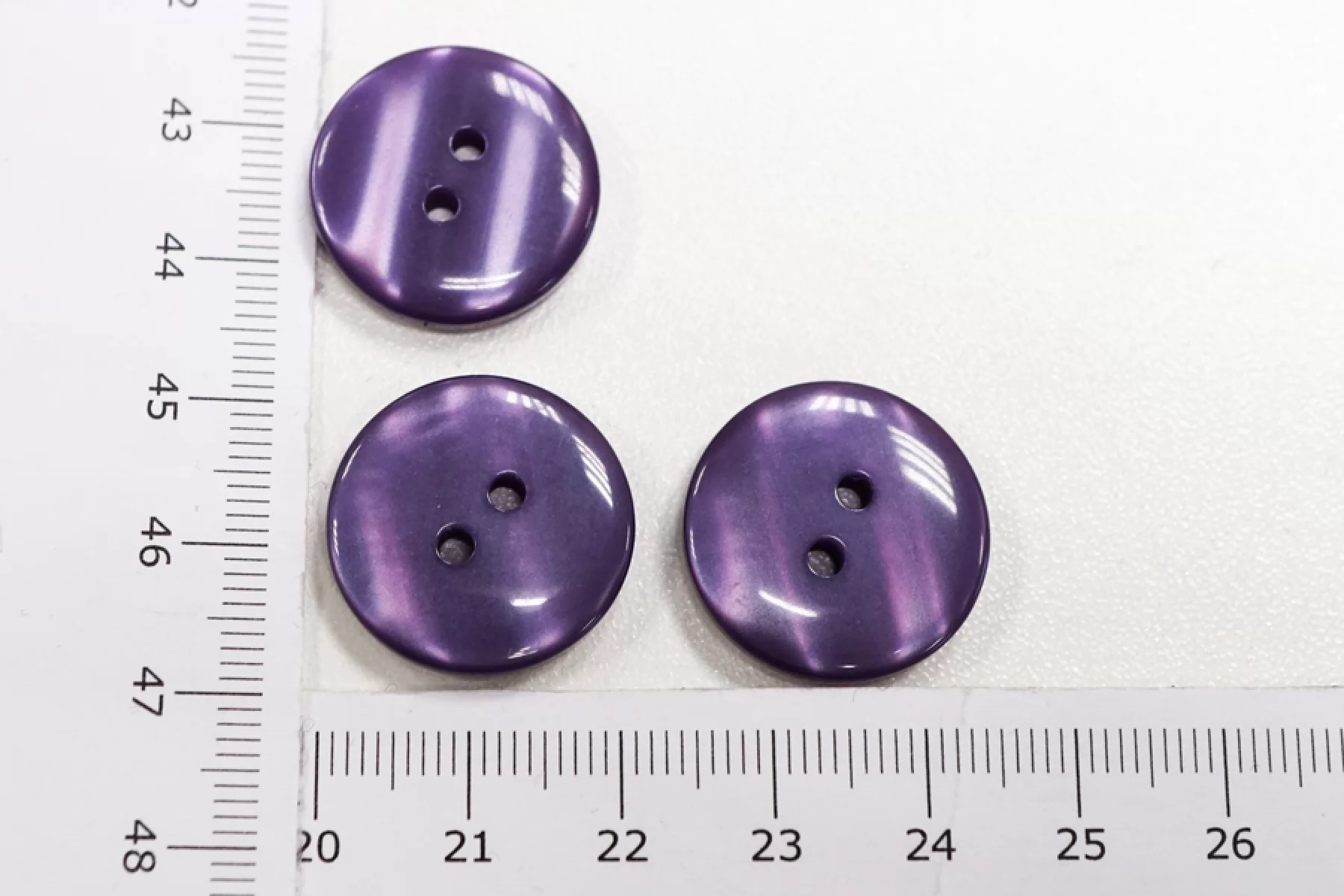 Пуговица костюмно-плательная из пластмассы, размер 20 мм, с перламутровым переливом, лилового цвета.