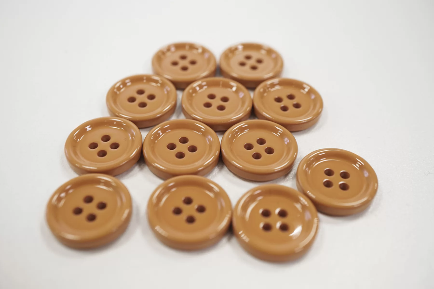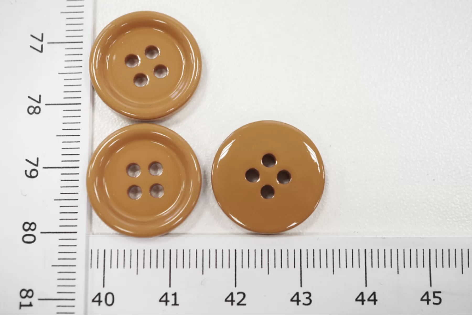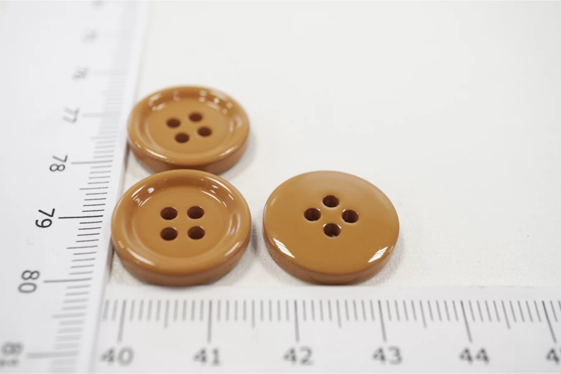 Пуговица костюмно-плательная из пластмассы, размер 17 мм, разбавленного бежево-оранжевого цвета.