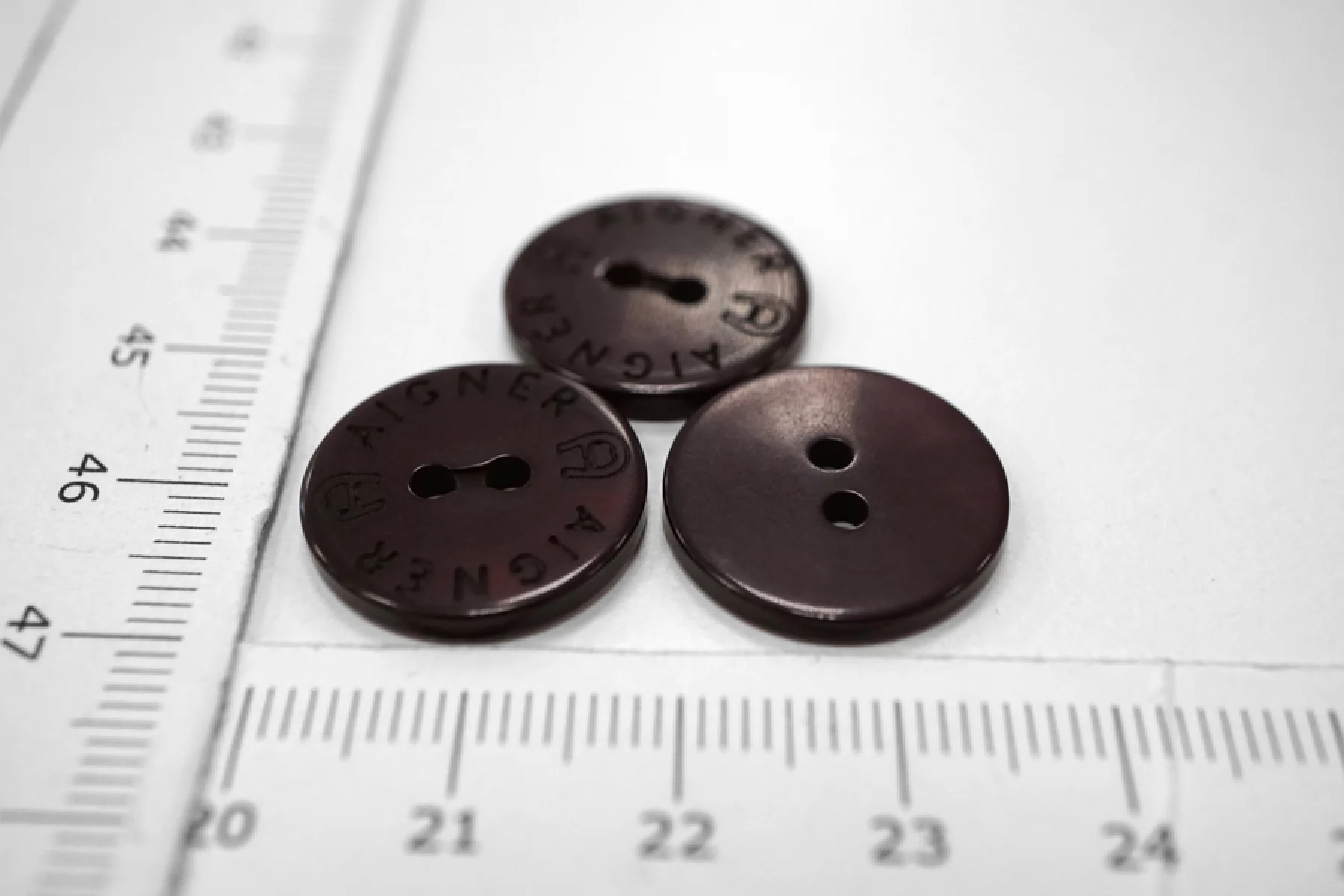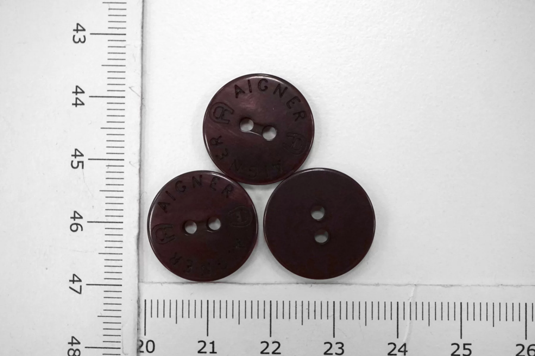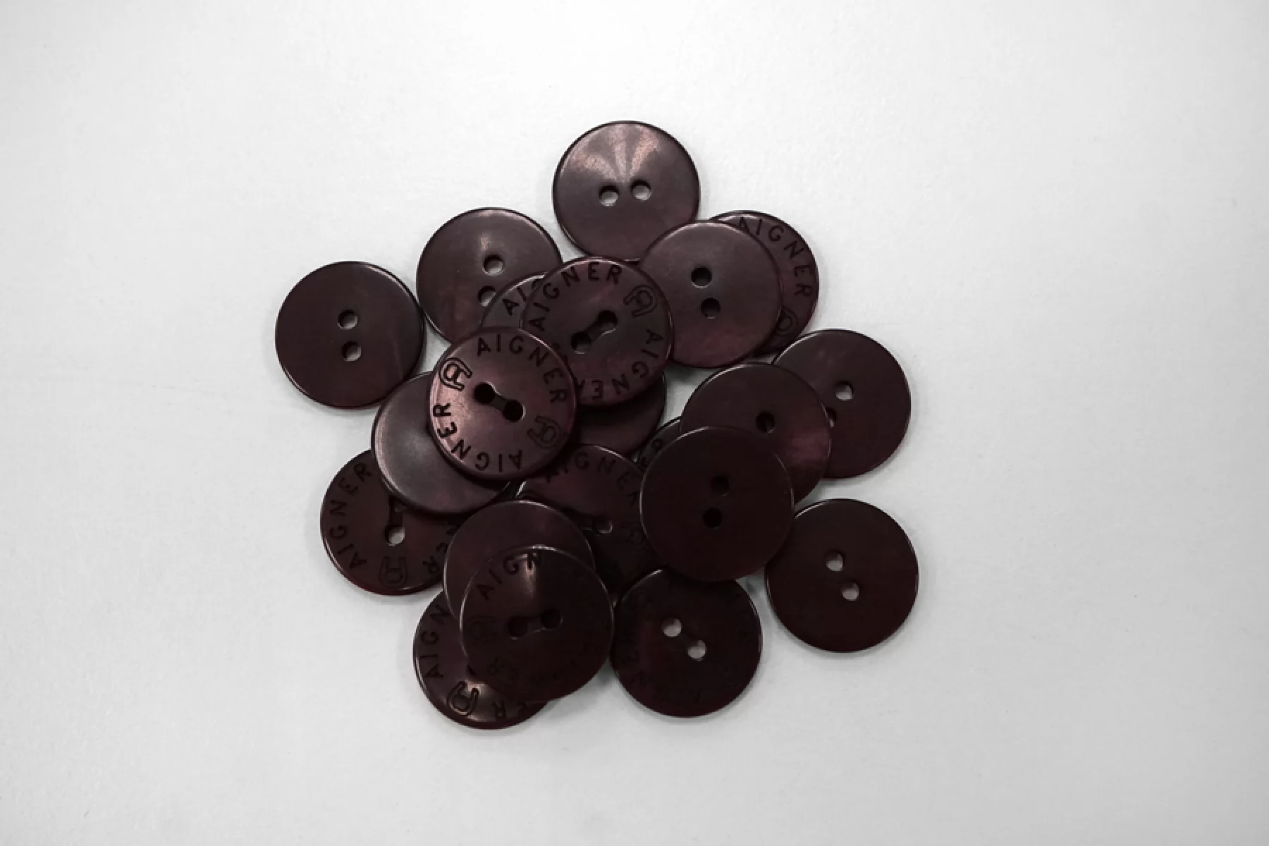 Пуговица костюмно-рубашечная пластиковая ," Aigner" , размер 18 мм, темно-винного цвета.