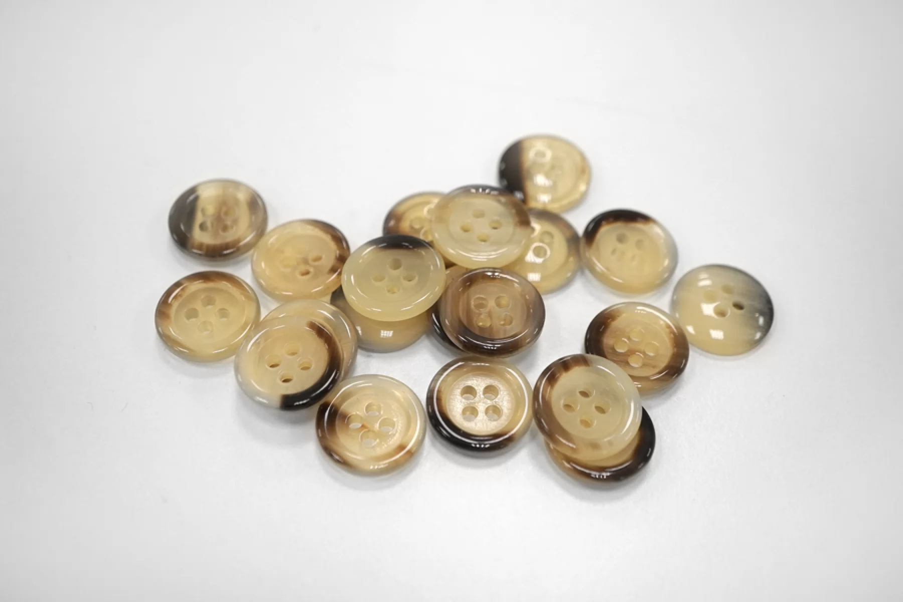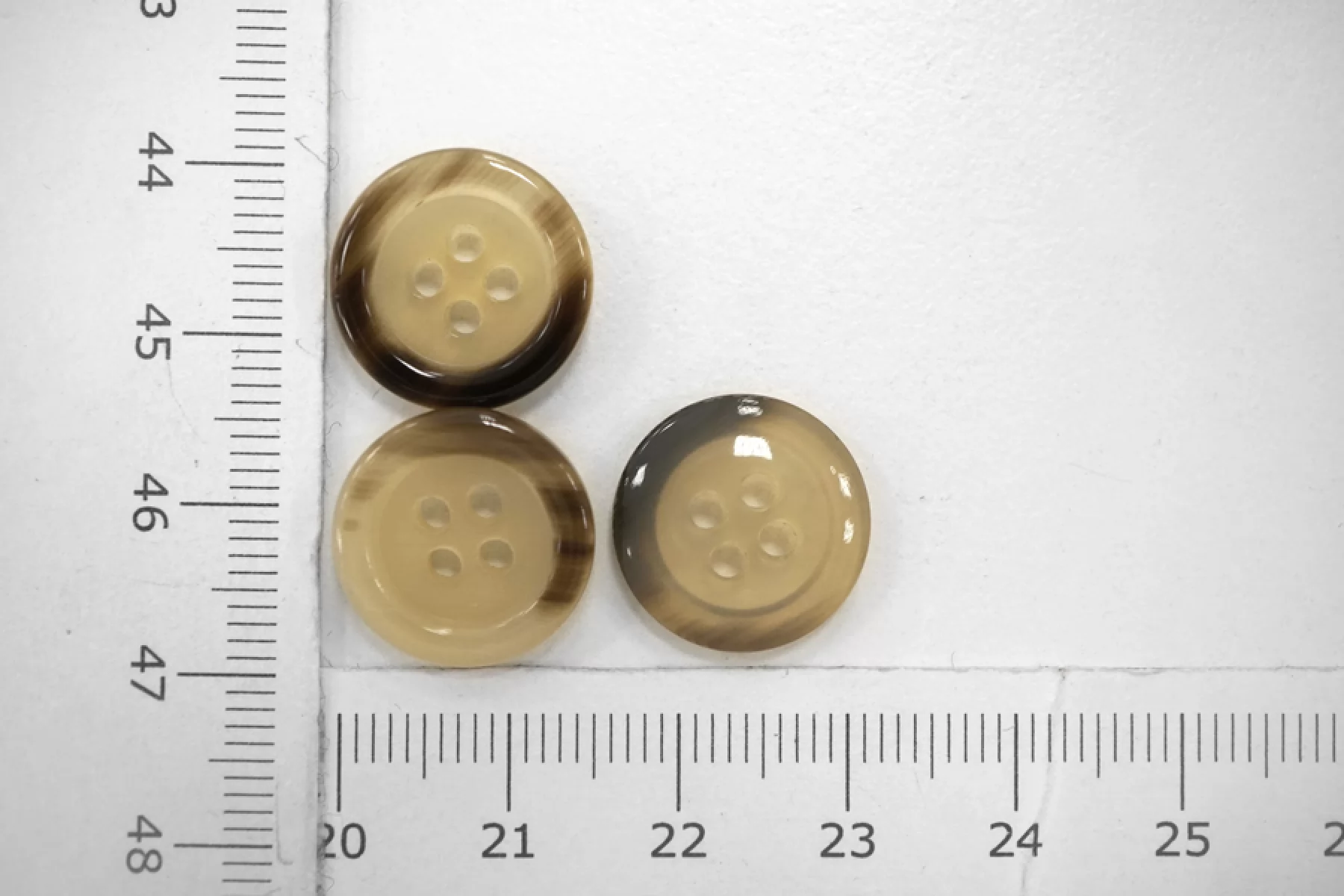 Пуговица костюмно-рубашечная пластик 15 мм бежево-коричневая под рог-(M1)- 6012222