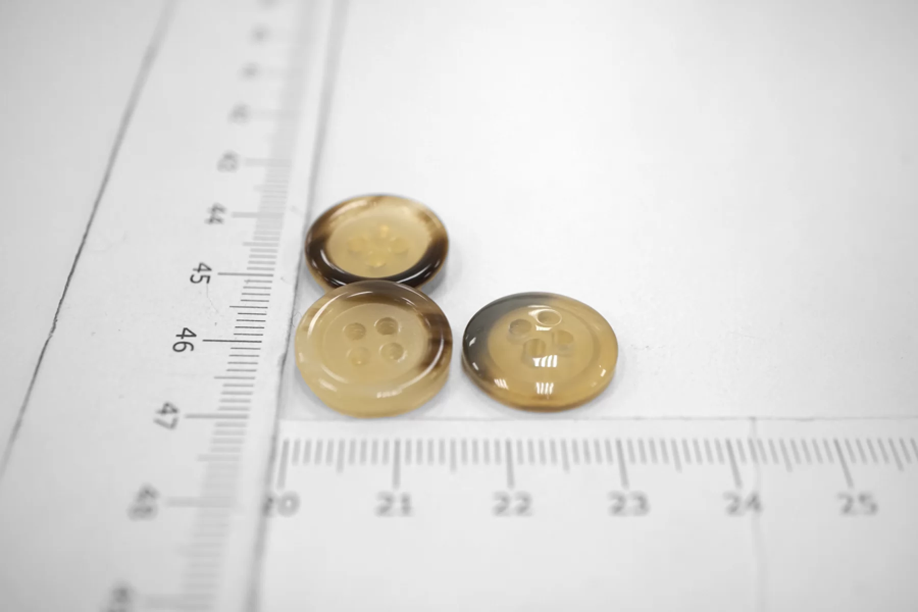 Пуговица костюмно-рубашечная пластиковая, размер 15 мм, бежево-коричневого цвета, под рог