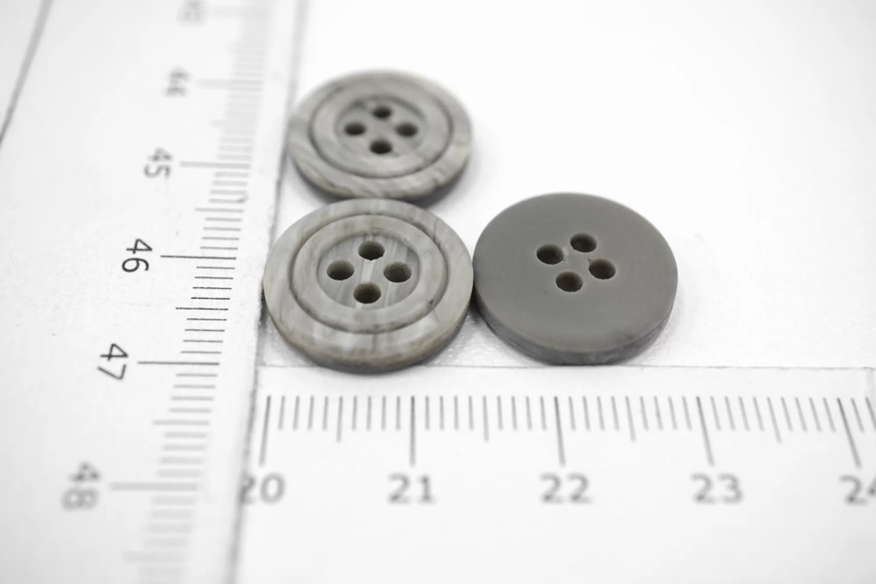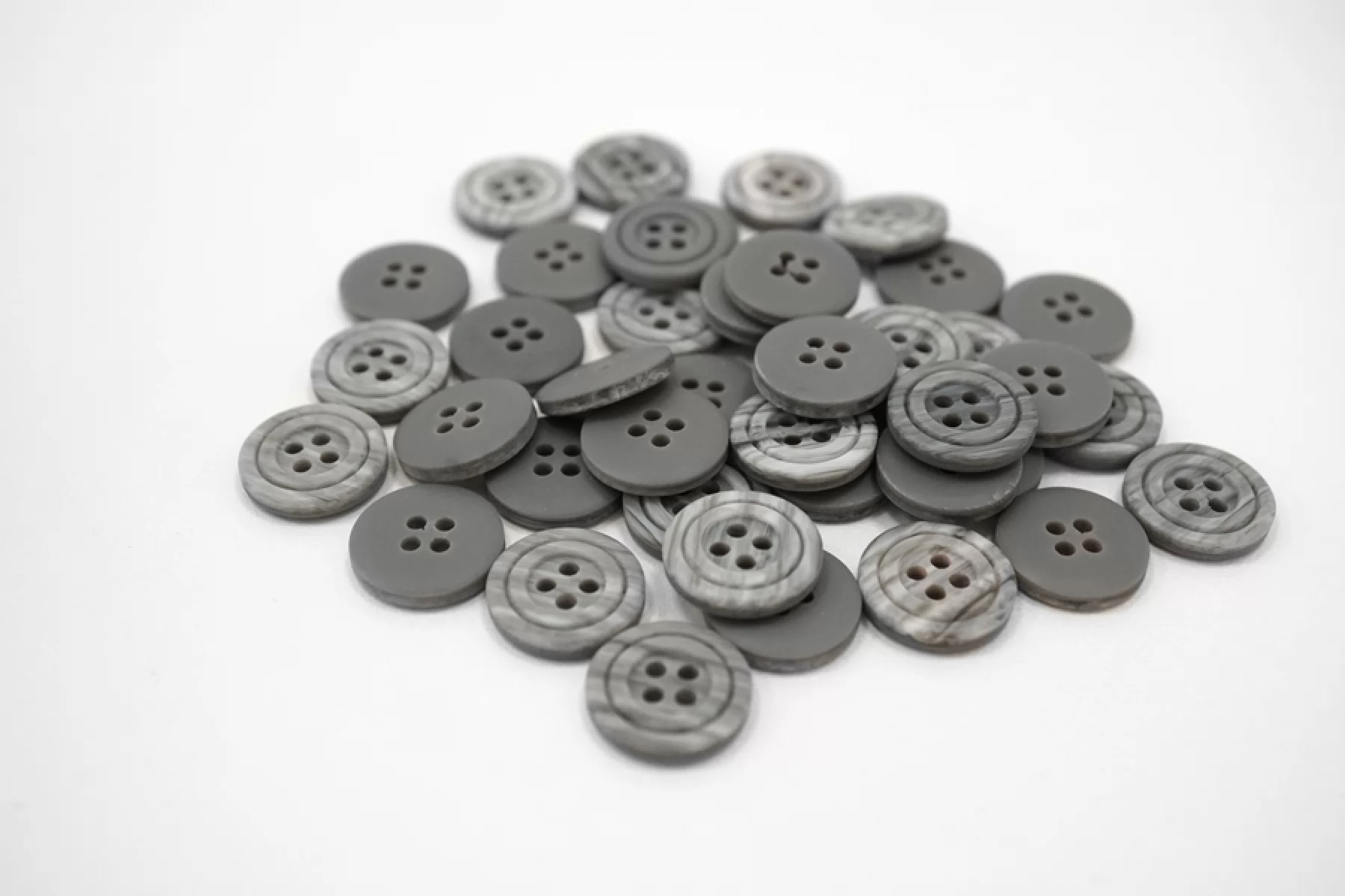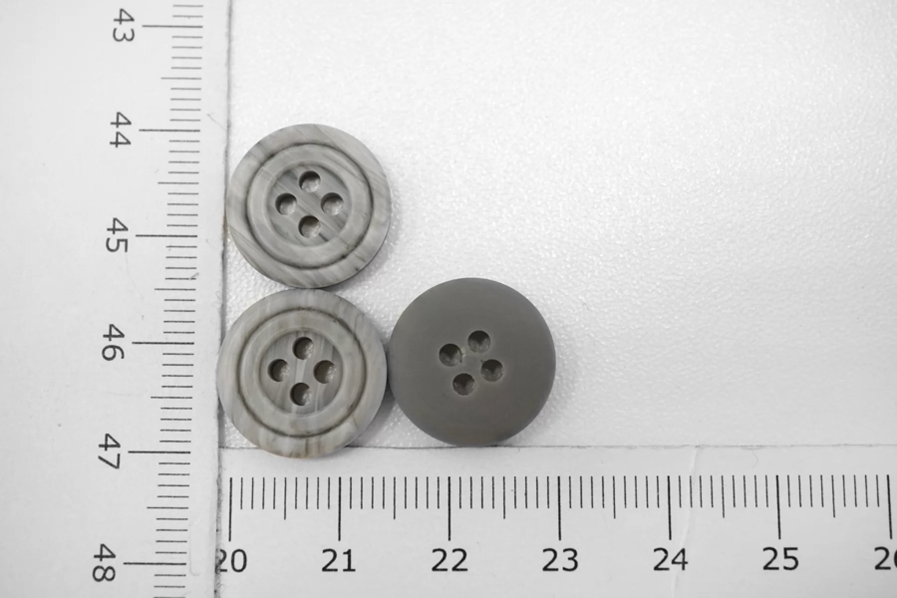 Пуговица костюмно-рубашечная пластиковая, размер 15 мм, серого цвета, под рог.