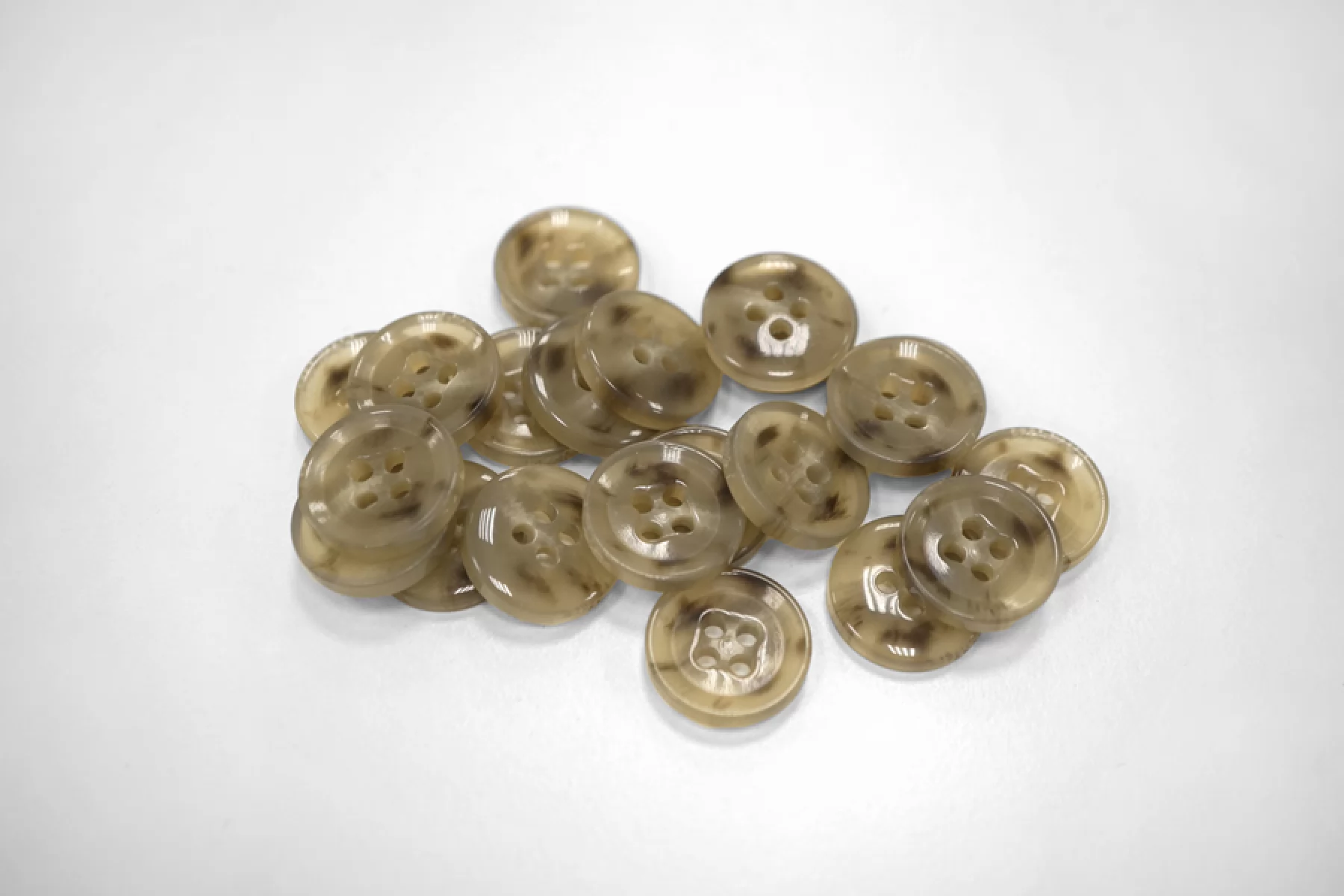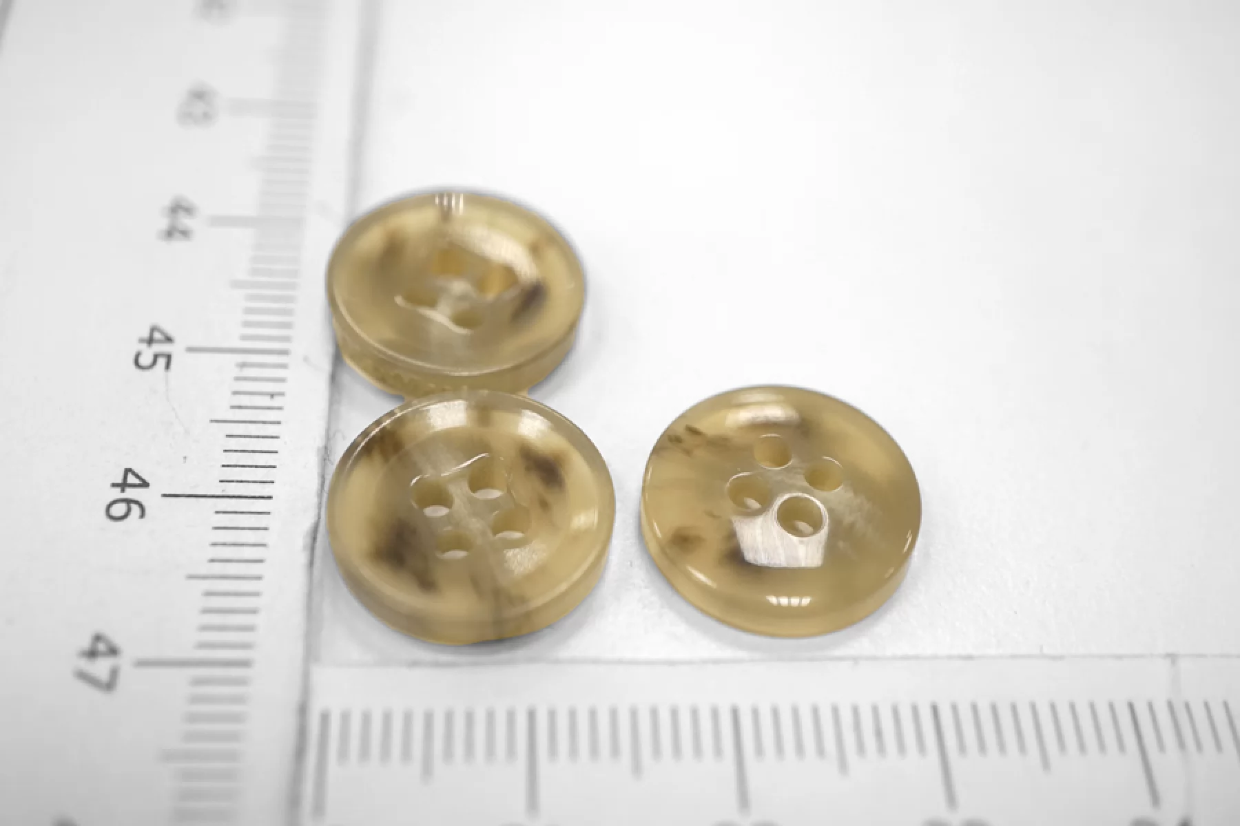 Пуговица костюмно-рубашечная пластиковая, размер 15 мм, соломенного цвета, под рог.