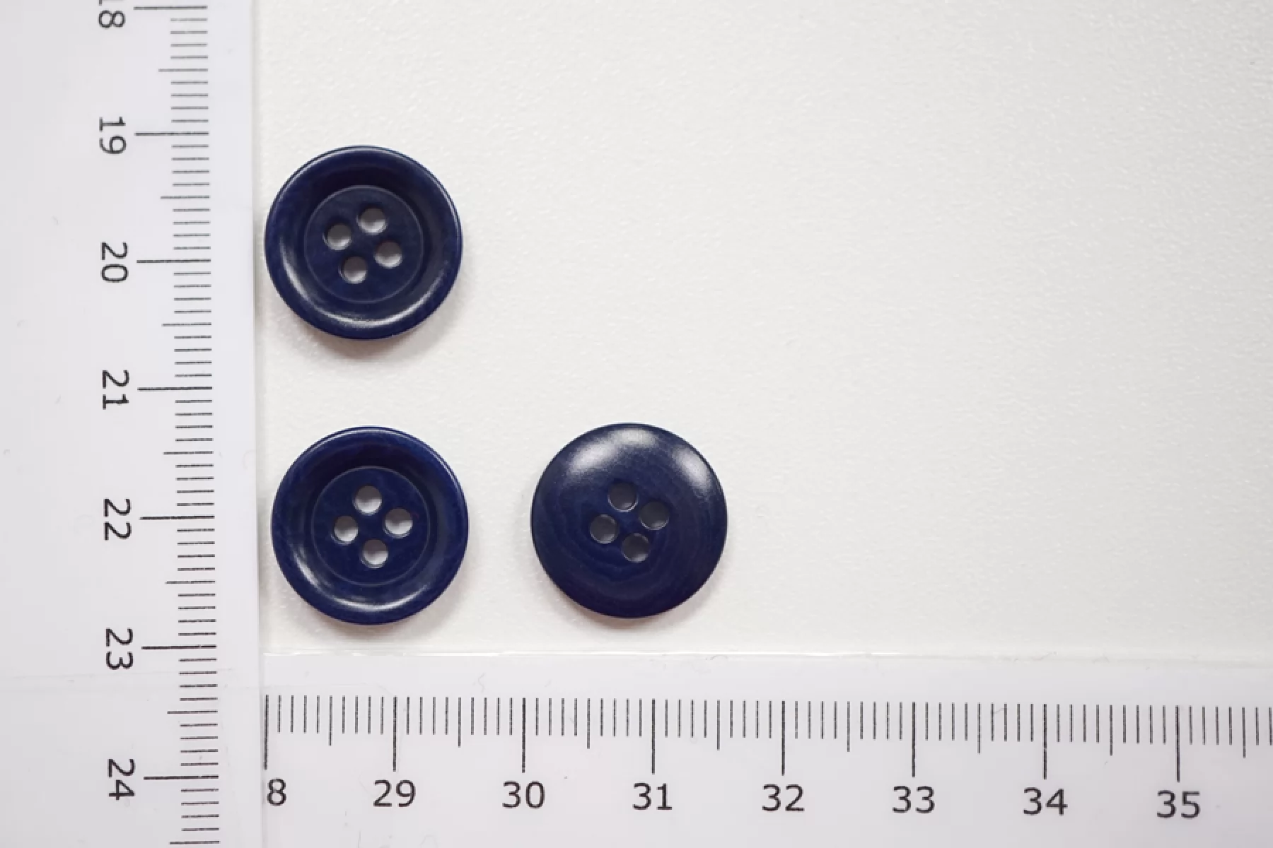 Пуговица костюмно-рубашечная пластиковая, размер 15 мм, темно-синего цвета.