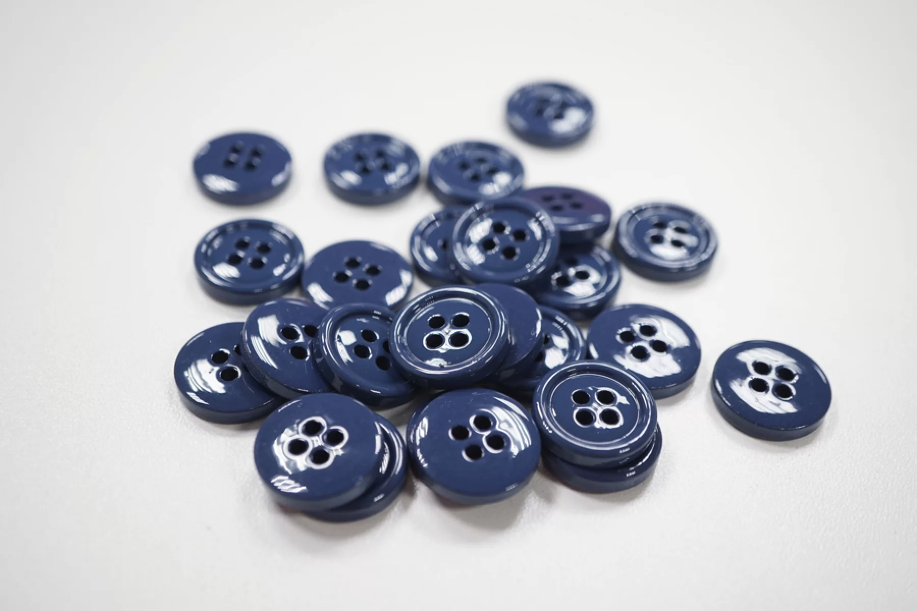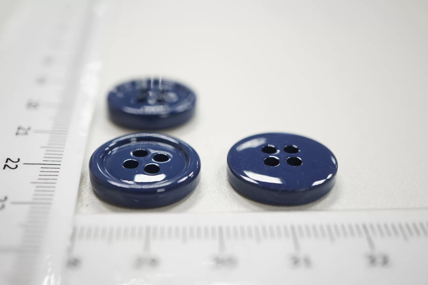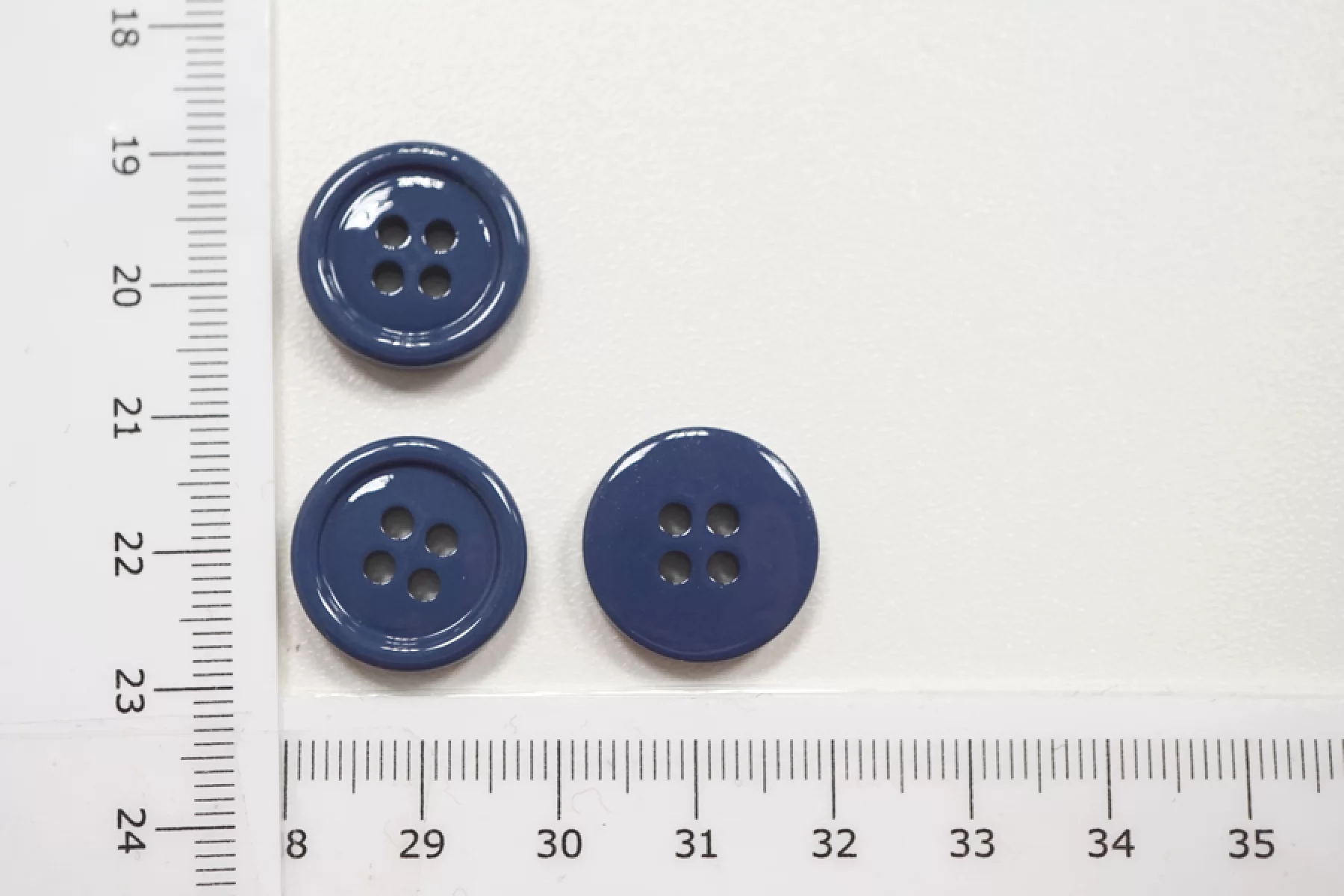 Пуговица костюмно-рубашечная пластиковая, размер 17 мм, синего цвета.