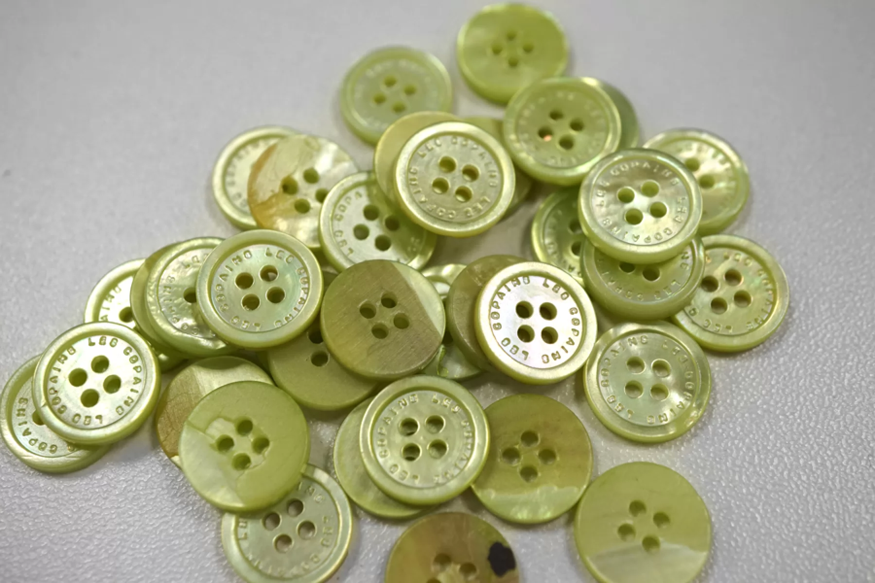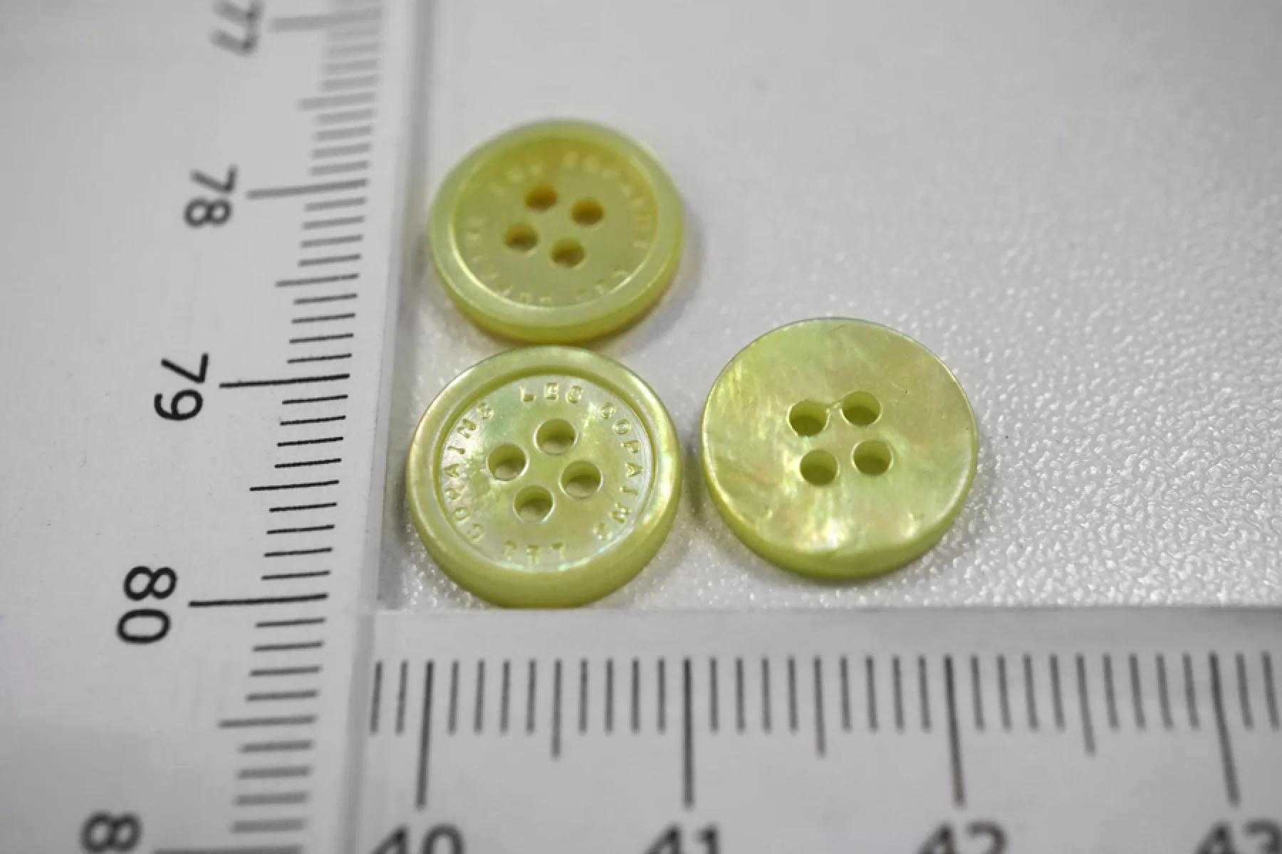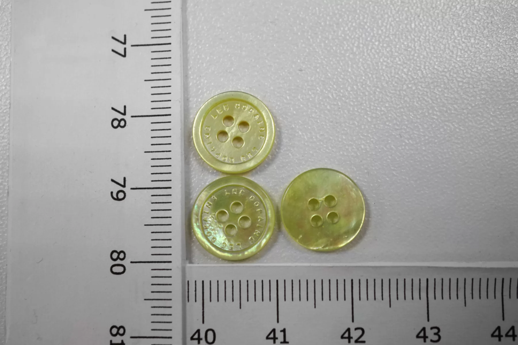 Пуговица рубашечно-плательная "Les Copains" из натуральной ракушки, размер 11 мм, цвет нежно-зеленый. Пуговицы из натурального перламутра хрупкие, могут сломаться при падении с высоты или при сильном сжатии.