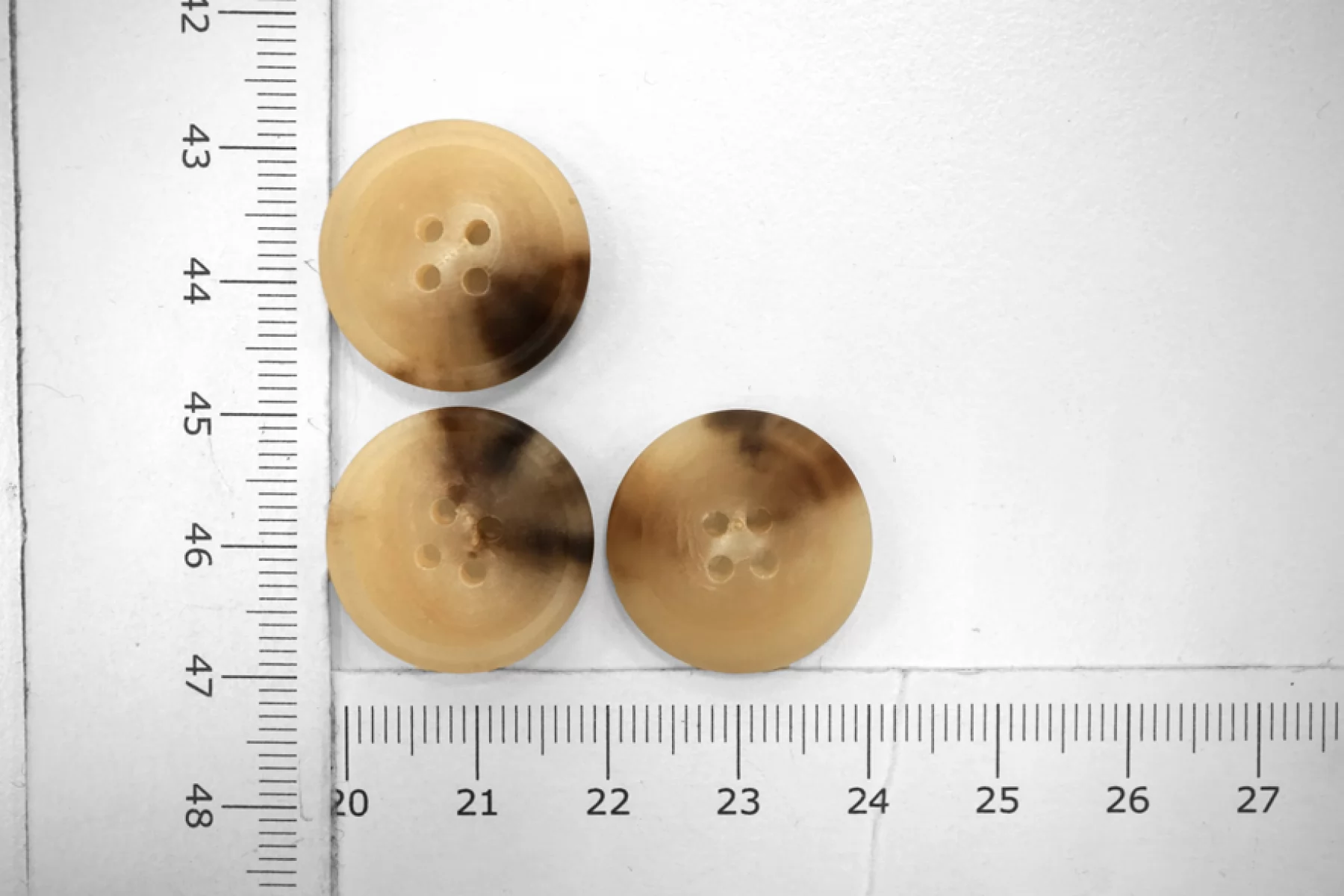 Пуговица матовая костюмно-пальтовая Rebecchi Massimo из пластмассы, под рог, размер 20 мм, бежево-коричневого цвета.
