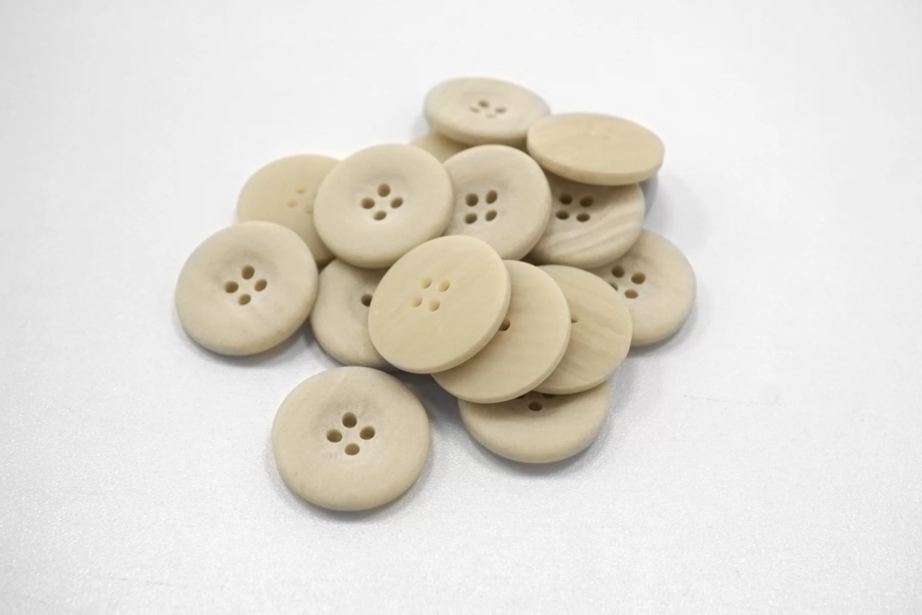 Пуговица матовая костюмно-пальтовая из пластмассы, размер 25 мм, под рог, молочного цвета.