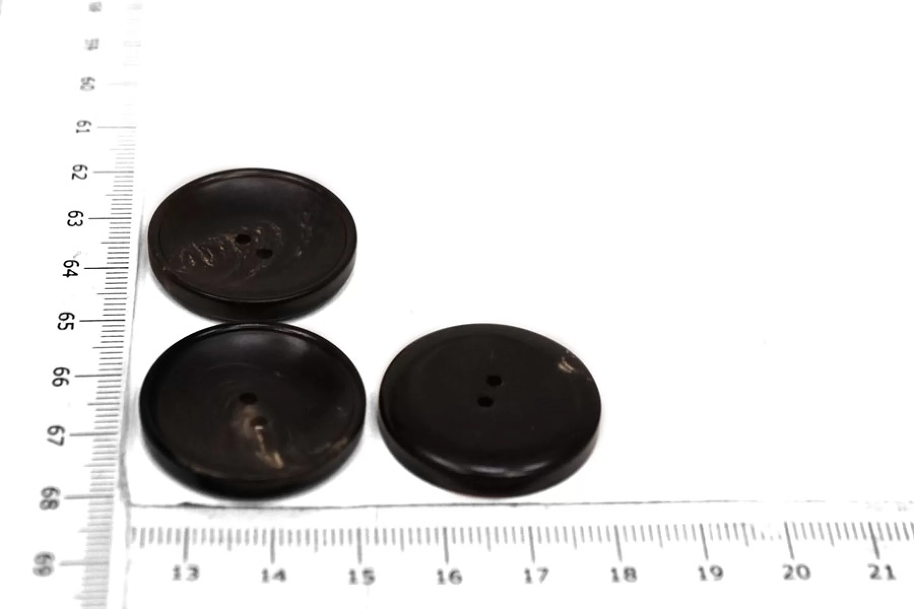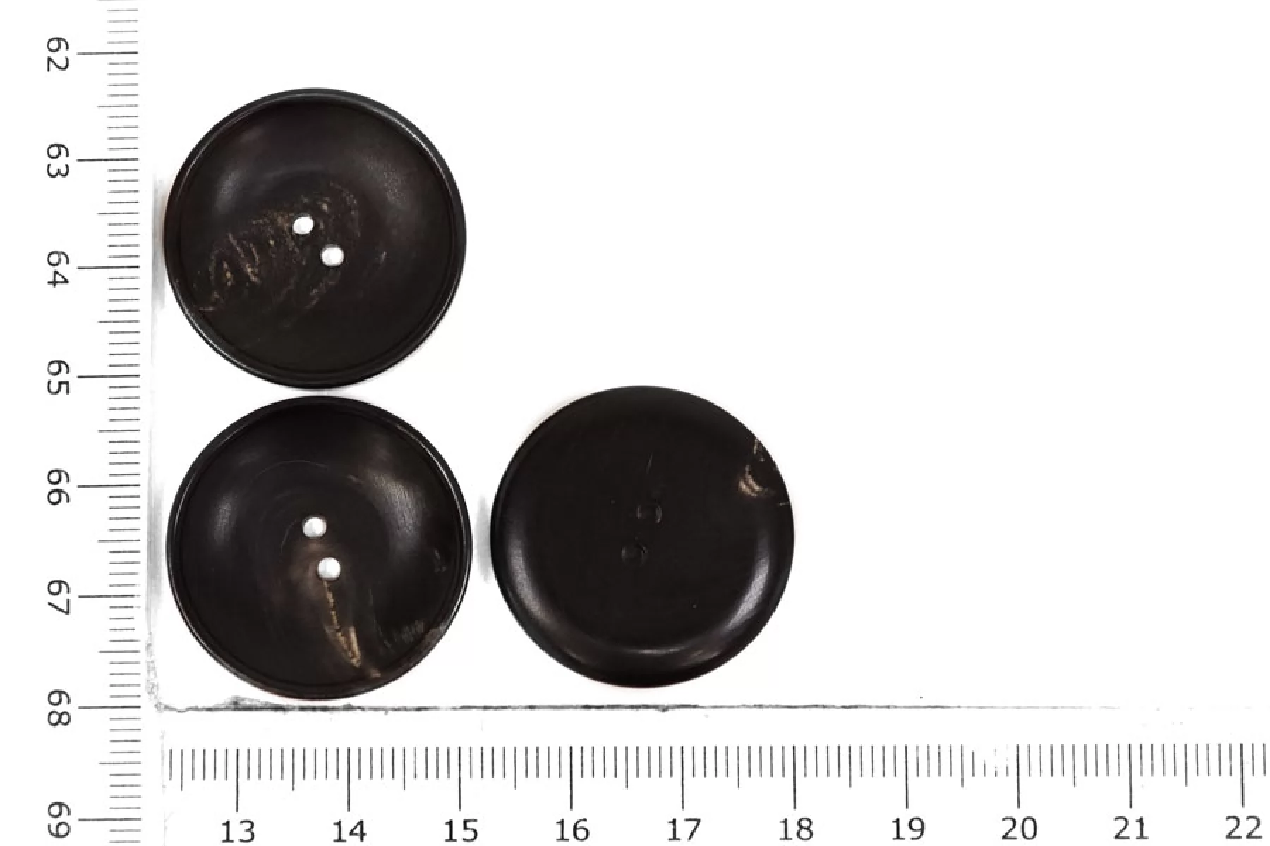 Пуговица матовая костюмно-пальтовая из пластмассы 28 мм, тёмно-коричневого цвета.
