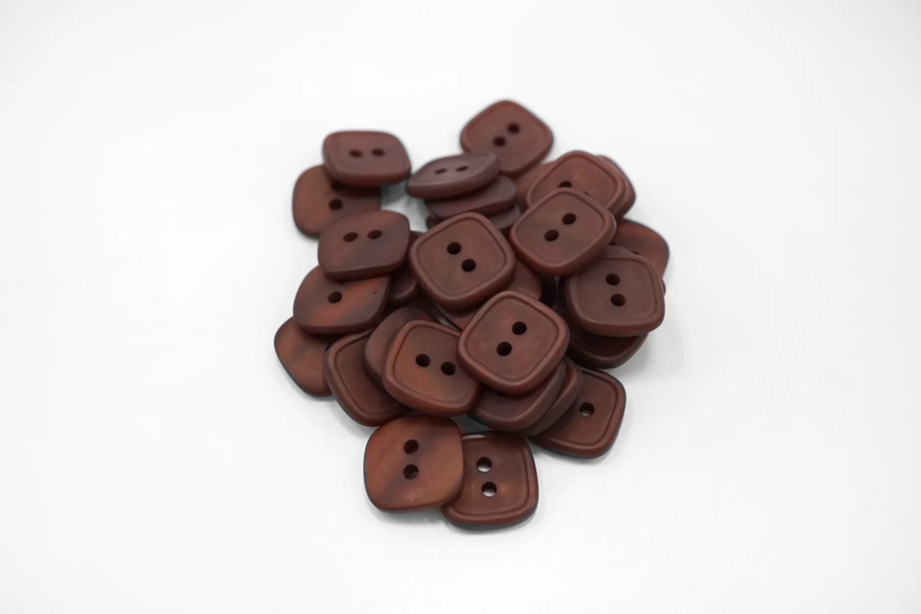 Пуговица матовая квадратная костюмно-рубашечная пластик коричневая под рог 15 мм (Q1) 6032226