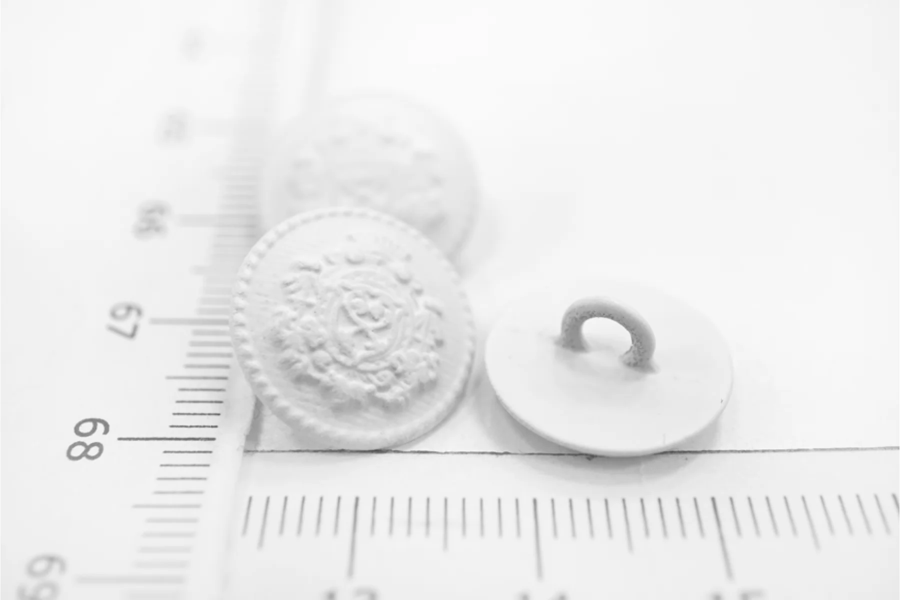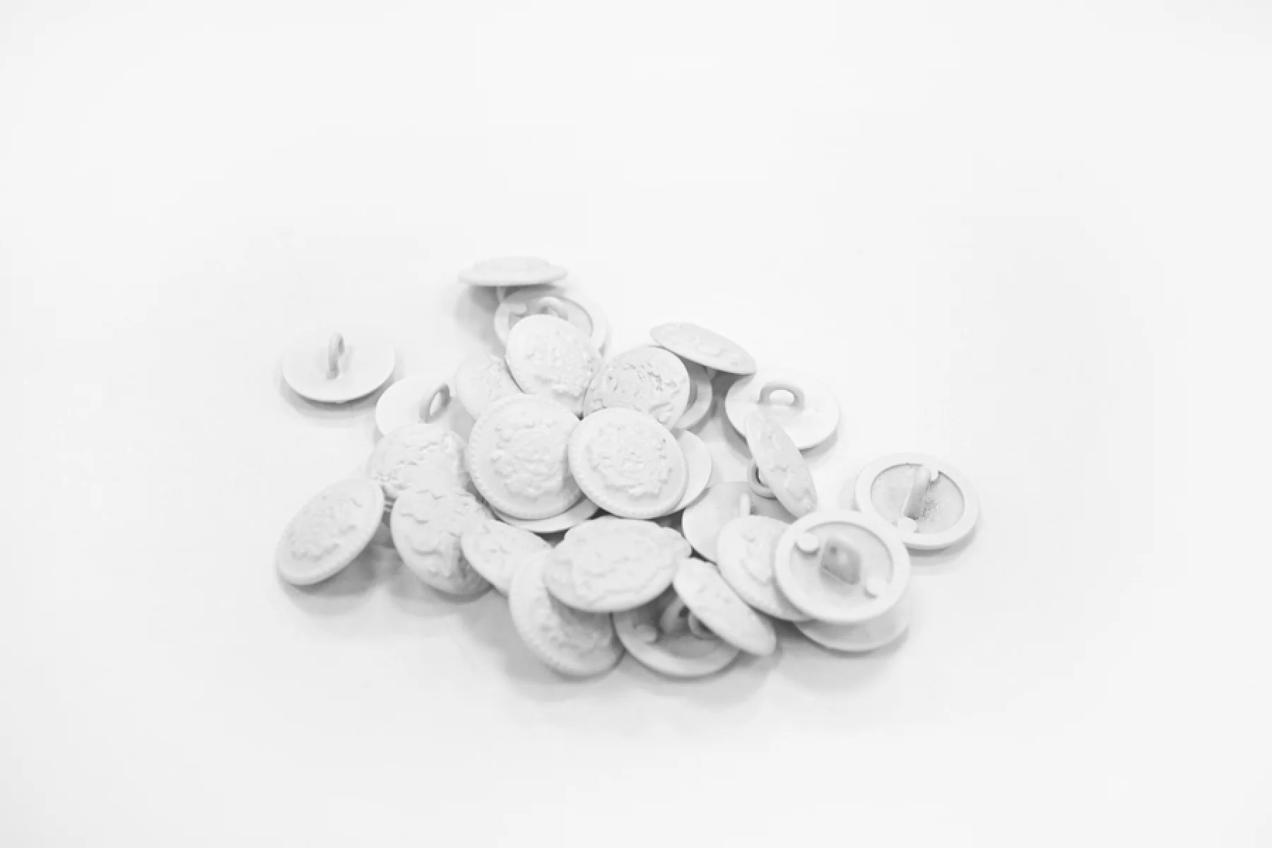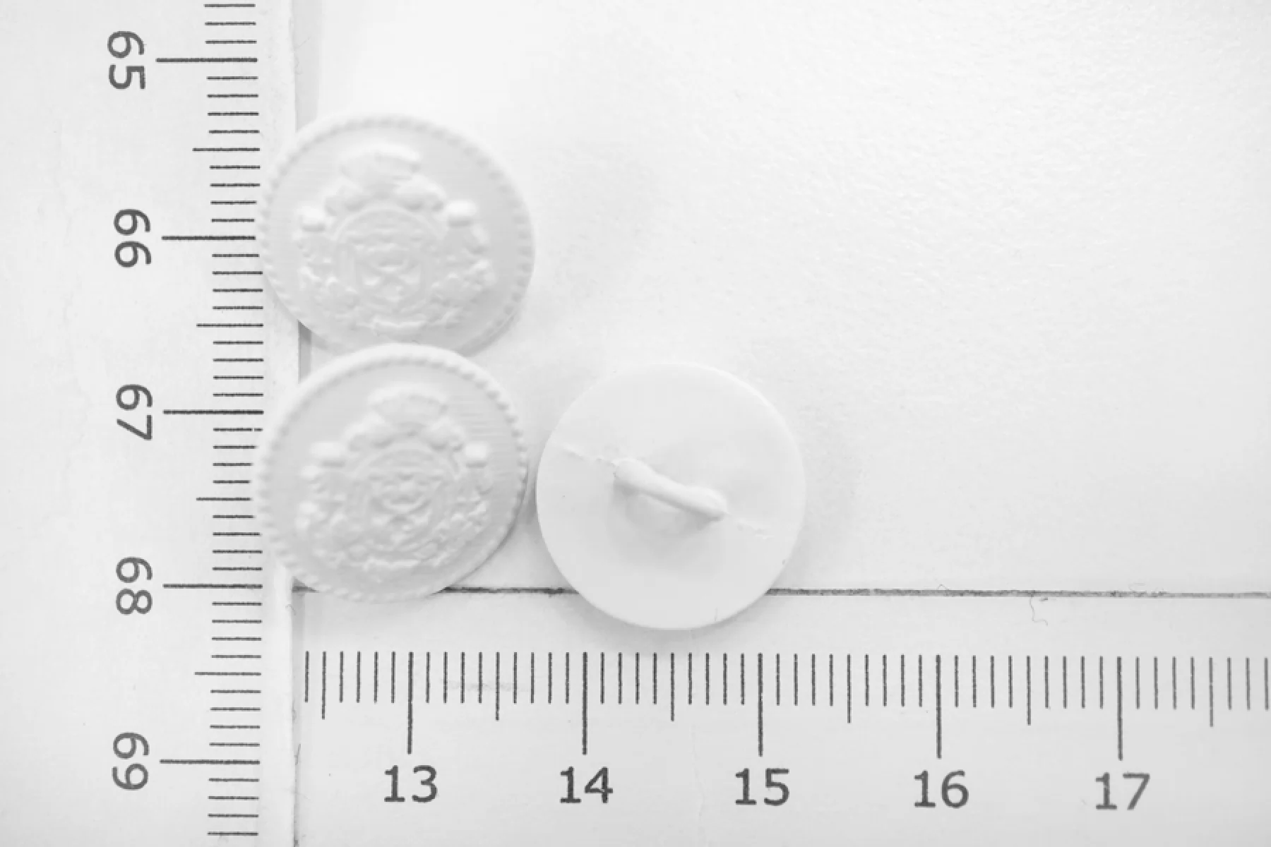 Пуговица матовая костюмная металлическая на ножке, размер 15 мм, ,белого цвета, с геральдическим узором.