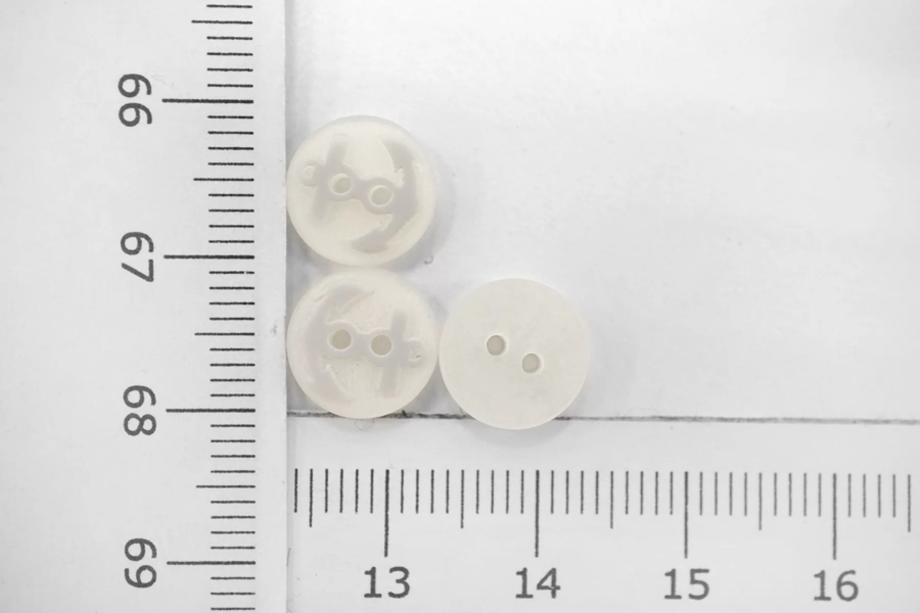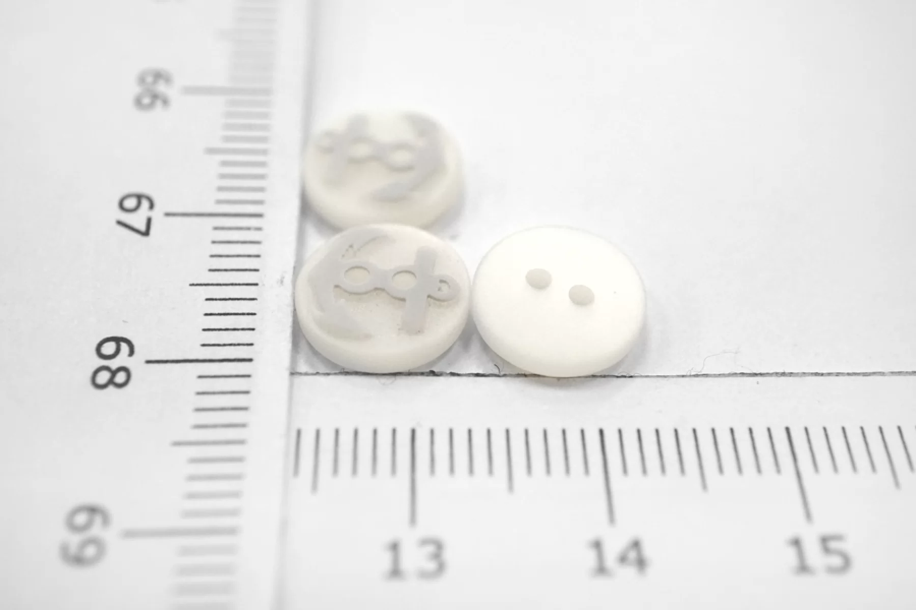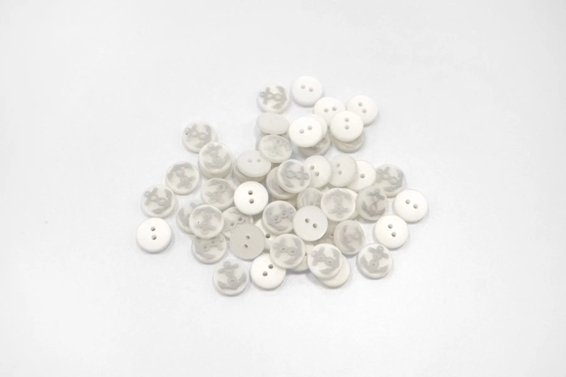 Пуговица матовая рубашечная из пластмассы, серо-молочного цвета, размер 10 мм ,с узором в виде якоря.