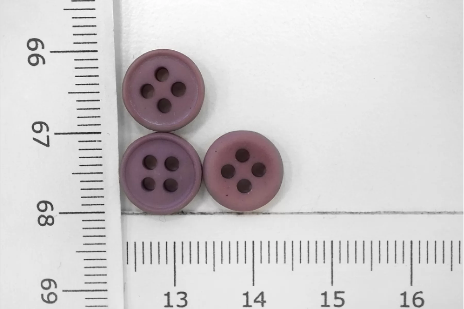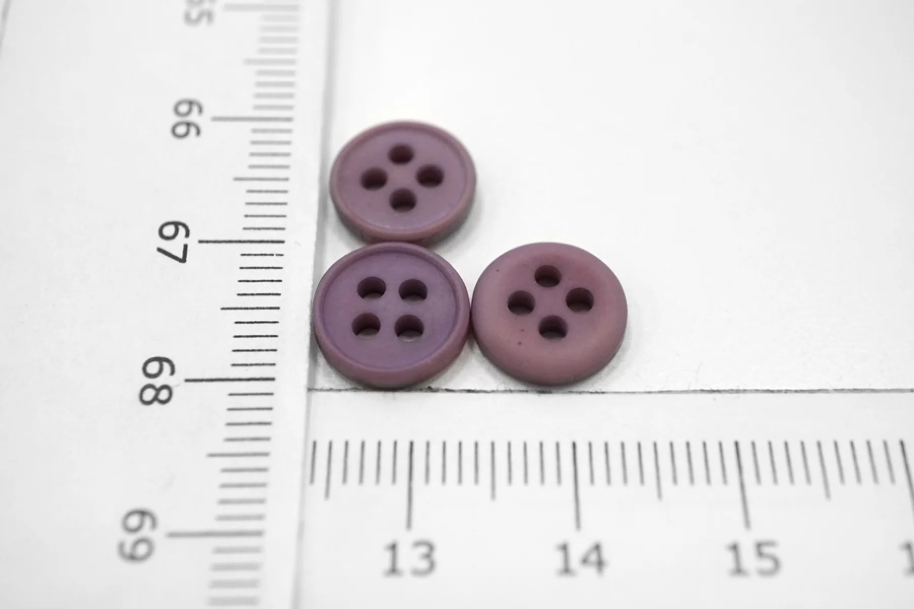 Пуговица матовая рубашечная из пластмассы, сиреневого цвета, размер 10 мм.