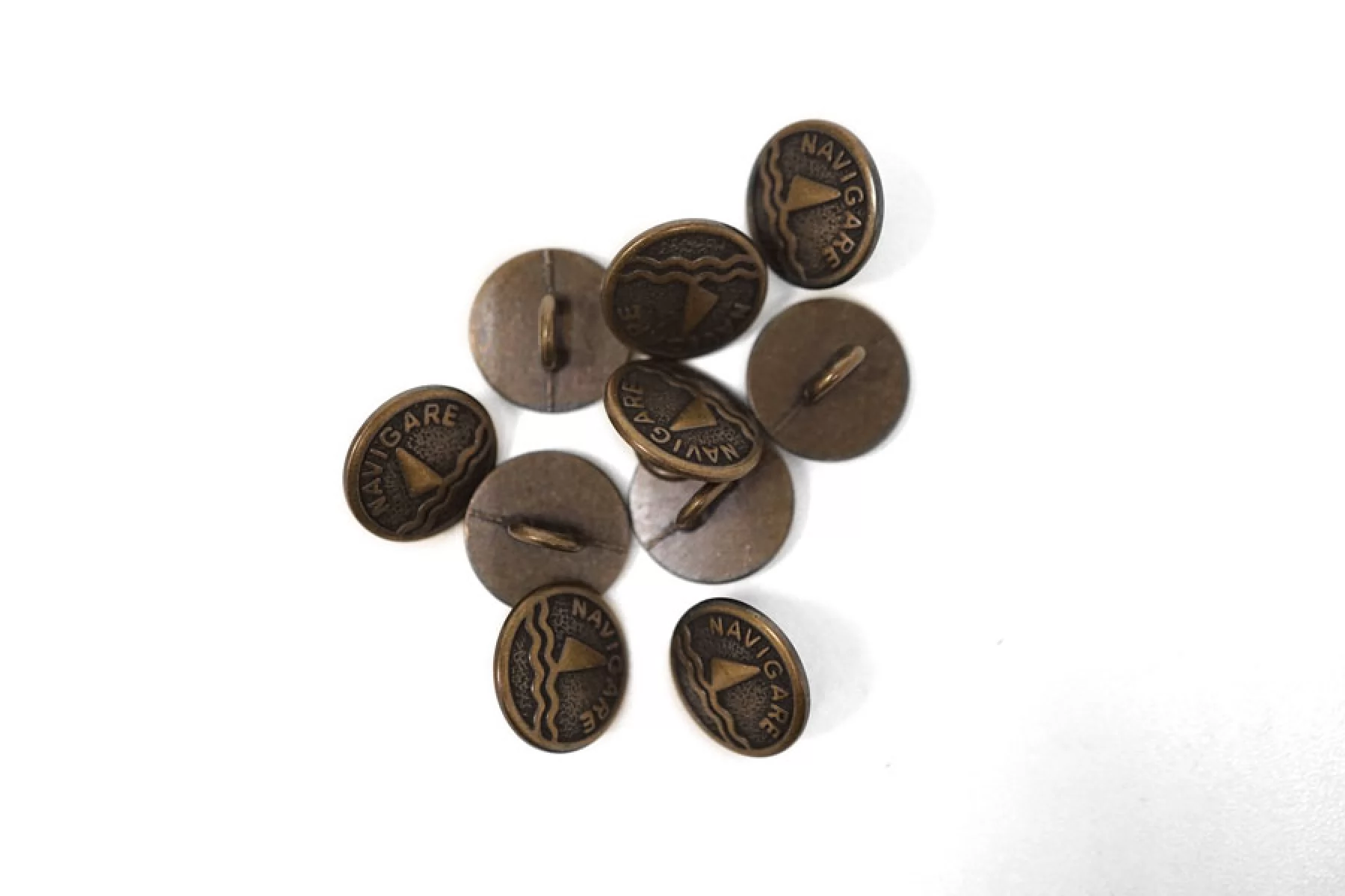 Пуговица металлическая бронзового цвета на ножке с изображением паруса , размер 15 мм.