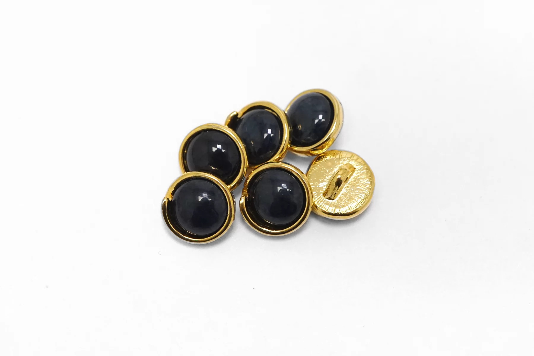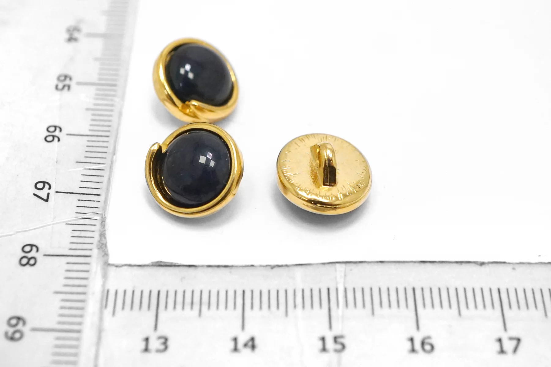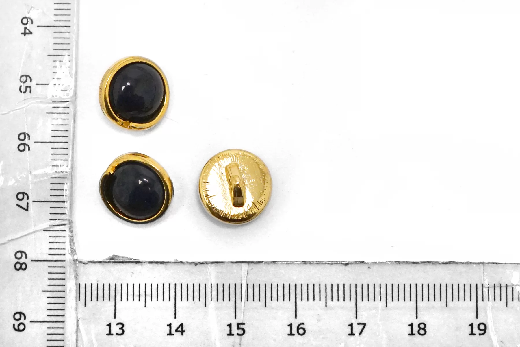 Пуговица металлическая, на ножке, черного цвета в золоте, размер 12 мм.