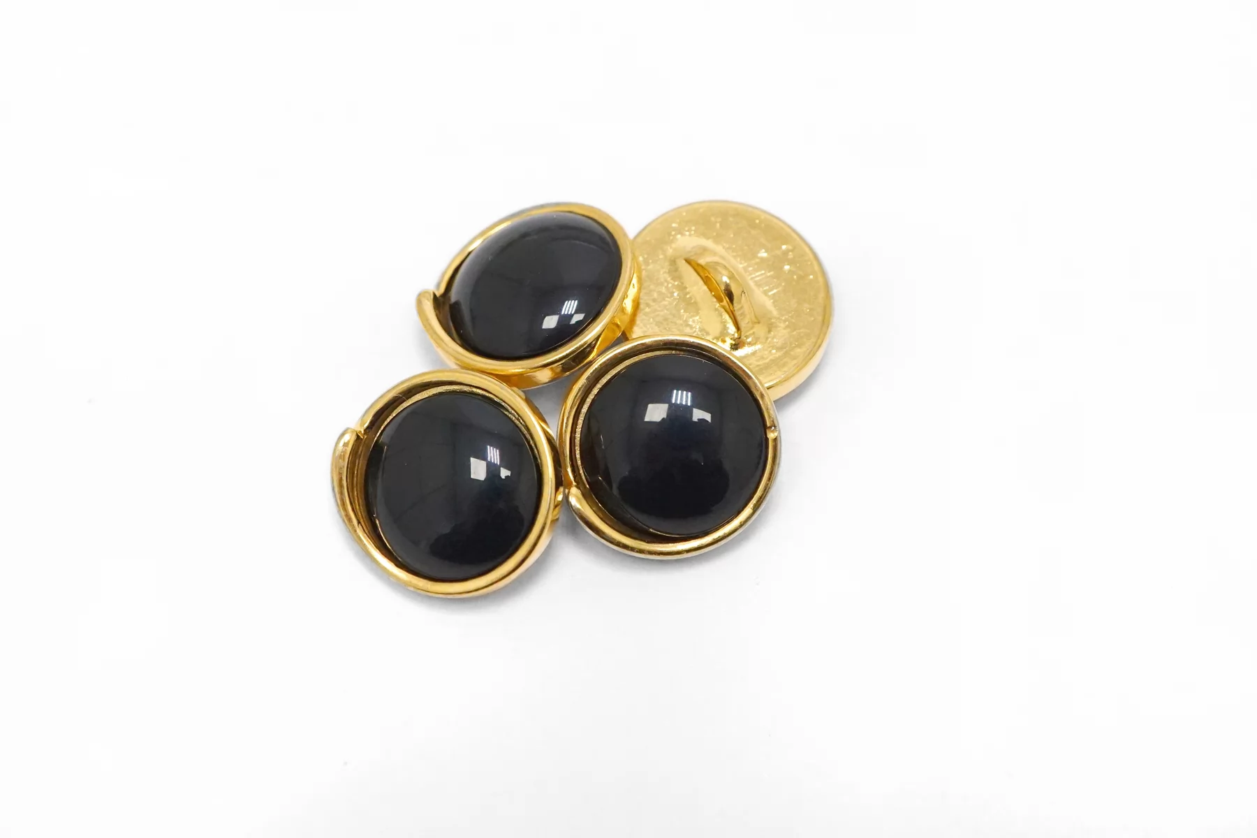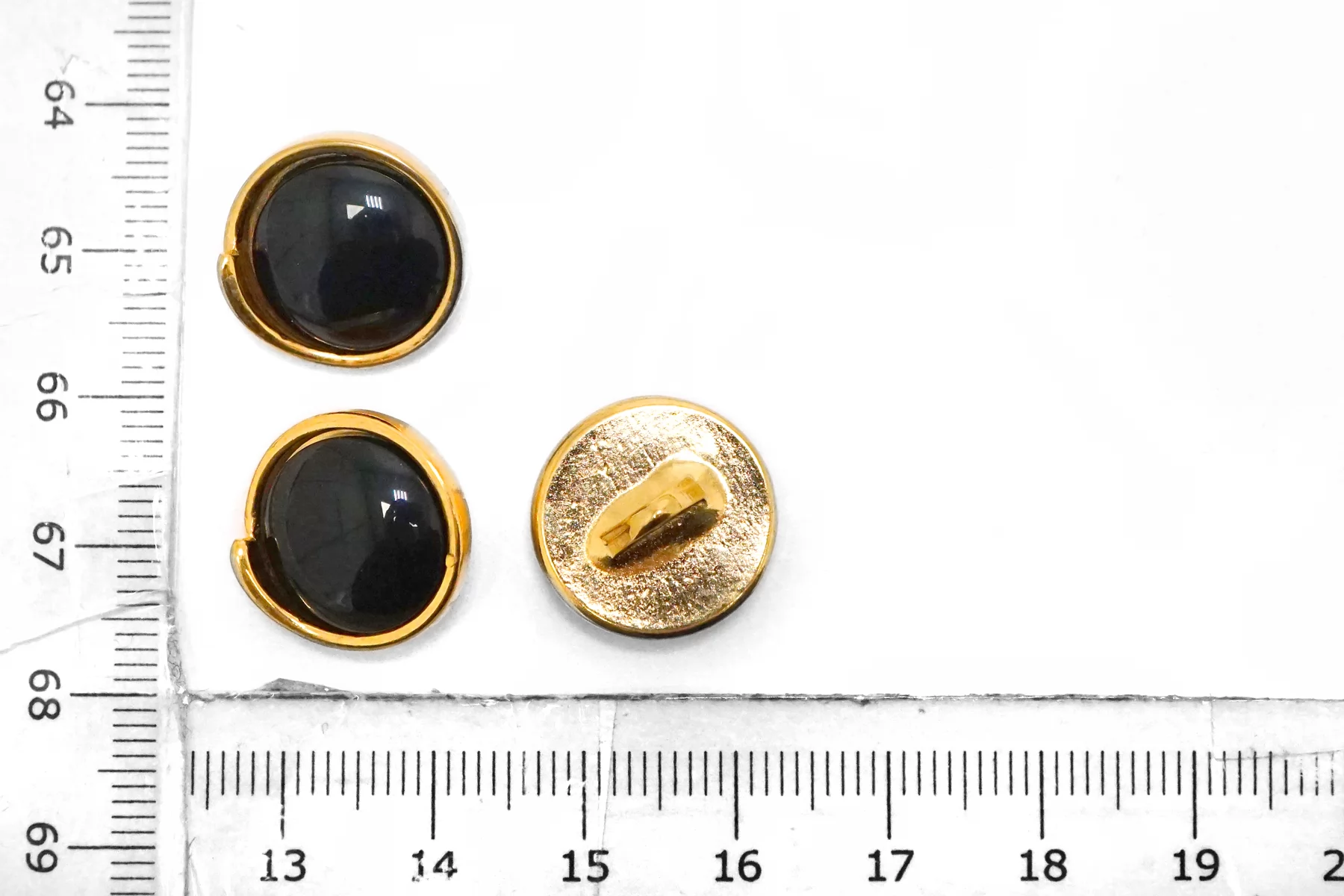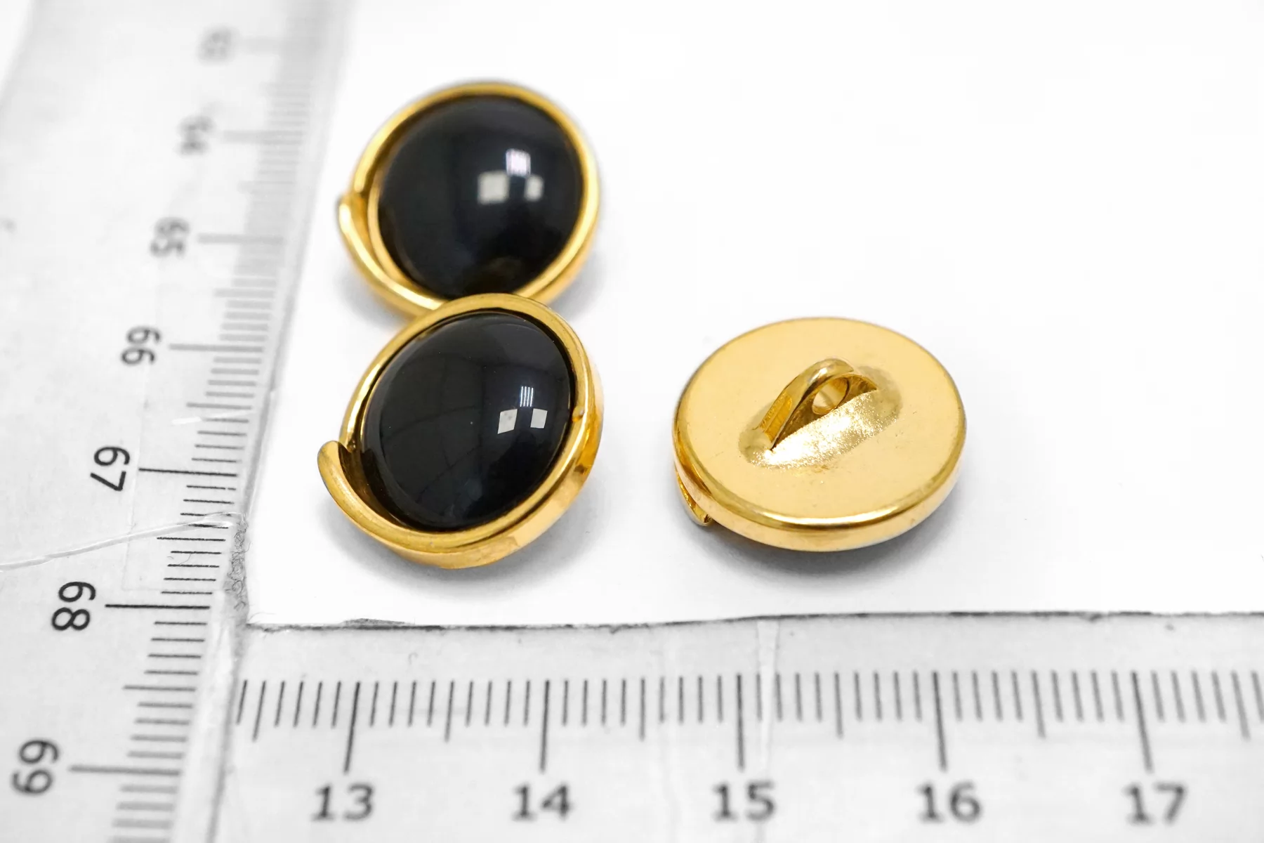 Пуговица металлическая, на ножке, черного цвета в золоте, размер 15 мм.