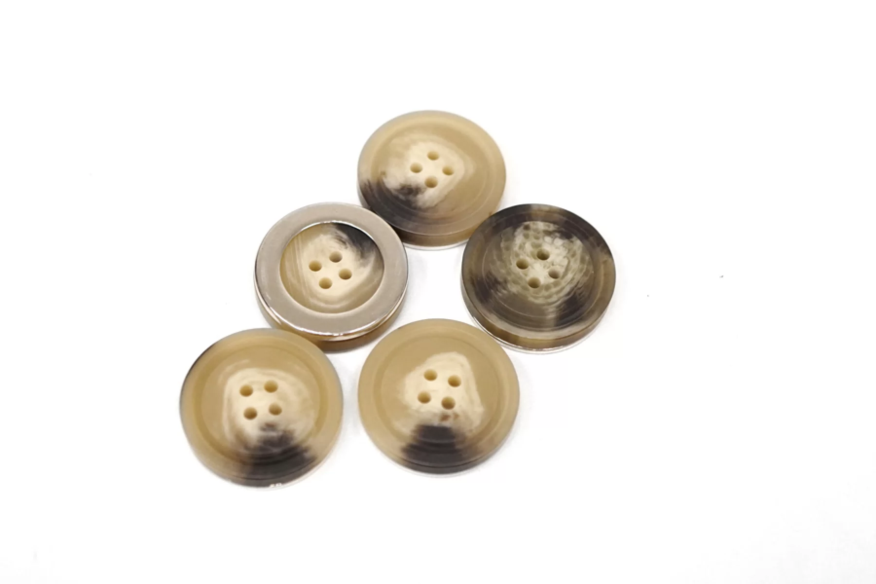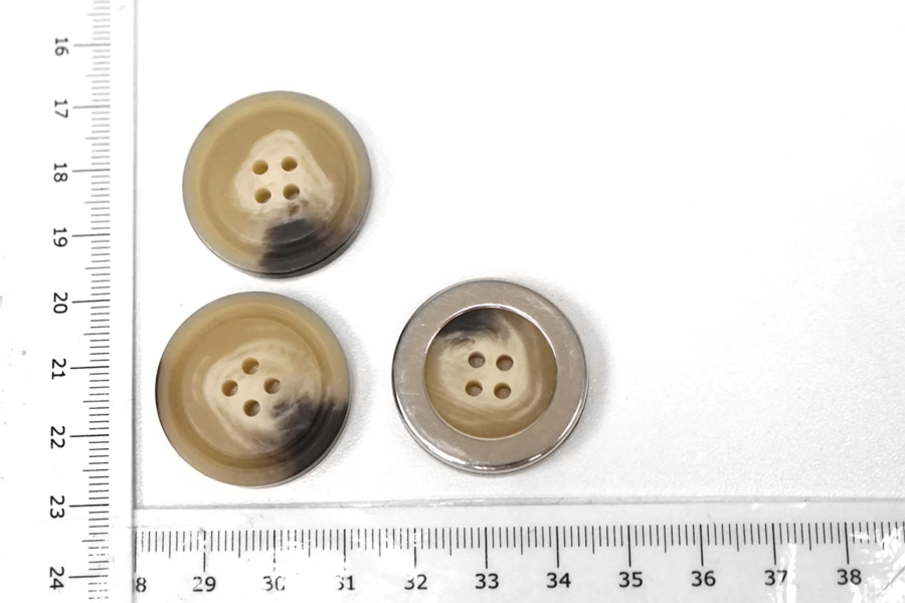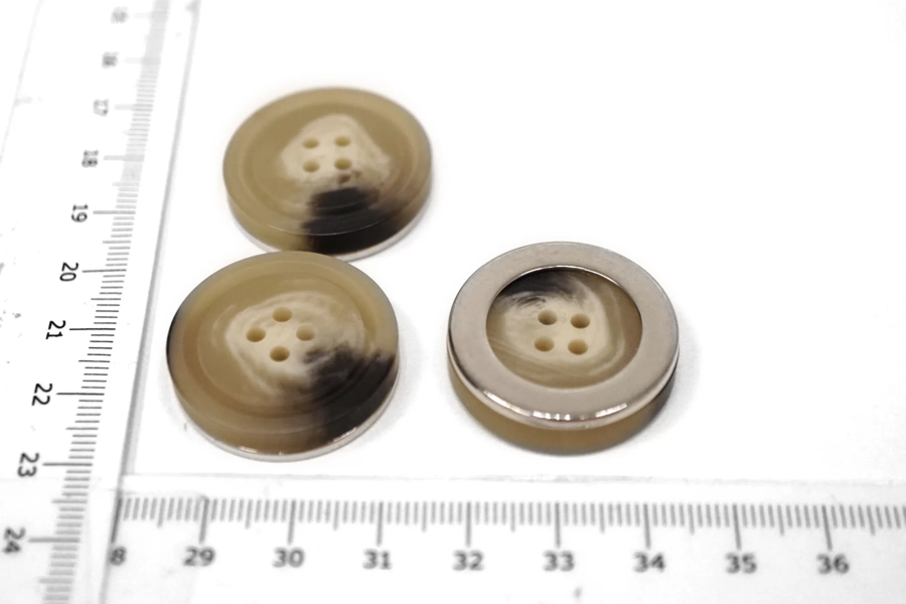 Пуговица металлическая с вставкой под рог по середине, размер 28 мм.