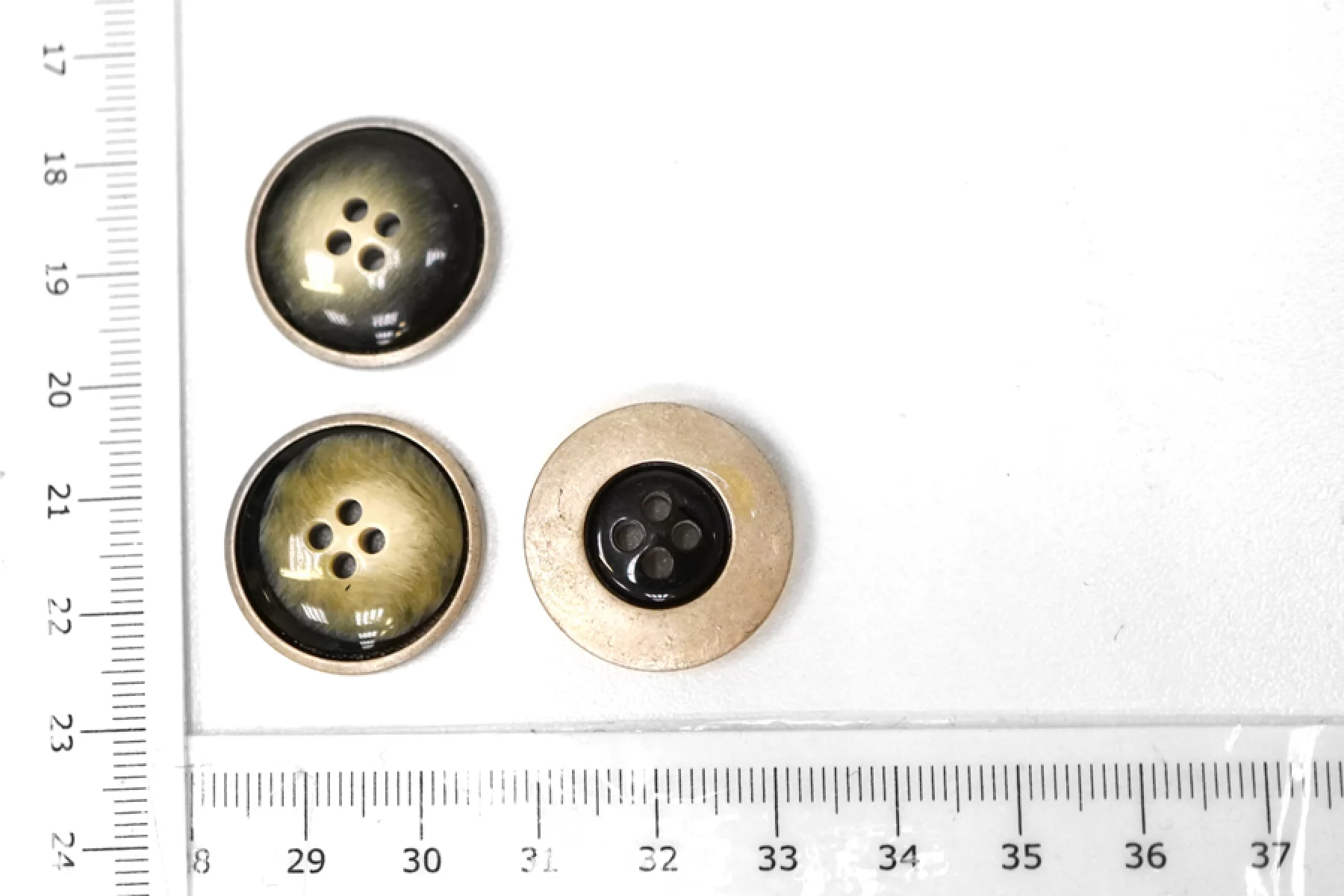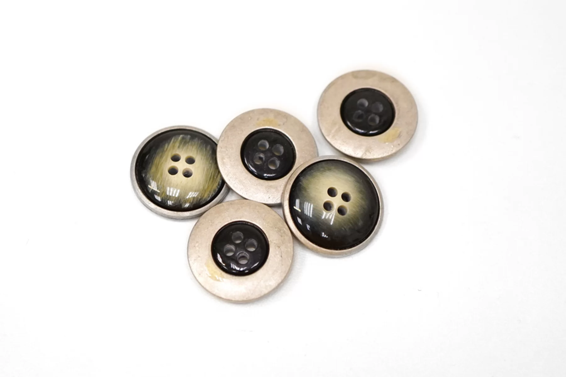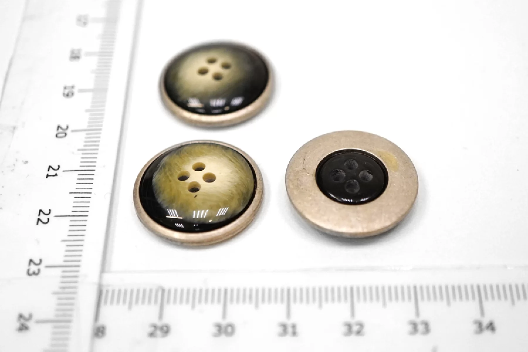 Пуговица металлическая с вставкой под рог по середине, размер 22 мм.
