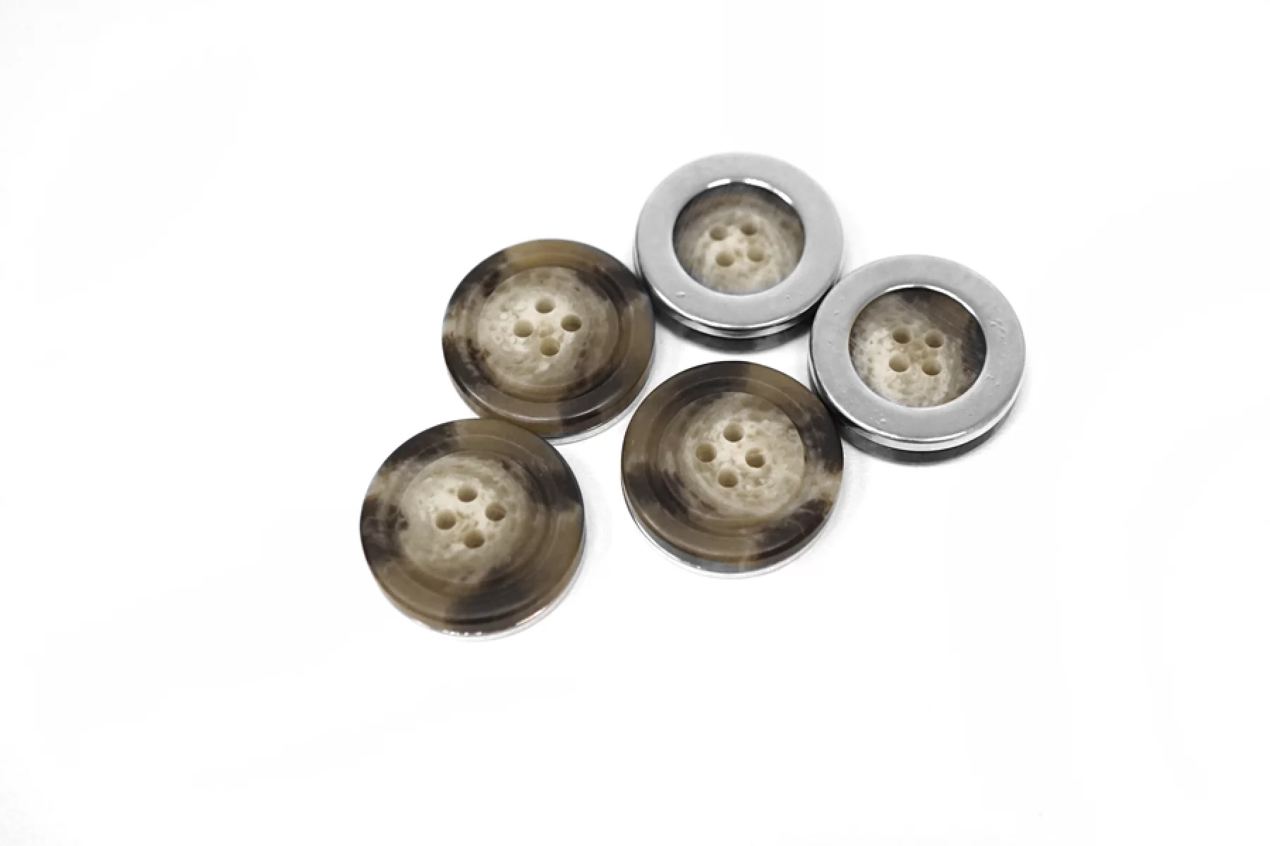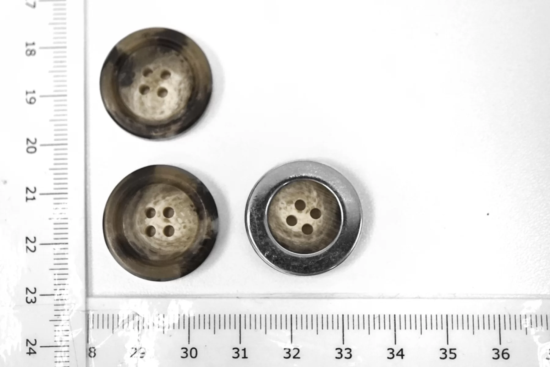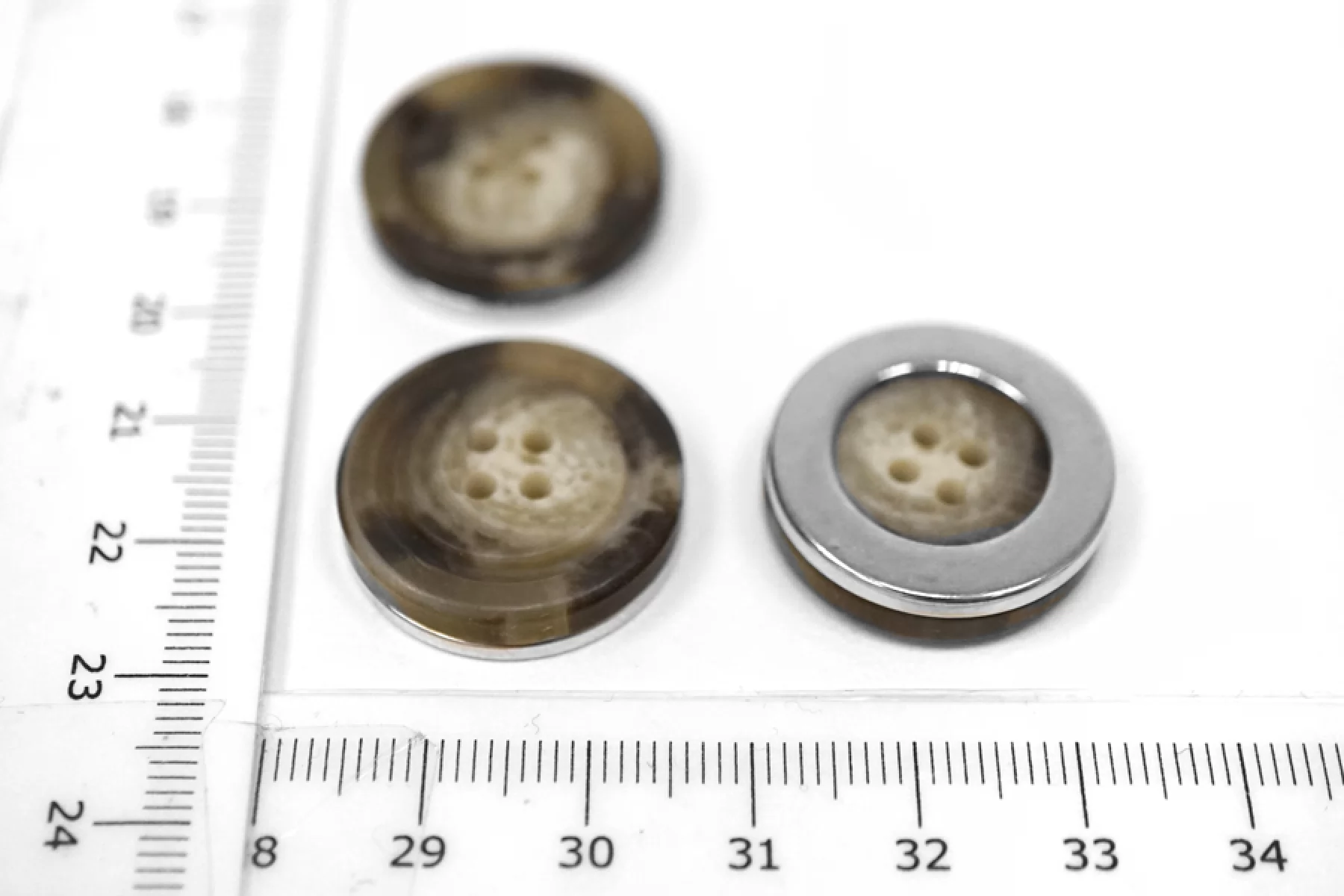 Пуговица металлическая с вставкой под рог по середине, размер 22 мм.