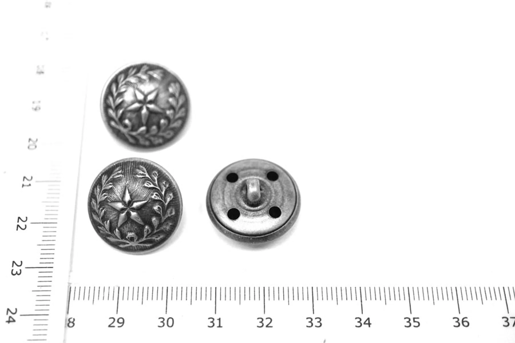 Пуговица металлическая на ножке цвета чернёного серебра со звездой, размер 20 мм.