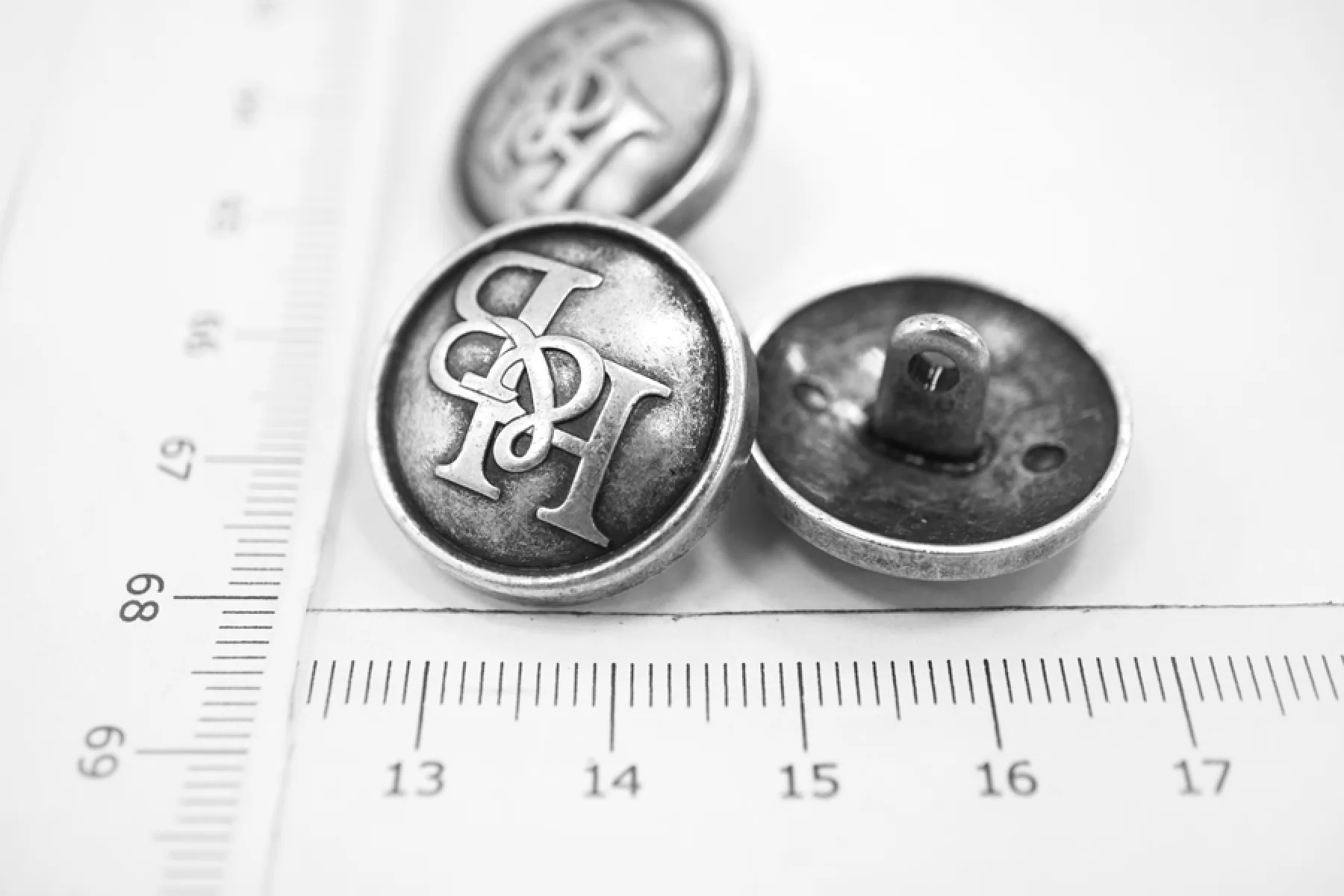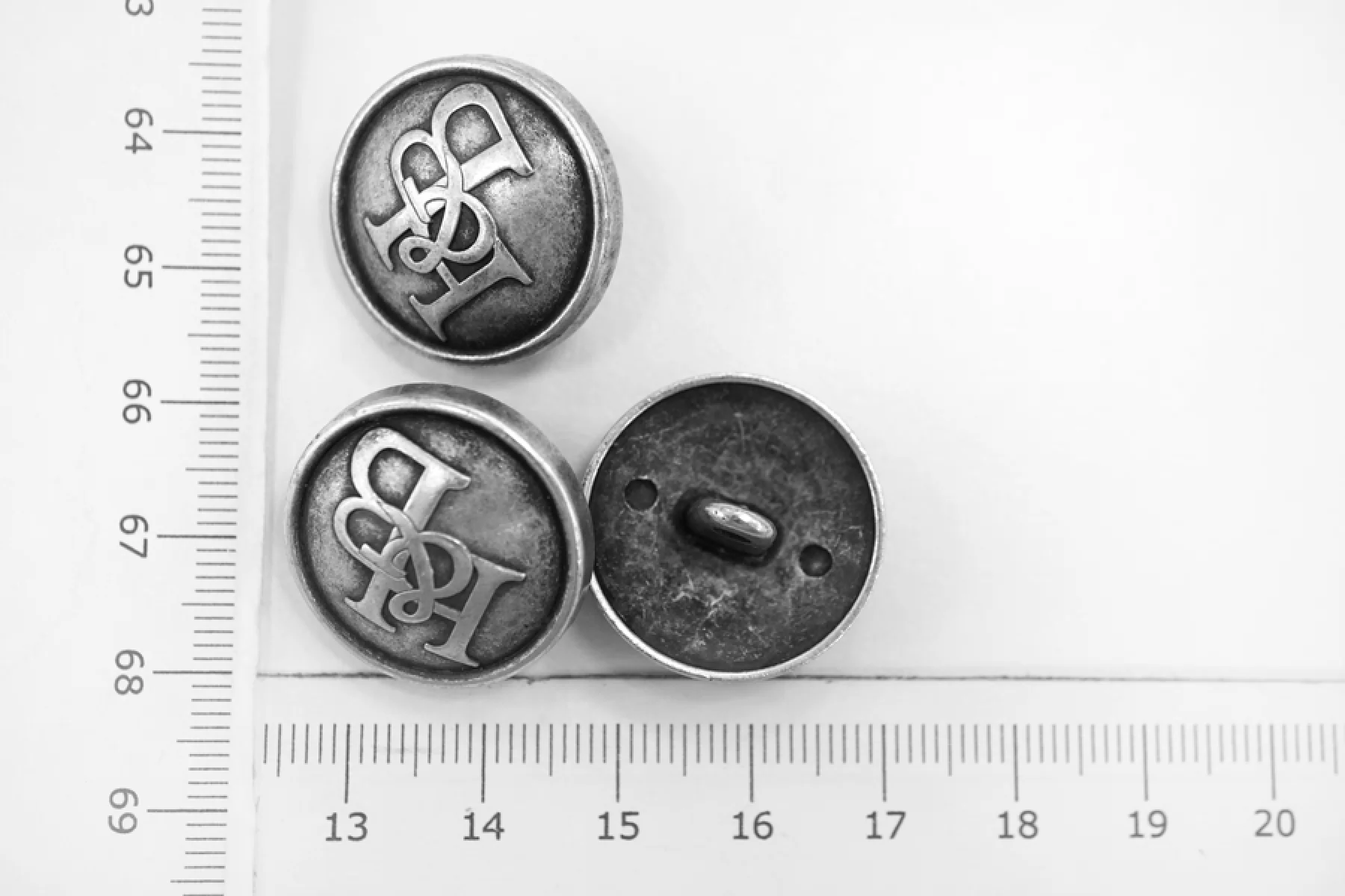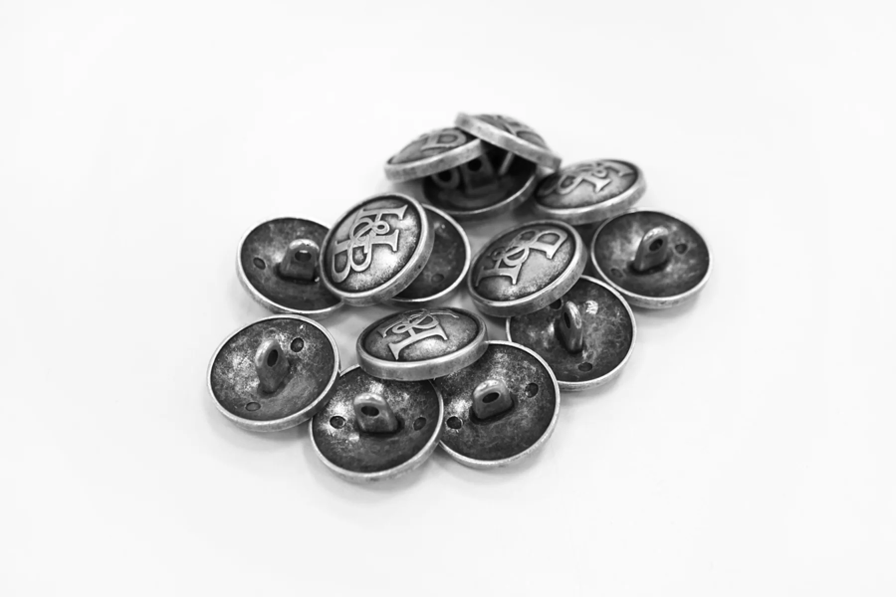 Пуговица металлическая на ножке костюмно-пальтовая H&B чернённо-серебряная 20 мм-(F2) 25072213