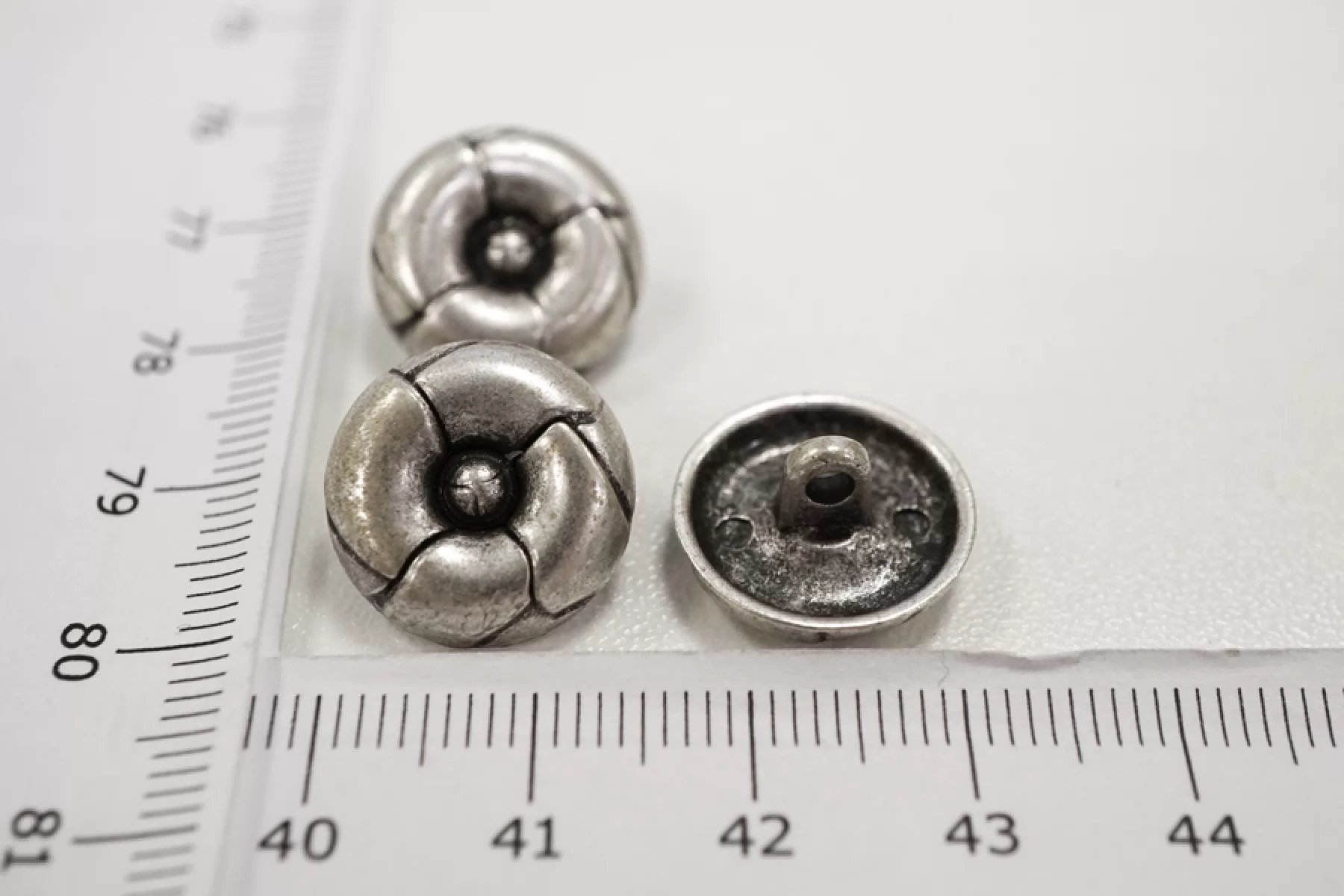 Пуговица металлическая на ножке костюмно-пальтовая серебряная фактурная 15 мм PRT-(C2)- 27092009