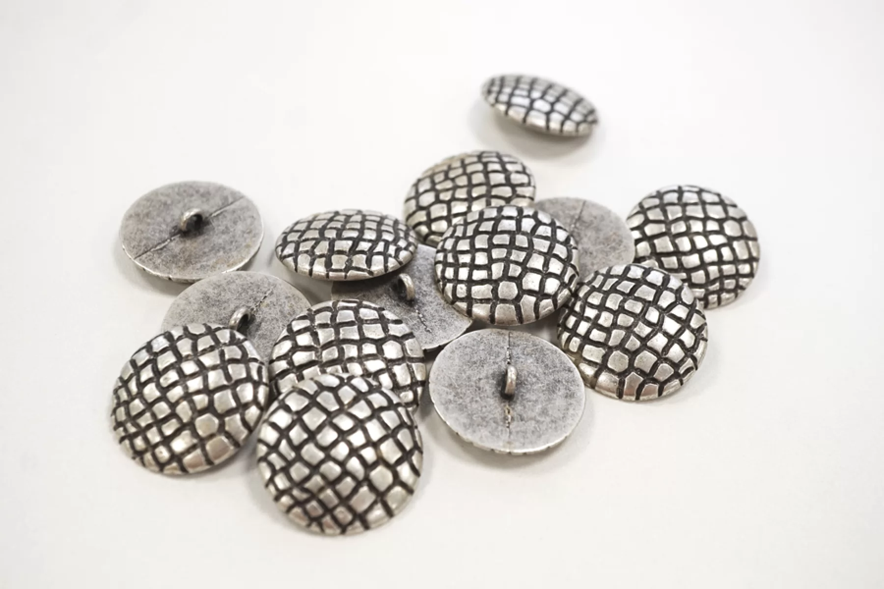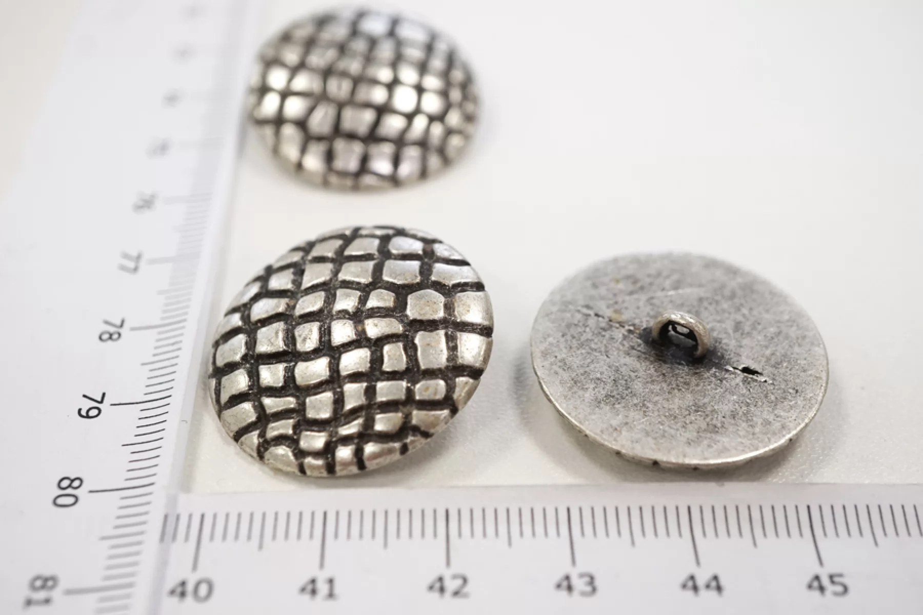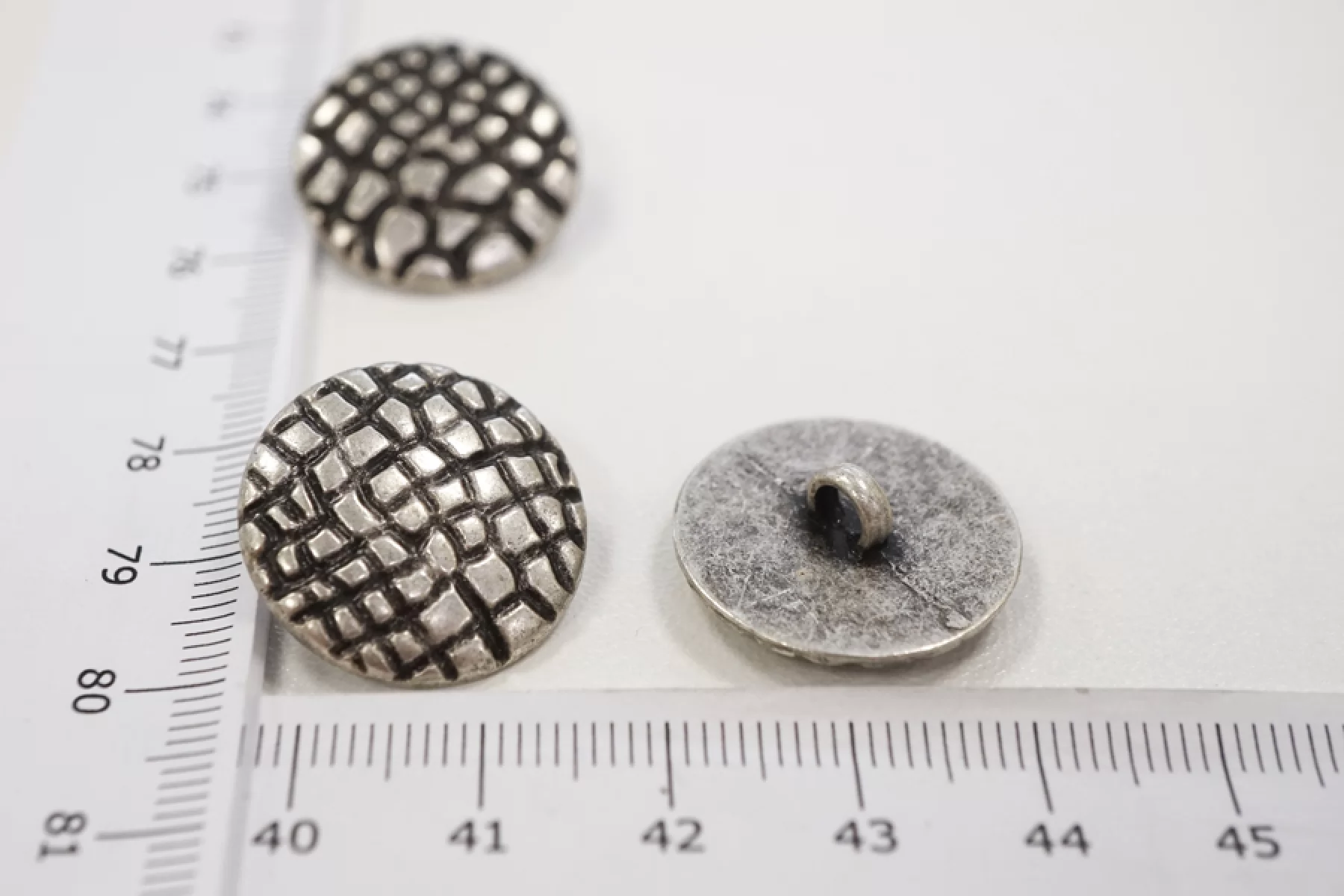 Пуговица костюмно-пальтовая металлическая на ножке, размер 27 мм, серебряная, фактурная под чешую.