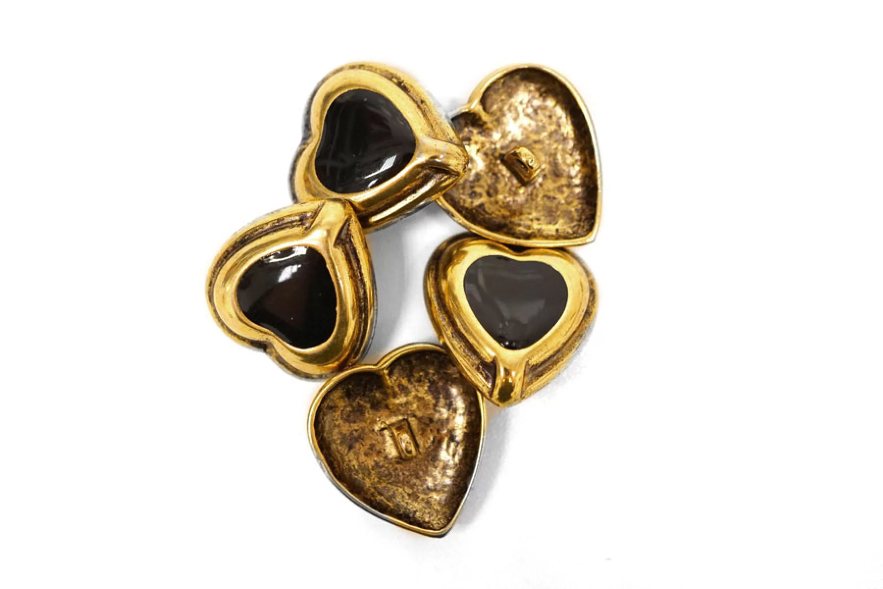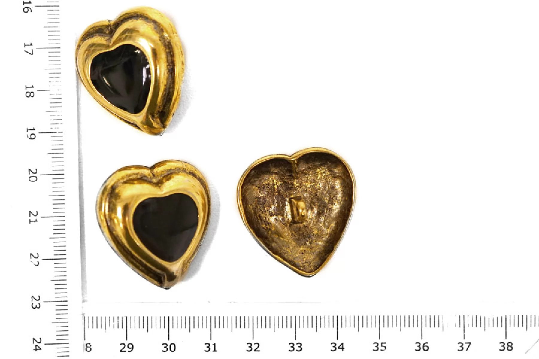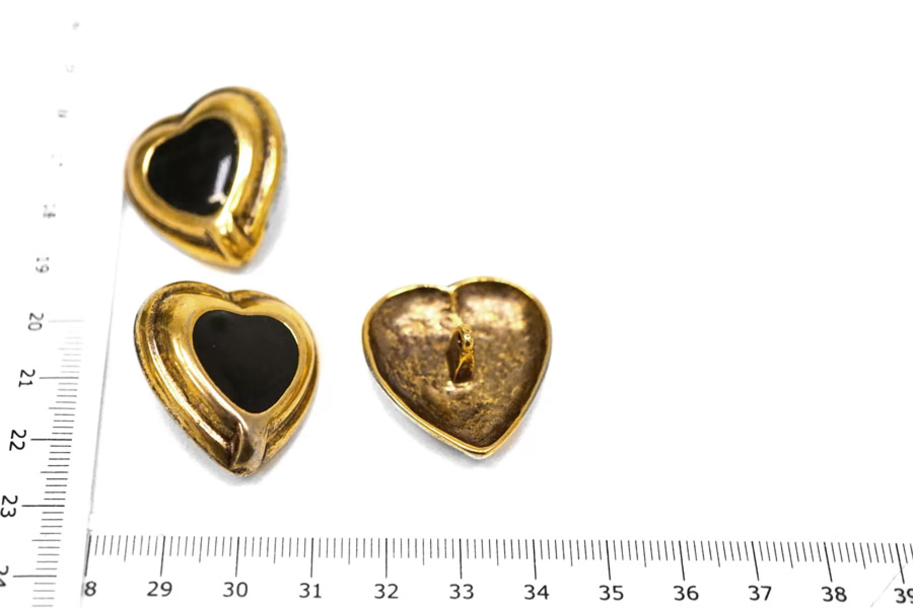 Пуговица металлическая в виде сердца золото с чёрным , на ножке , размер 25 мм.