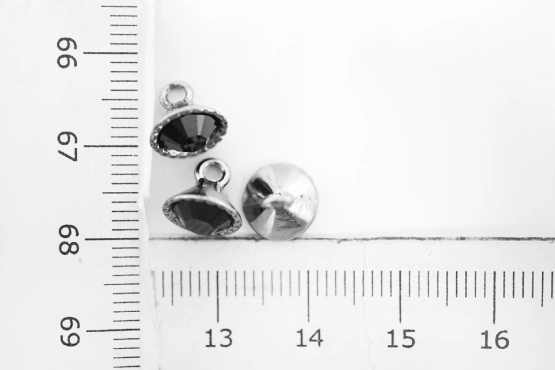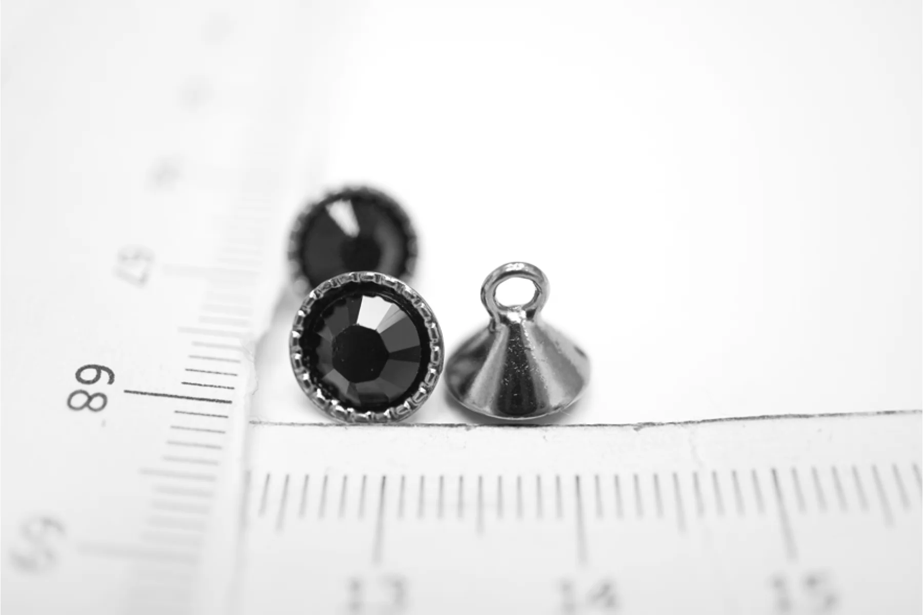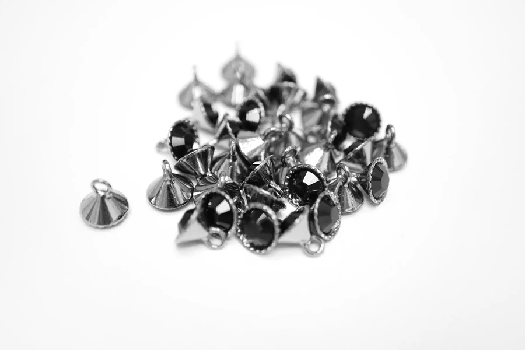 Пуговица металлическая, на ножке, цвета темного никеля, с черным стразом, размер 8 мм.