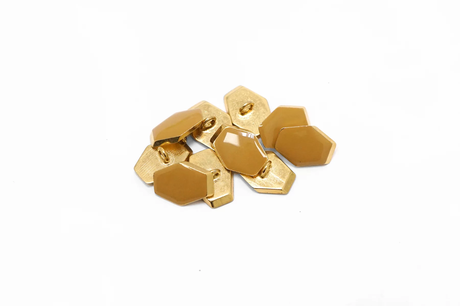 Пуговица металлическая на ножке плательная, золотая ,покрытая эмалью бежевого цвета. Размер 15 мм на 11 мм.