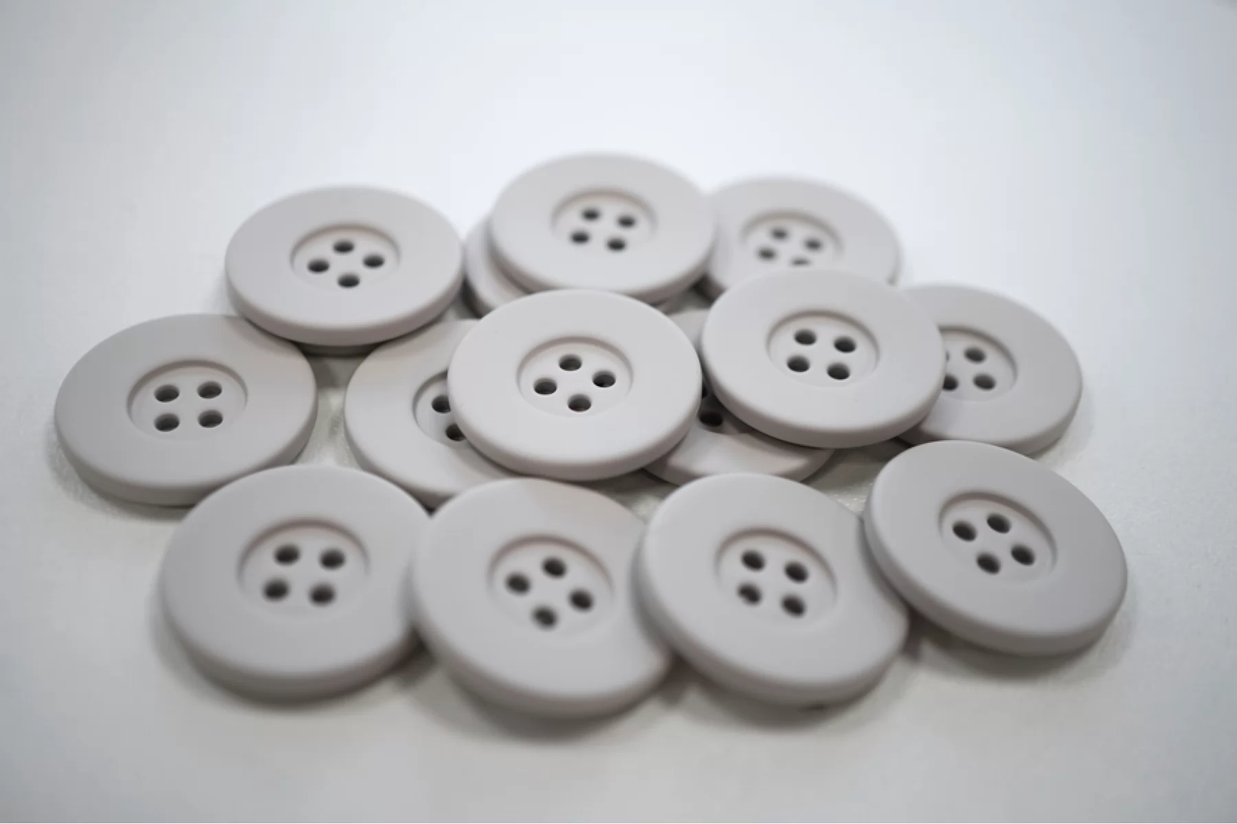 Пуговица костюмная металлическая, размер 22 мм, серого цвета с матовым покрытием.
