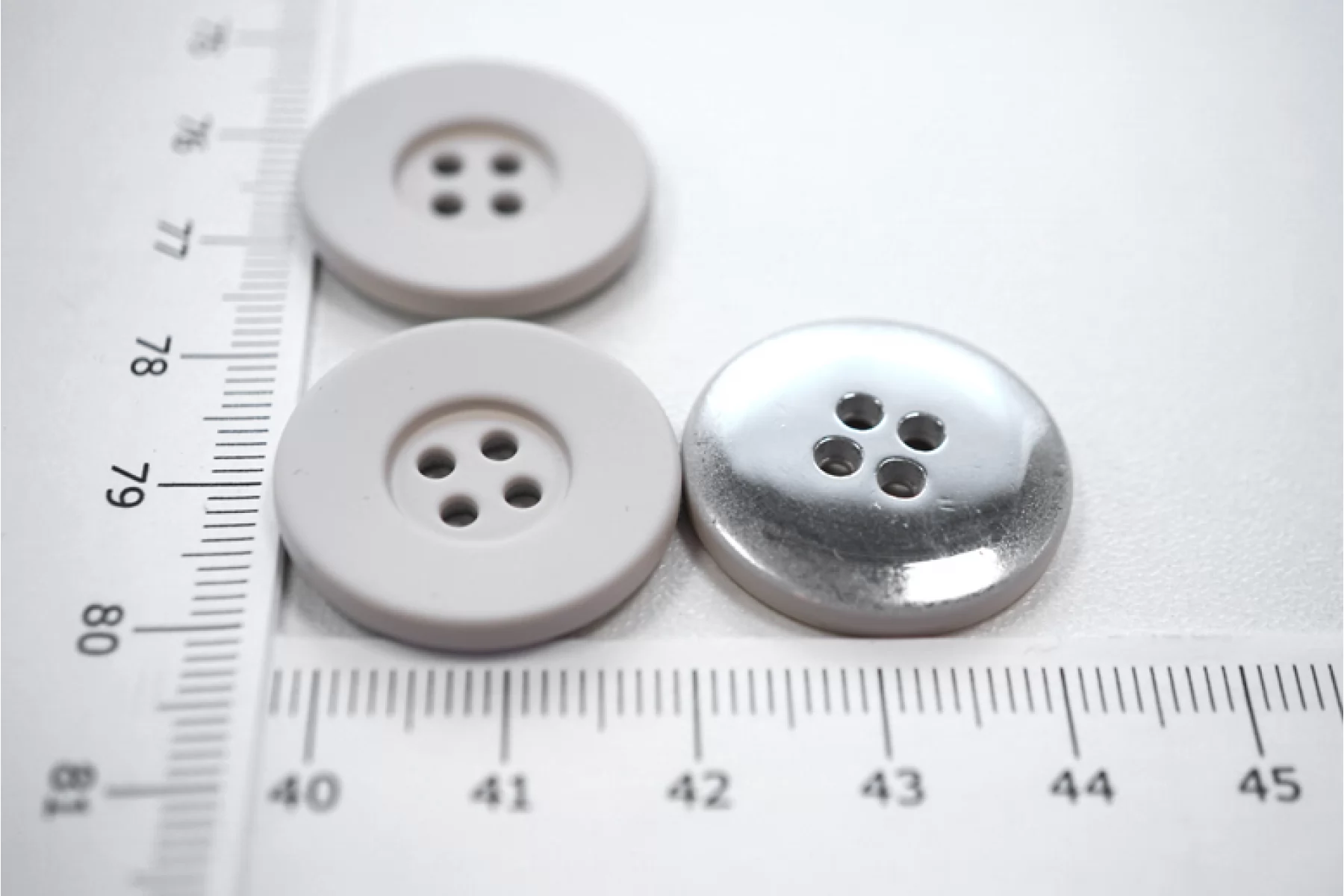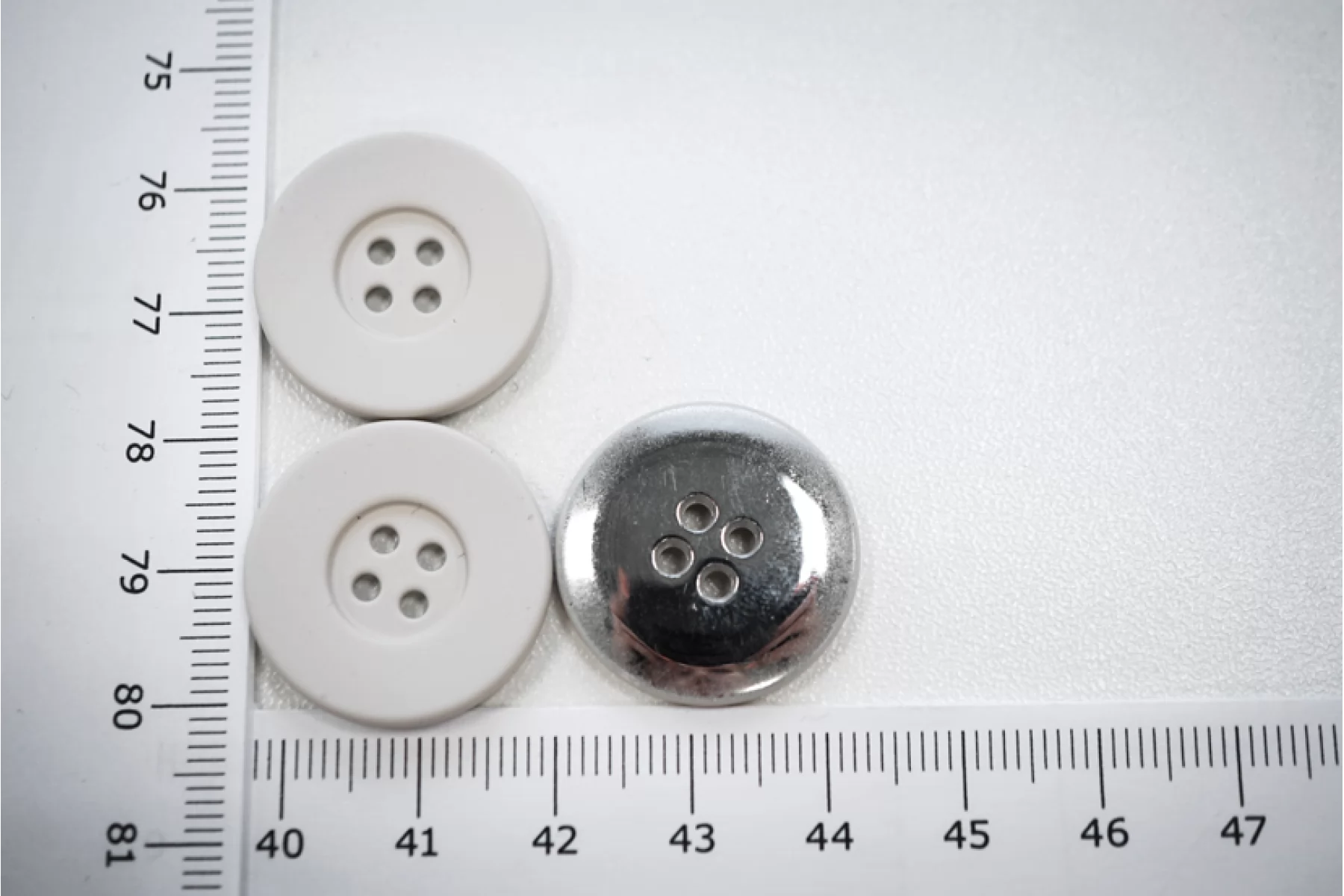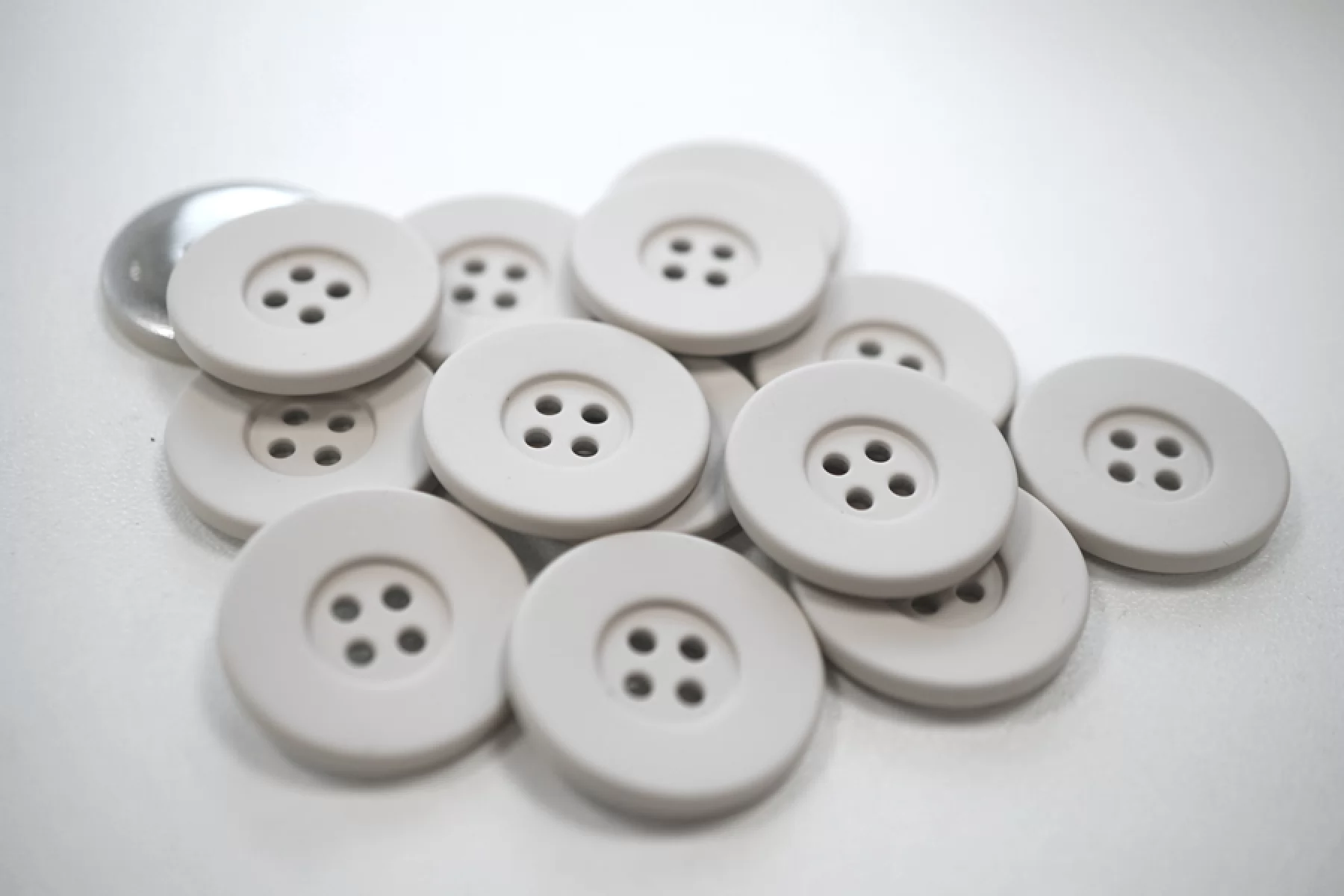 Пуговица костюмная металлическая, с матовым покрытием, серо-бежевого цвета, размер 22 мм.