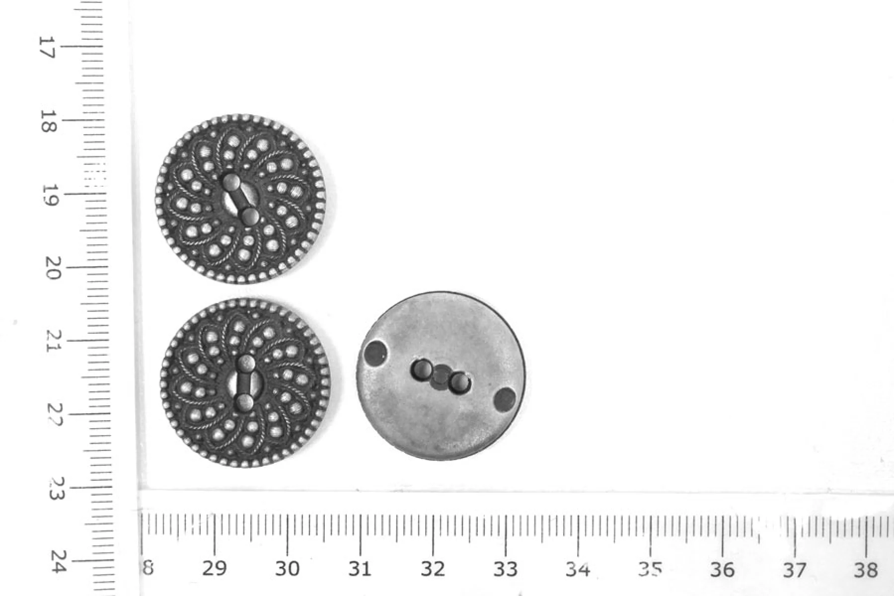 Пуговица металлическая темно-серебряная с узором 22 мм WW2 18122414